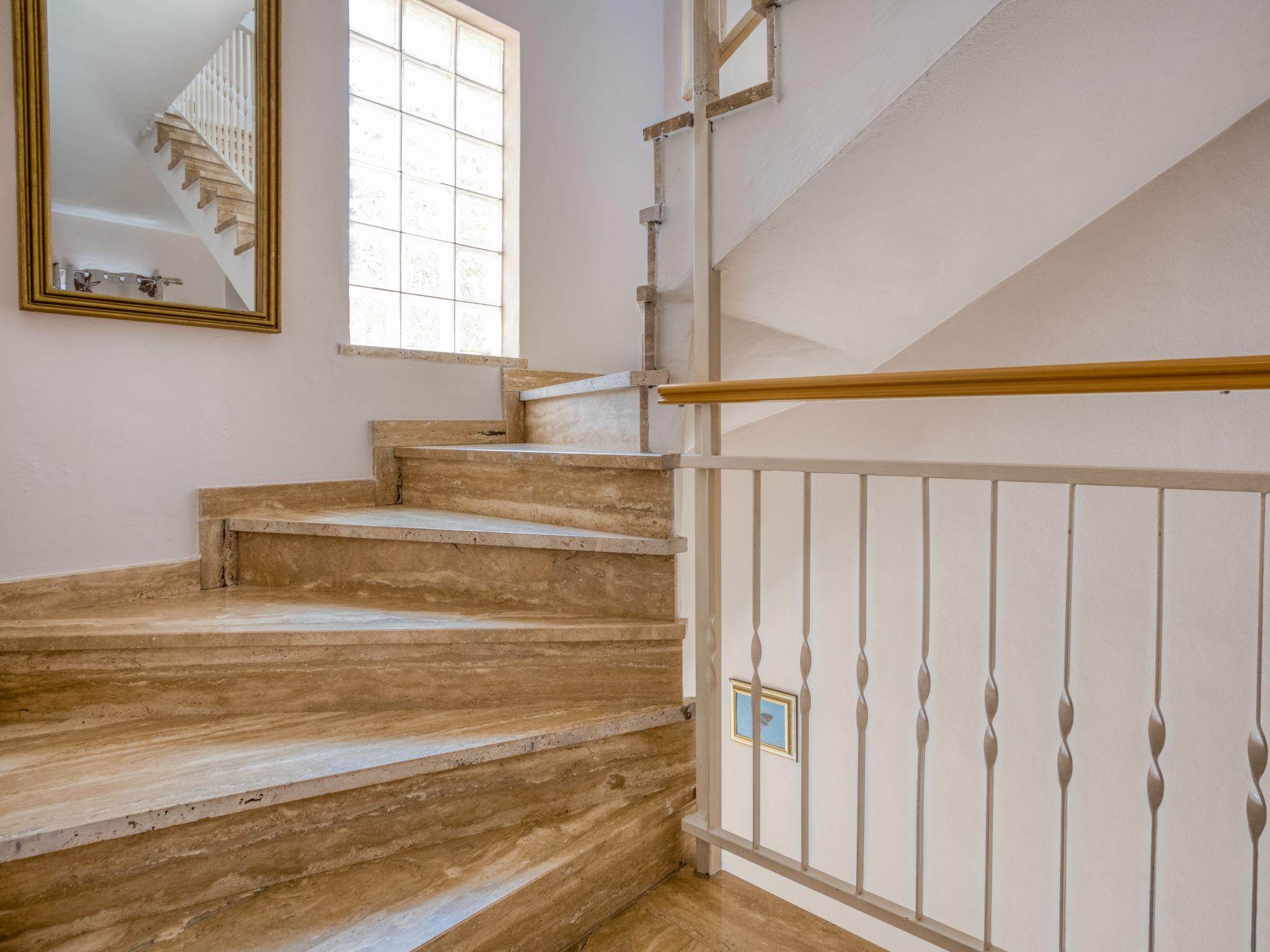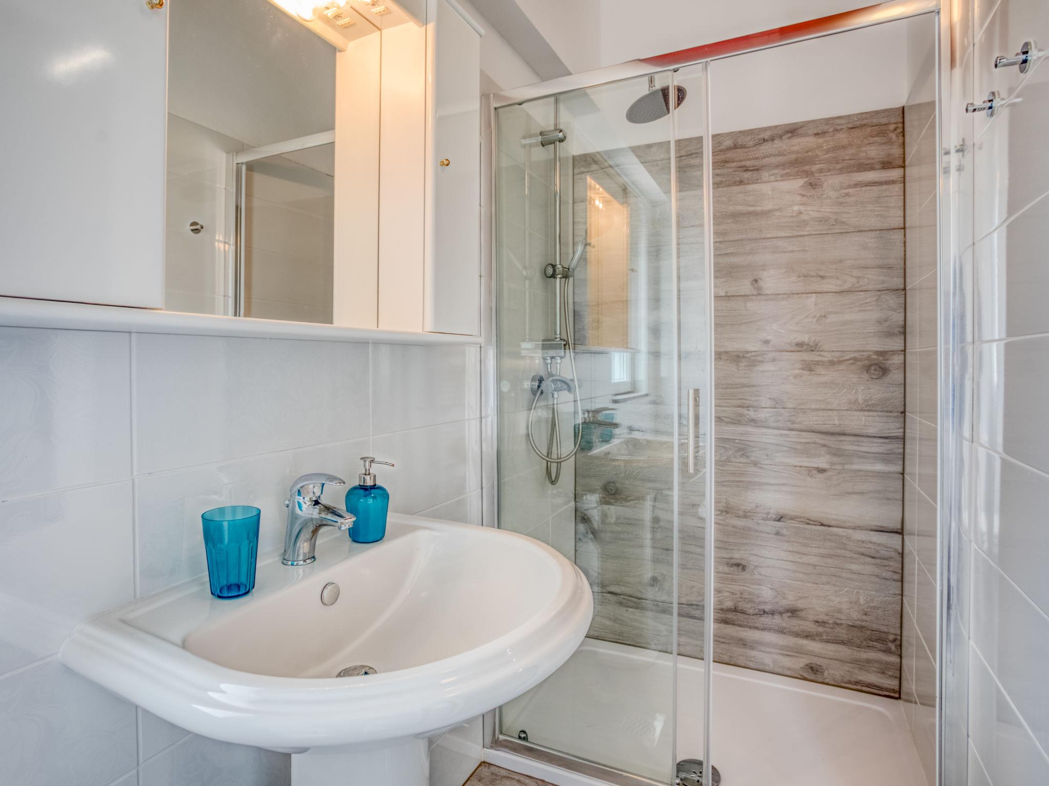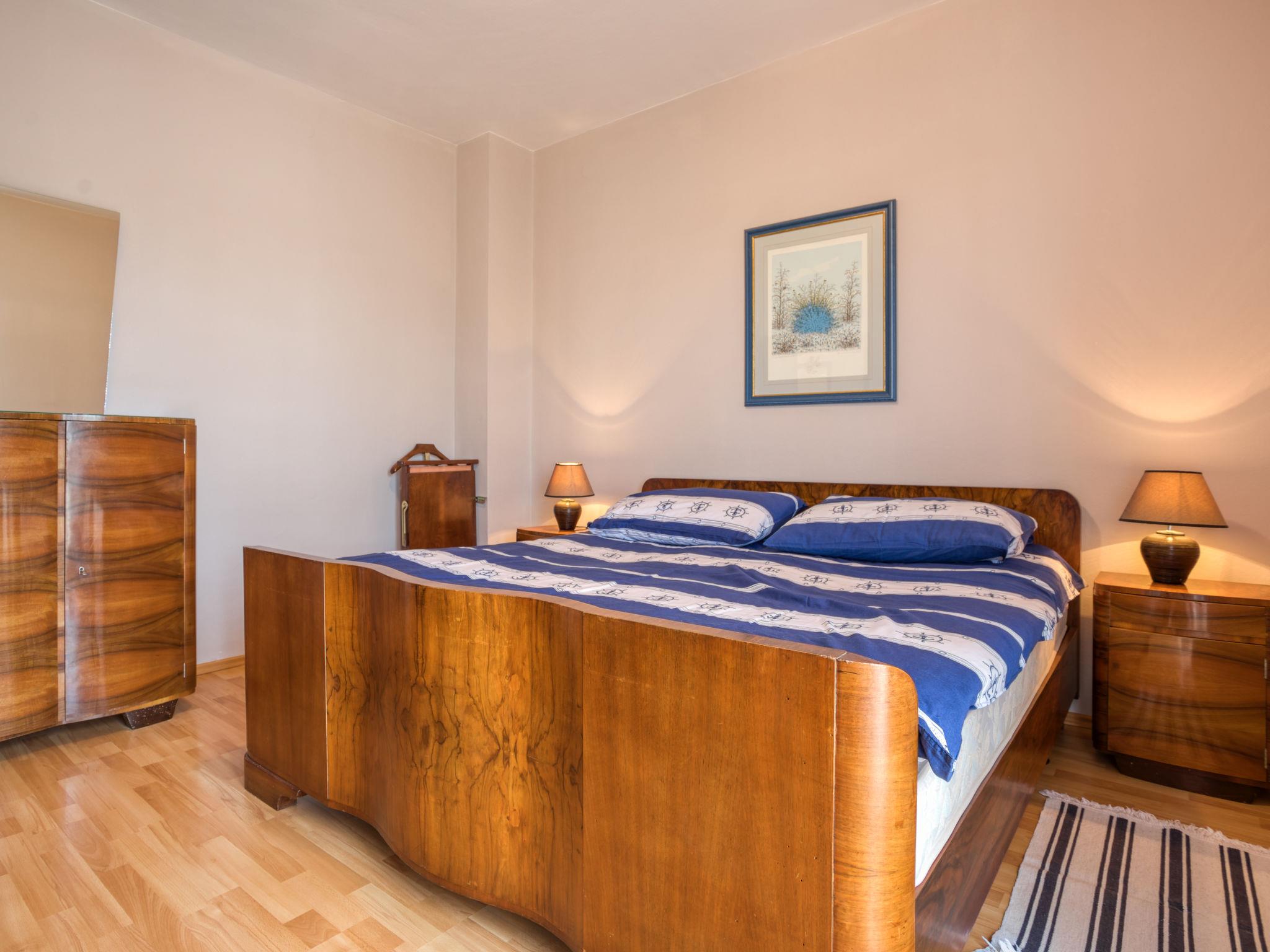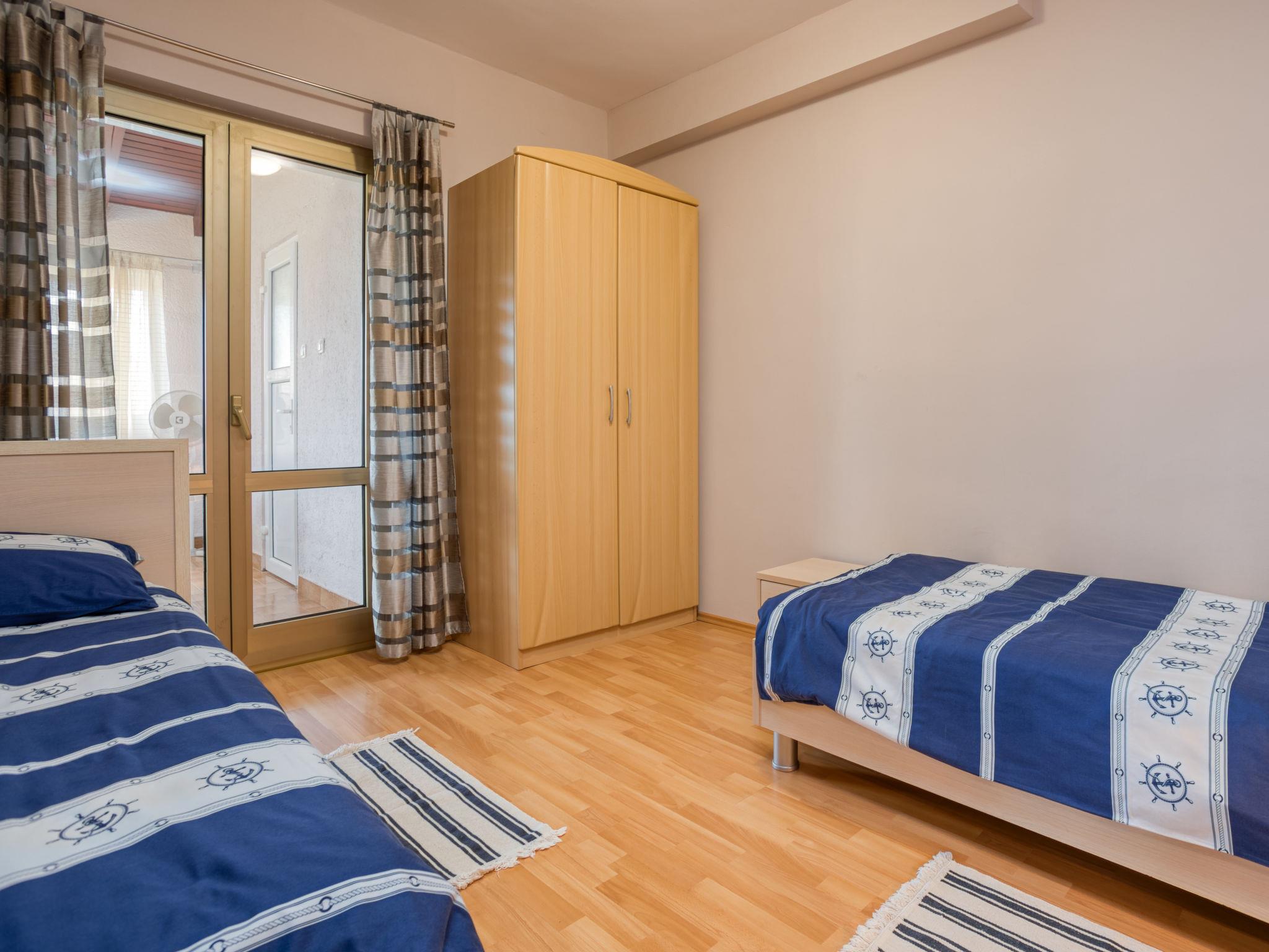 4-room apartment 94 m2 on 1st floor. Living/dining room with satellite TV (flat screen), air conditioning. 1 room with 1 double bed (2 x 90 cm, length 200 cm). Exit to the terrace. 1 room with 2 beds (90 cm, length 200 cm). 1 room with 1 bed (80 cm, length 200 cm), 1 french bed (160 cm, length 200 cm). Exit to the terrace. Kitchen (4 hot plates, microwave, electric coffee machine) with air conditioning. 2 showers/WC. No heating option. 2 terraces 5 m2. Terrace furniture. Facilities: Internet (WiFi, free). Parking (2 cars) at the house.