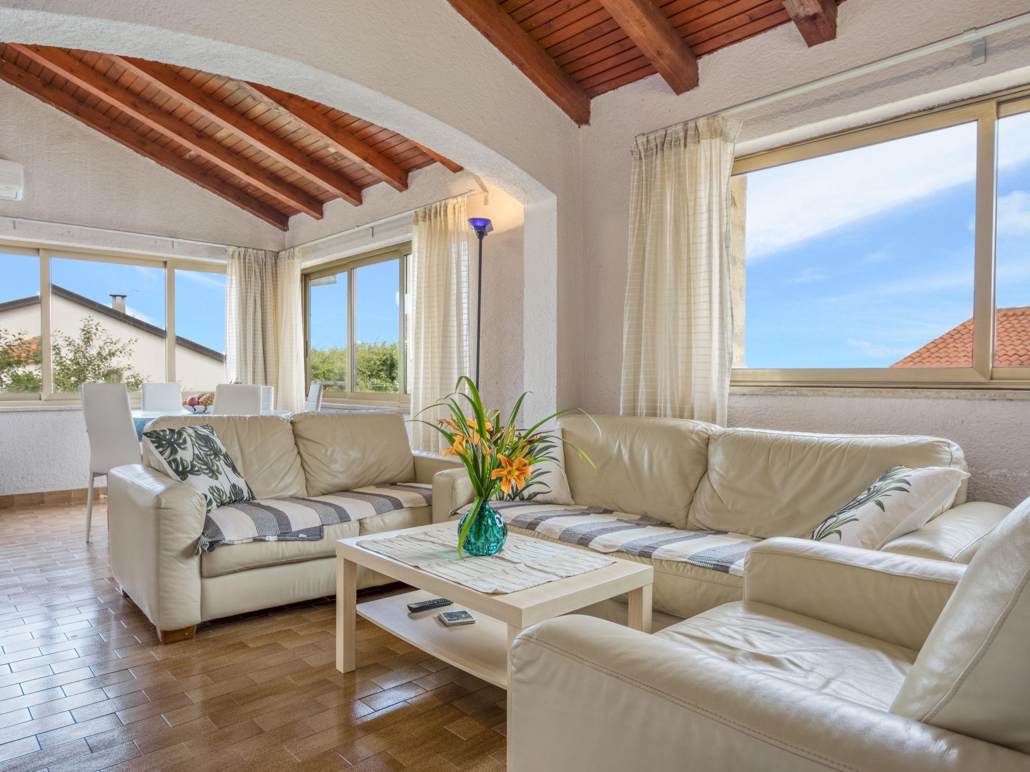 Apartment house "Daria". 1 km from the centre of Porec, in a quiet, sunny position, 500 m from the sea, 500 m from the beach. For shared use: property 500 m2 (fenced), small garden with lawn and plants. In the house: internet access. Public parking. Shop 300 m, supermarket 3 km, restaurant 300 m, bus stop, pebble beach, rocky beach, public bathing area 500 m. Surf school, tennis 300 m, walking paths from the house 1 km, cycle lane 1 km. Nearby attractions: Aquapark 4 km. Please note: airfield 50 km from the property.