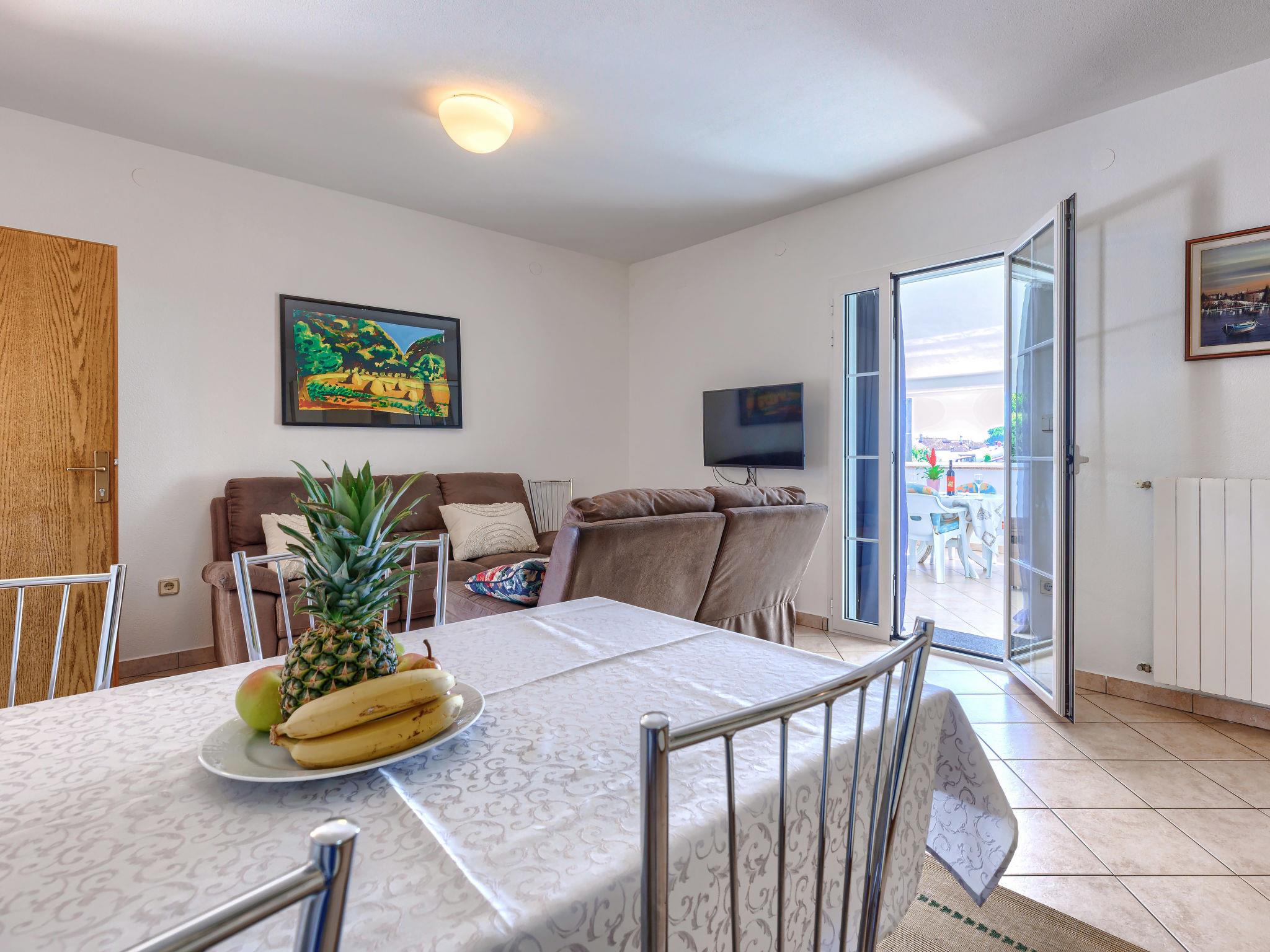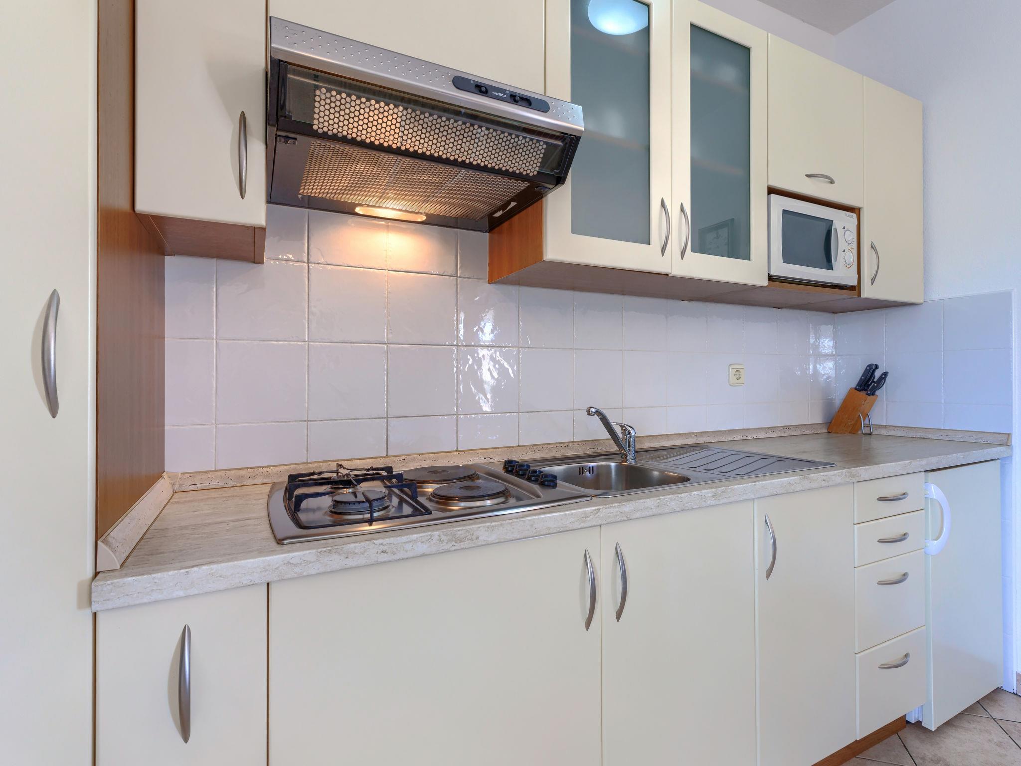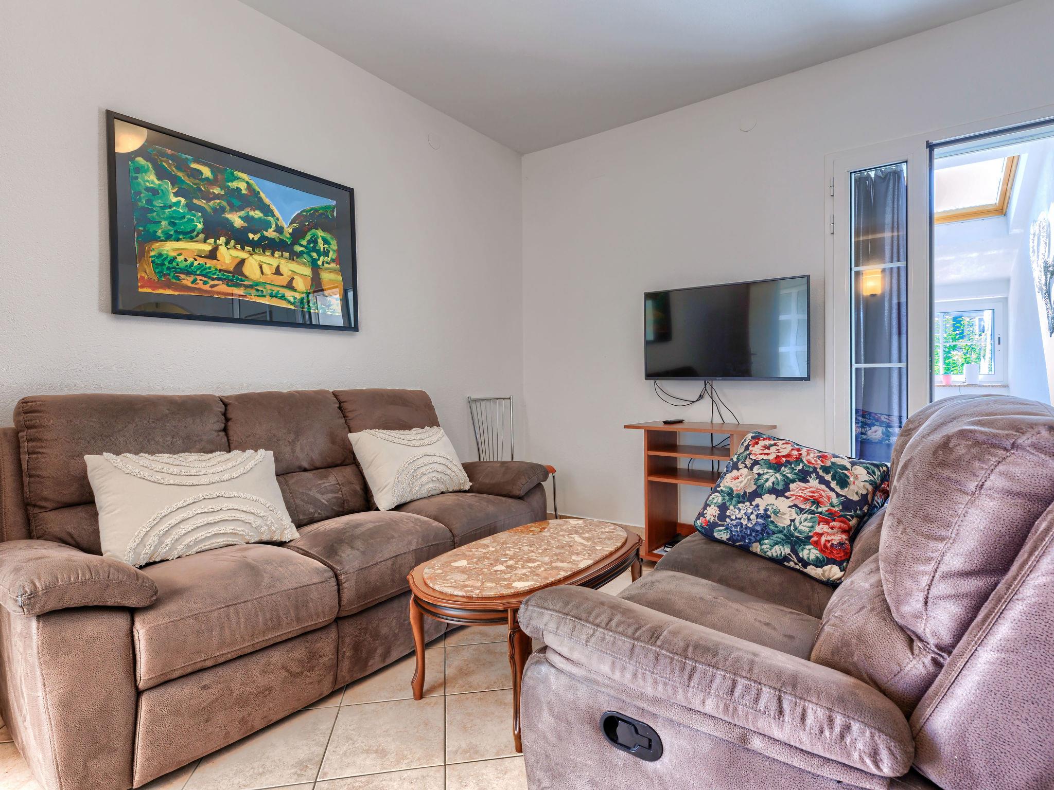 2-room apartment 50 m2 on 1st floor. Living/dining room with satellite TV and air conditioning. Exit to the terrace. 1 room with 1 double bed (2 x 90 cm, length 200 cm). Open kitchen (4 hot plates, microwave). Shower/bidet/WC. Terrace 15 m2, roofed. Terrace furniture. Facilities: Internet (WiFi, free).