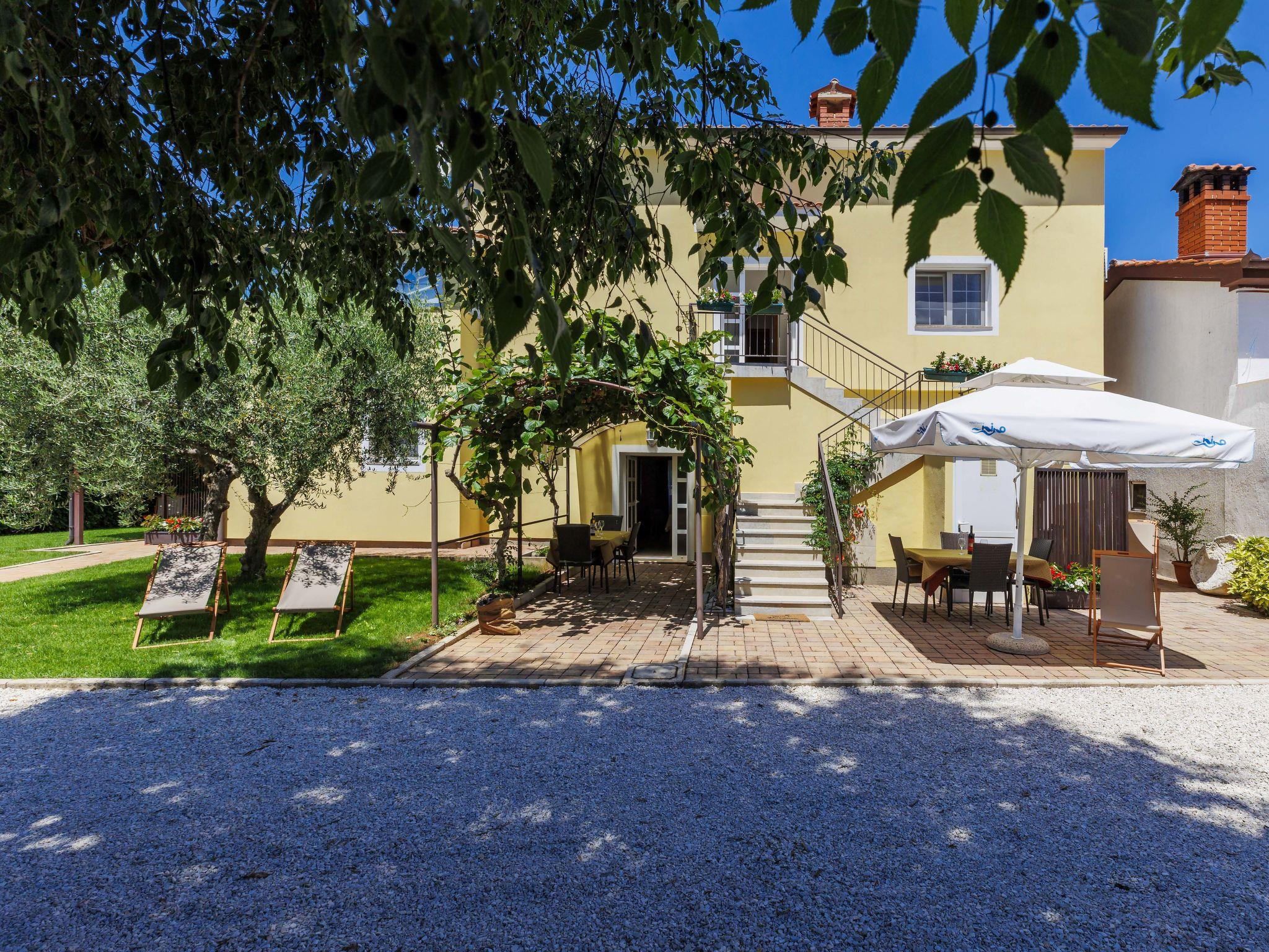 Beautiful apartment house "Nino". In the district of Gulici 3 km from the centre of Porec, in a quiet, sunny, elevated position, 2.5 km from the sea, 1.5 km from the beach. For shared use: property 2'000 m2 (fenced), garden, swimming pool angular heated (8 x 4 m, depth 150 cm, seasonal availability: 01.Apr. - 01.Nov.) with internal staircase. Outdoor shower, pool maintenance by the owner/gardener. In the house: internet access, central heating system, washing machine. Parking at the house on the premises. Shop, restaurant 400 m, bus stop 2 km, pebble beach 2.5 km, rocky beach 2.5 km. Tennis 1 km. Groups of teenagers are not allowed.