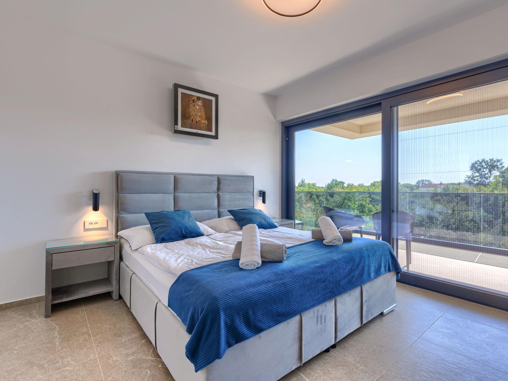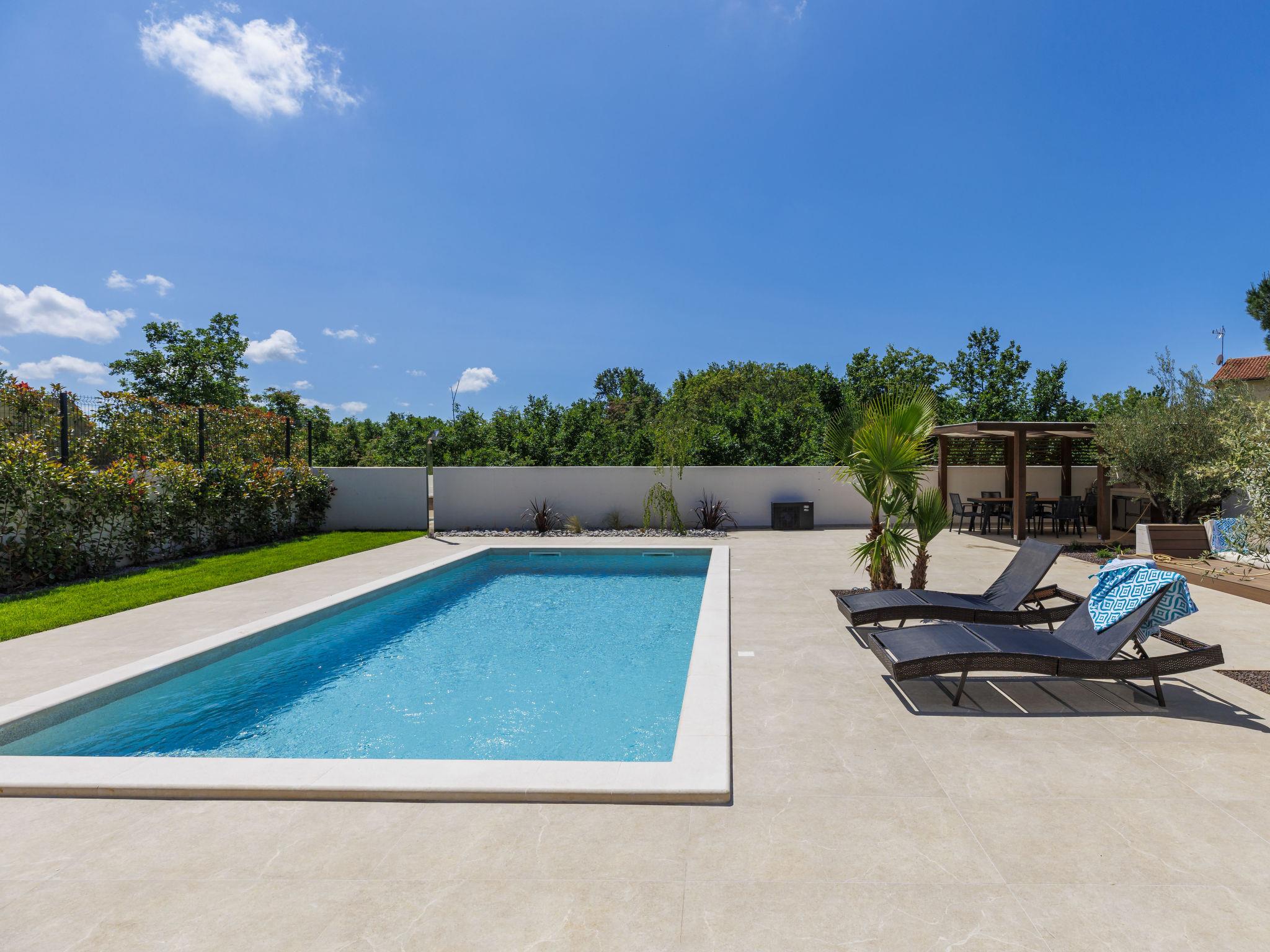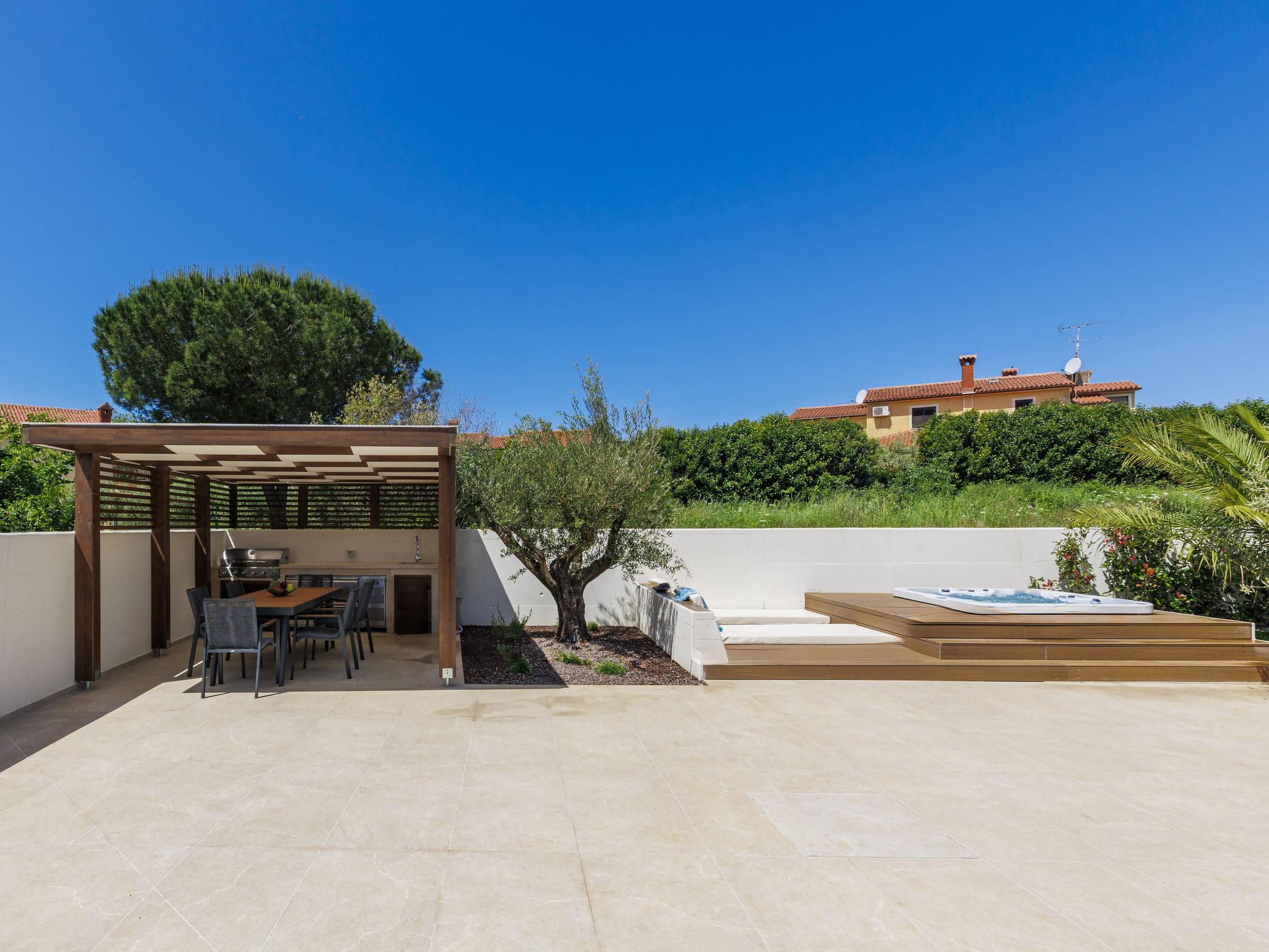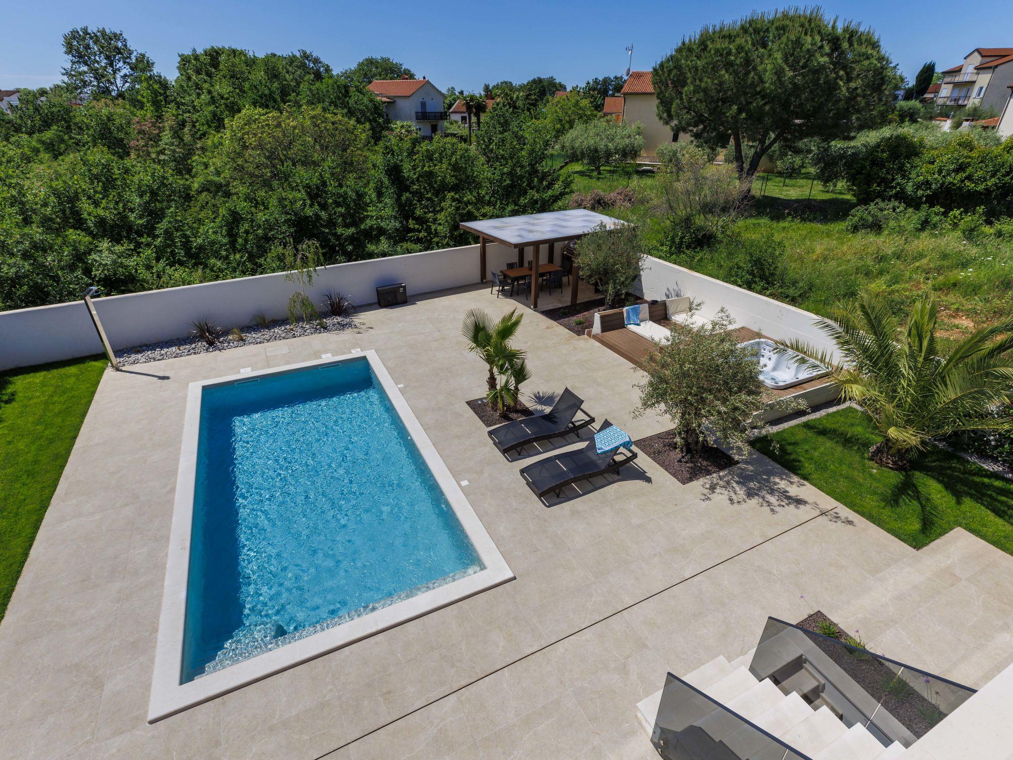 Beautiful, luxurious villa "Villa Sandro". In the district of Vranici 3 km from the centre of Porec, in a sunny position, 2 km from the sea, 2 km from the beach. Private: property 707 m2 (fenced) with wildlife garden, swimming pool angular, heated (8 x 4 m, depth 150 cm, seasonal availability: 01.Jan. - 31.Dec.) with internal staircase. Outdoor shower, hot tub, barbecue. In the house: internet access, sauna, fitness room, burglar alarm system, washing machine. Motor access to the house (200 m via unmade road). Parking (for 3 cars) at the house. E-charging station. Shop 400 m, restaurant, bus stop 2.5 km, pebble beach 2 km, rocky beach 2 km. Tennis 1 km. Nearby attractions: Aquapark 8 km. The owner does not accept any youth groups. Please note: airfield 50 km from the property. Video surveillance of the driveway and parking.