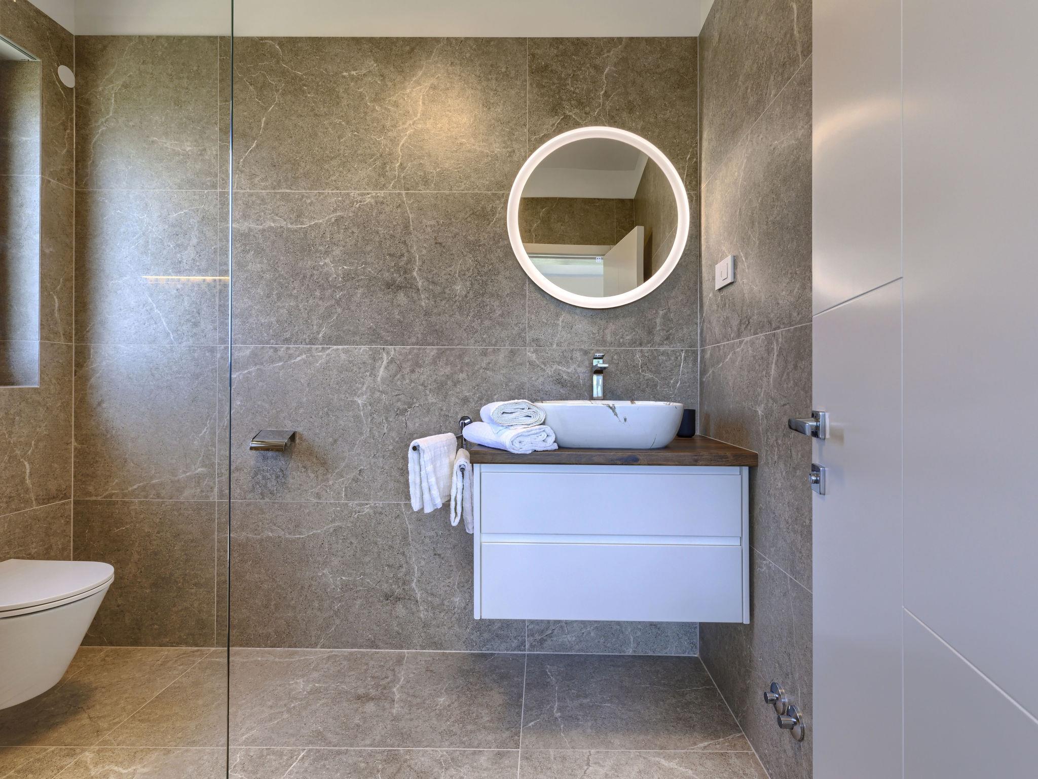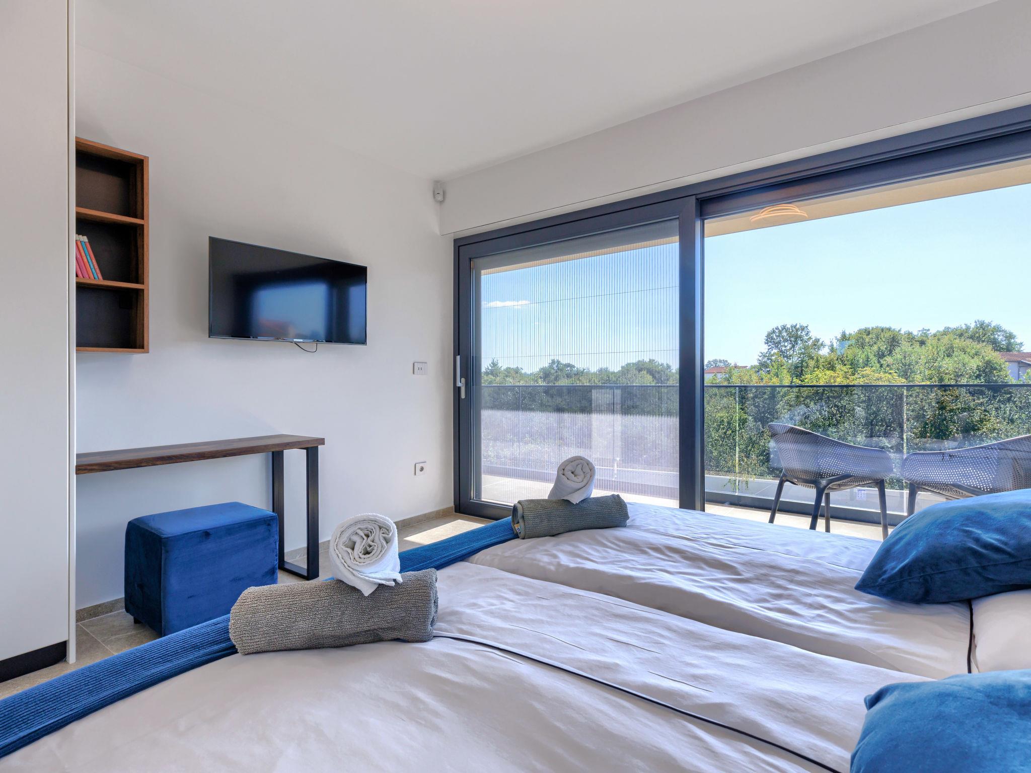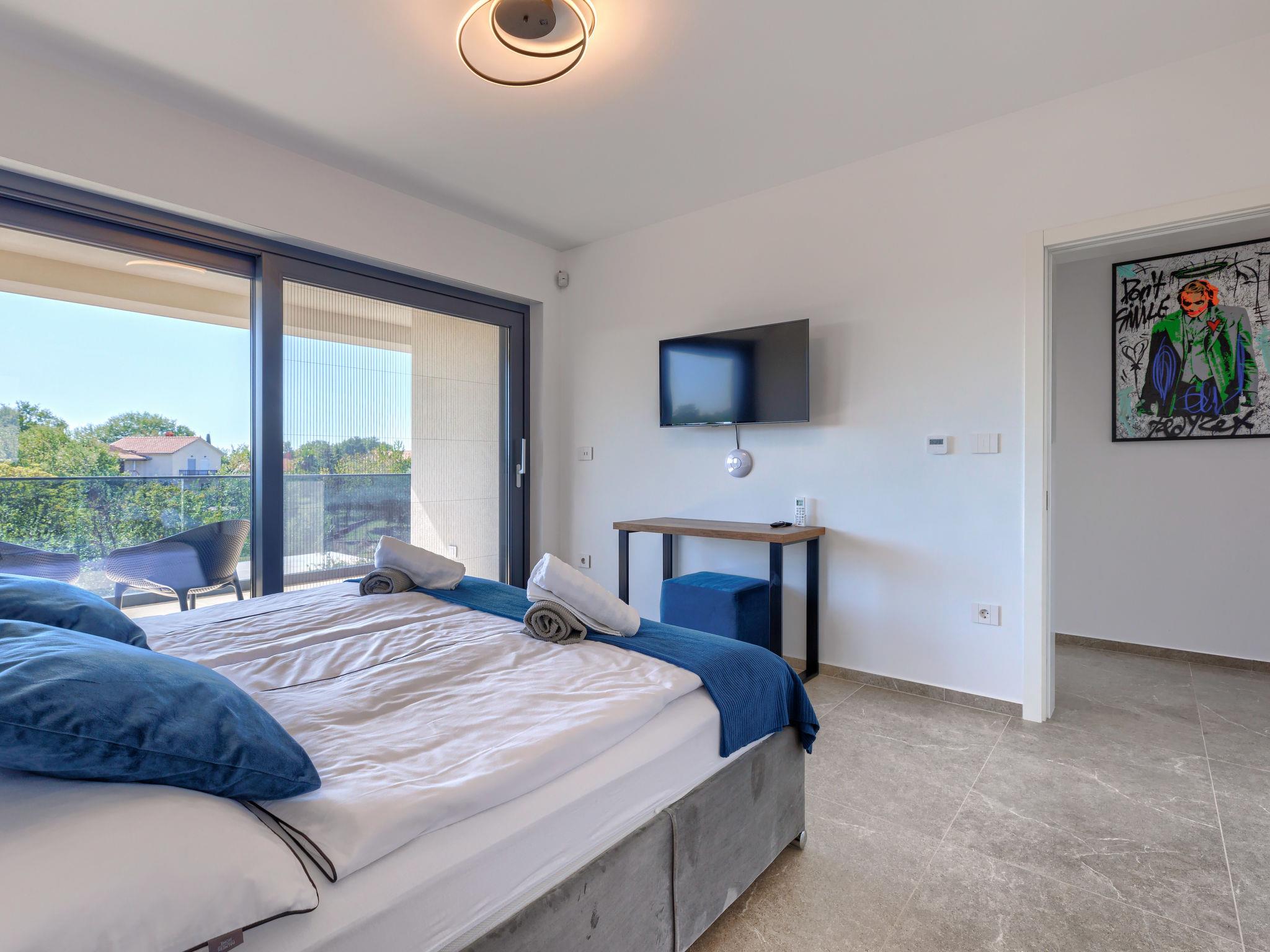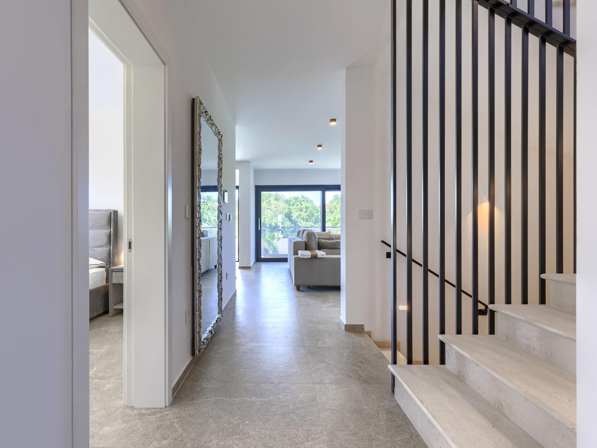 Beautiful, luxurious villa "Villa Sandro". In the district of Vranici 3 km from the centre of Porec, in a sunny position, 2 km from the sea, 2 km from the beach. Private: property 707 m2 (fenced) with wildlife garden, swimming pool angular, heated (8 x 4 m, depth 150 cm, seasonal availability: 01.Jan. - 31.Dec.) with internal staircase. Outdoor shower, hot tub, barbecue. In the house: internet access, sauna, fitness room, burglar alarm system, washing machine. Motor access to the house (200 m via unmade road). Parking (for 3 cars) at the house. E-charging station. Shop 400 m, restaurant, bus stop 2.5 km, pebble beach 2 km, rocky beach 2 km. Tennis 1 km. Nearby attractions: Aquapark 8 km. The owner does not accept any youth groups. Please note: airfield 50 km from the property. Video surveillance of the driveway and parking.