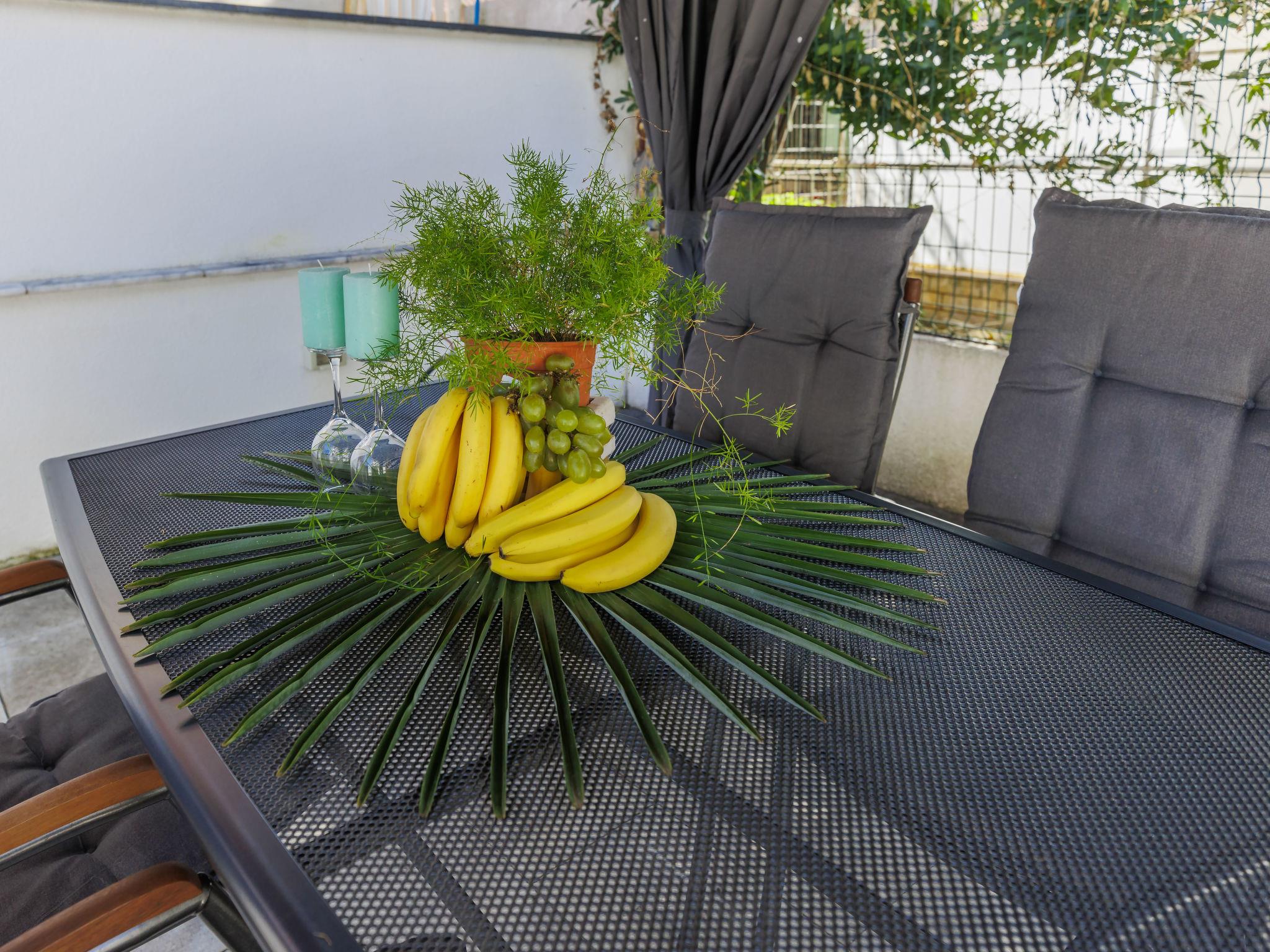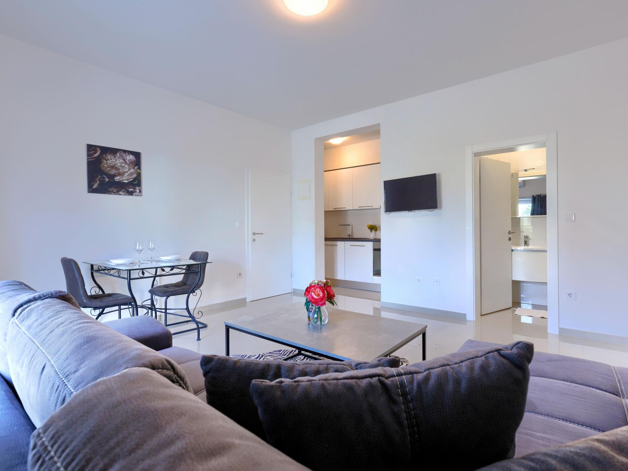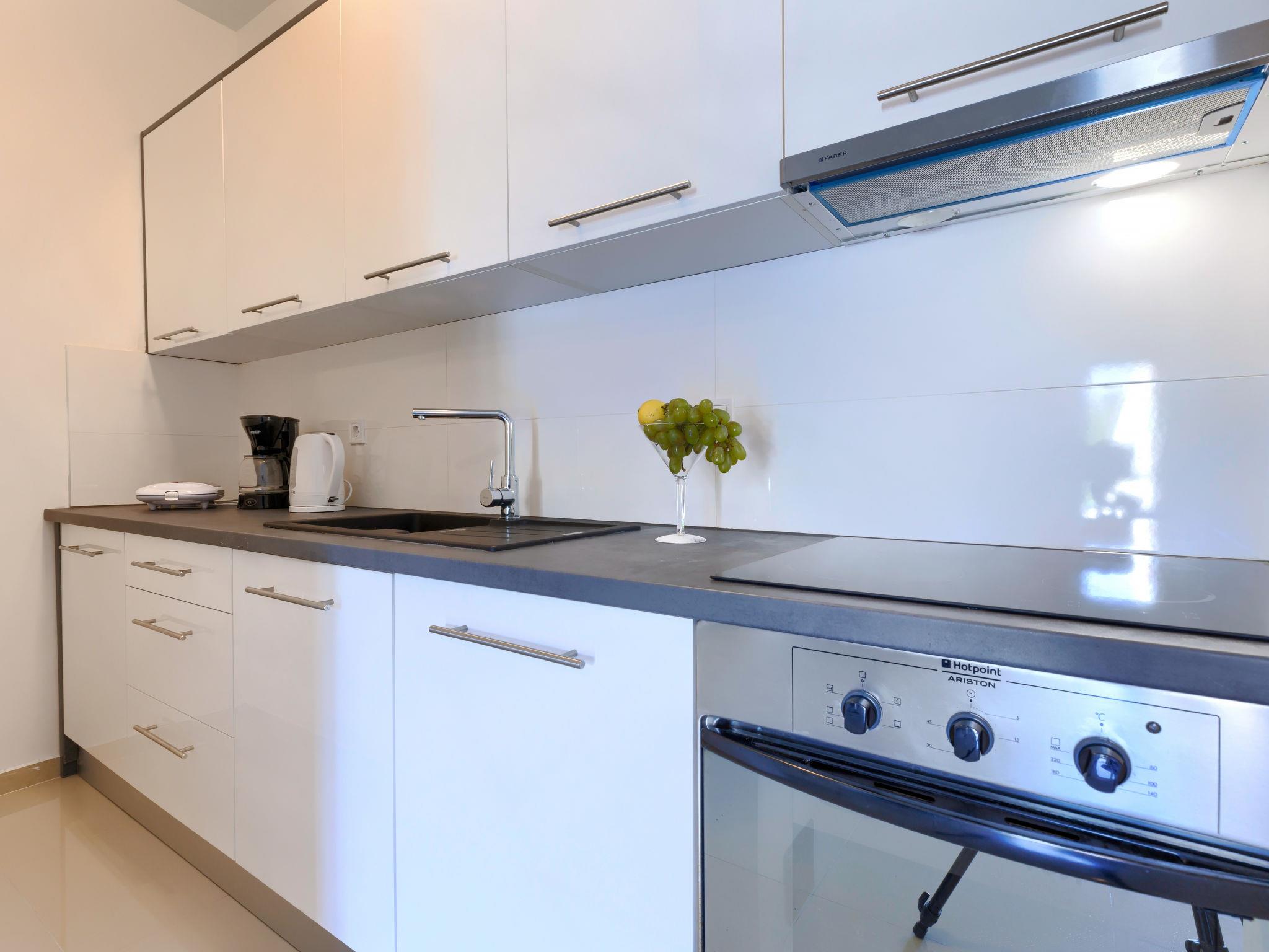 "Amra 3", 1-room studio 20 m2, on the ground floor. Simple furnishings: living/dining room with 1 double sofabed (160 cm, length 200 cm), satellite TV and air conditioning. Open kitchen (oven, 4 ceramic glass hob hotplates, toaster, kettle, electric coffee machine). Shower/WC. Forced-air heating. Facilities: iron, hair dryer. Internet (WiFi, free). Parking (1 car) at the house.