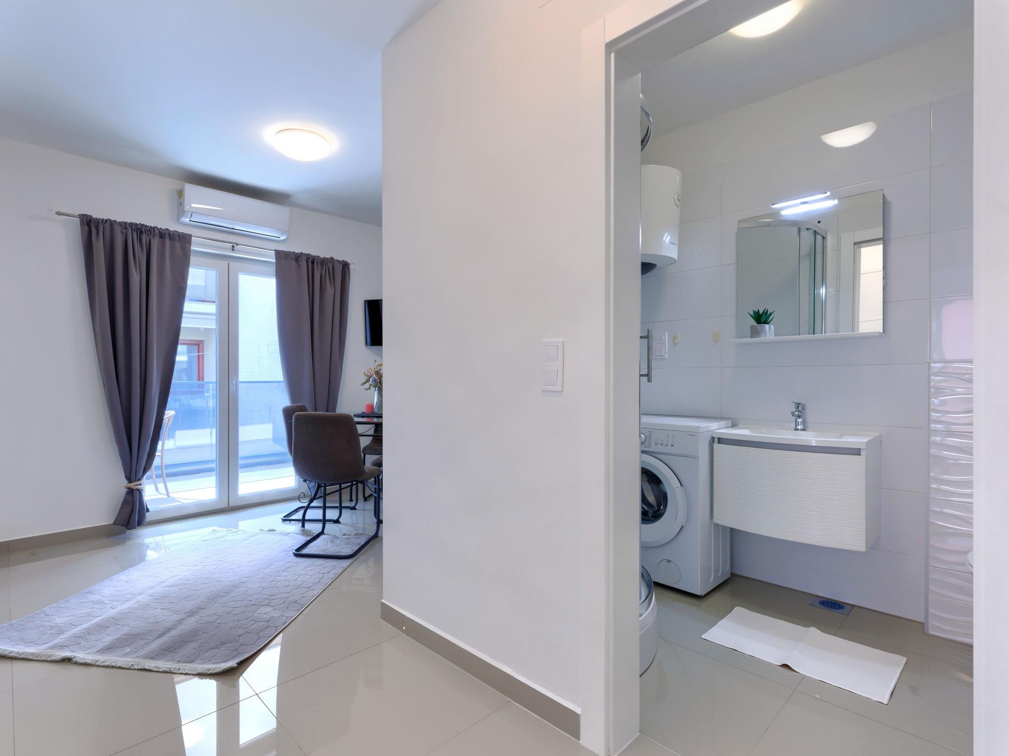 Simple apartment house "Villa Amra". In the district of Finida 1.2 km from the centre of Porec, 800 m from the sea, from the beach. For shared use: barbecue. In the house: internet access. Parking at the house on the premises. Supermarket 350 m, restaurant 500 m, bus stop 1.1 km, pebble beach, rocky beach 800 m. Marina 1 km, sailing school 1 km, tennis 1 km, walking paths from the house 1 km, cycle lane 1 km, children's playground 300 m. Nearby attractions: Aquapark 3 km.