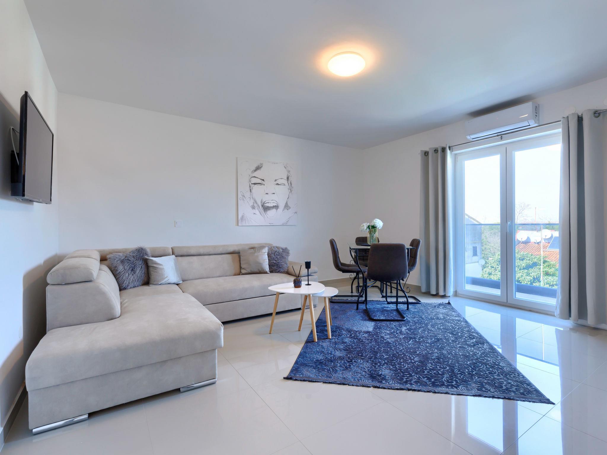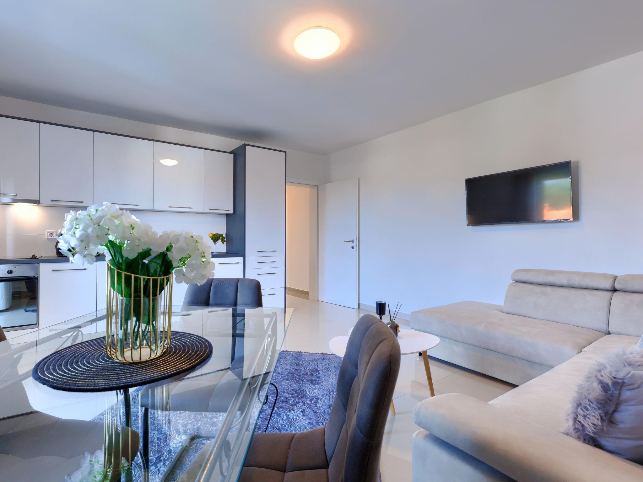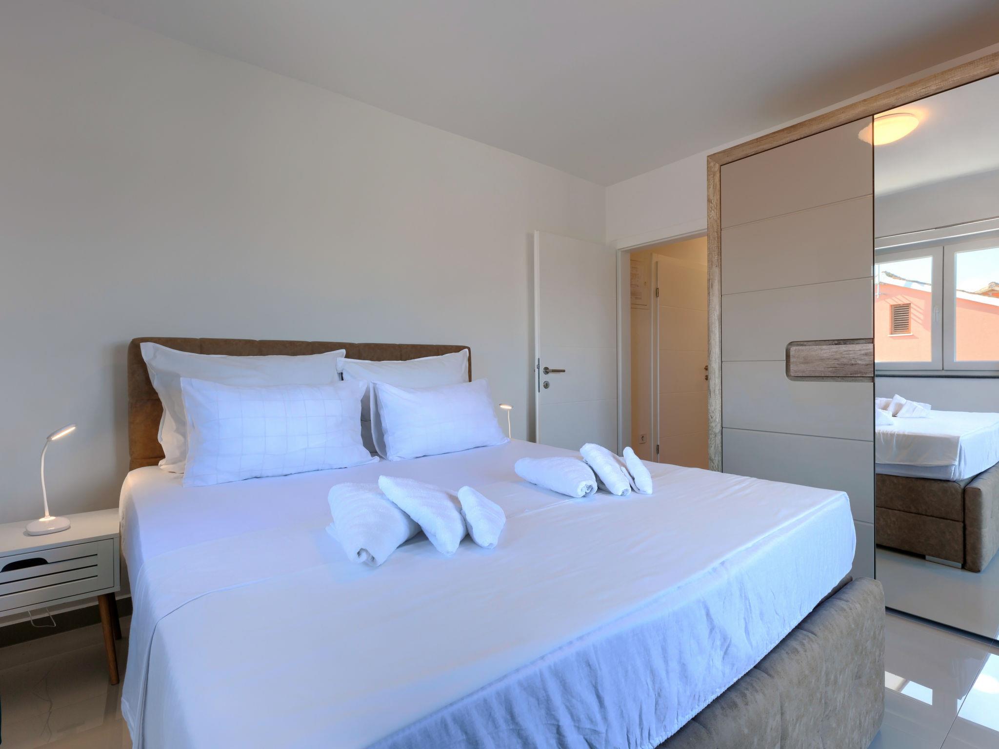 "Amra 6", 3-room apartment 40 m2, on the top floor. Cosy furnishings: living/dining room with 1 sofabed (120 cm, length 200 cm), satellite TV and air conditioning. Exit to the terrace. 1 room with 1 sofabed (120 cm, length 190 cm). 1 room with 1 french bed (160 cm, length 200 cm), air conditioning. Exit to the terrace. Open kitchen (oven, dishwasher, 4 ceramic glass hob hotplates, toaster, kettle, electric coffee machine). Shower/WC. Forced-air heating. Terrace 12 m2, terrace 5 m2. Facilities: washing machine, iron, hair dryer. Internet (WiFi, free). Parking (1 car) at the house.