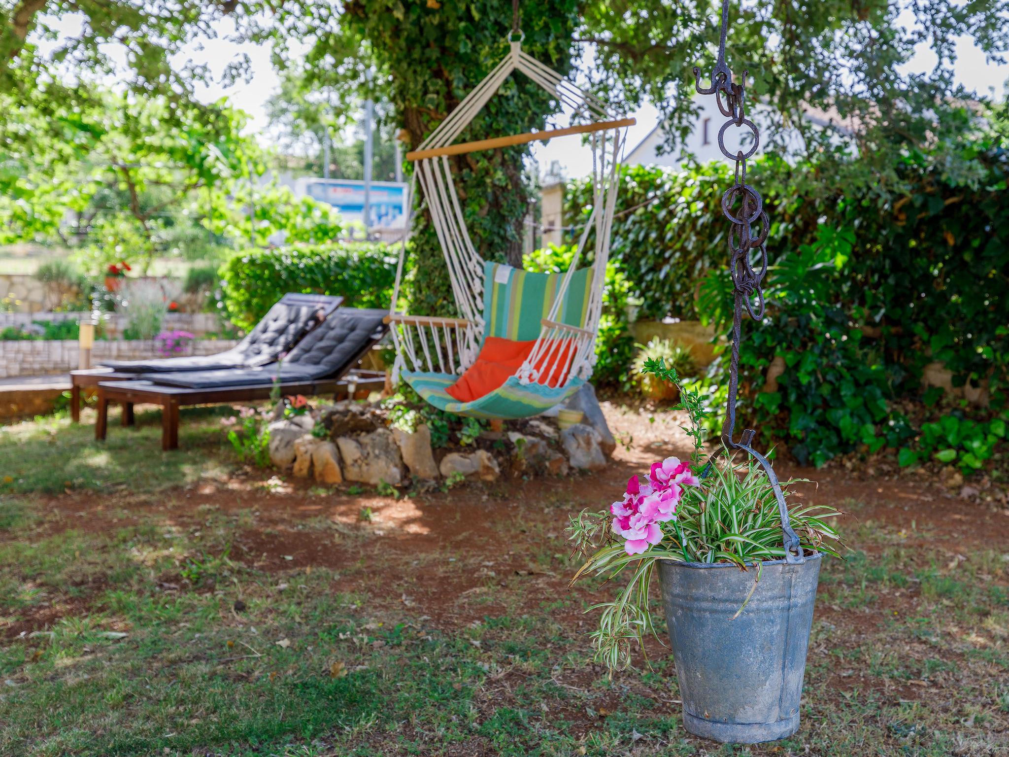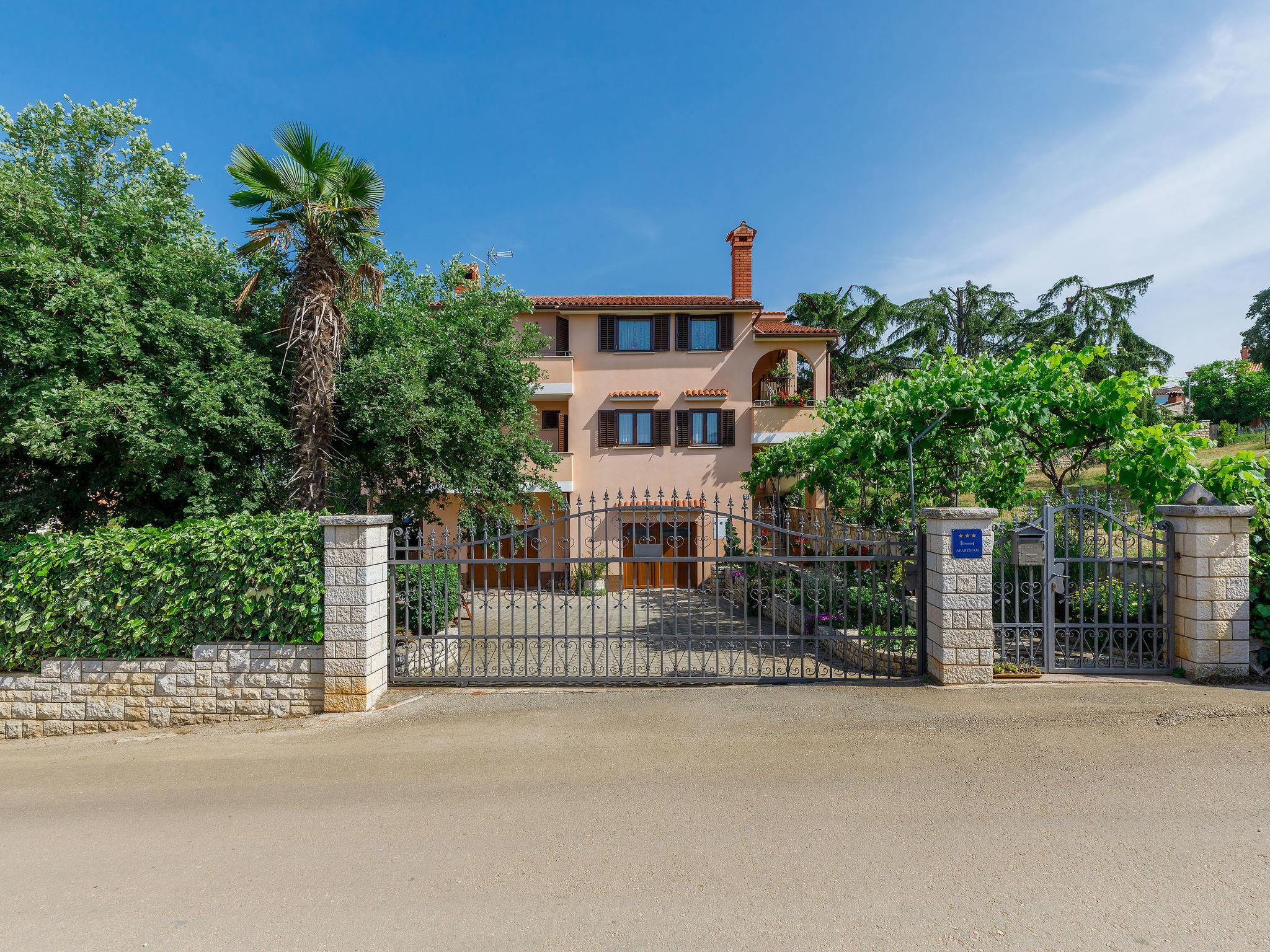 Beautiful apartment house "Lili". In the hamlet Kukci 2 km from the centre of Porec, in a quiet, sunny position, 3 km from the sea, 3 km from the beach. For shared use: property 900 m2 (fenced), beautiful garden with lawn and plants. Barbecue. In the house: internet access, washing machine (for shared use, extra). Parking at the house on the premises. Shop 100 m, restaurant 200 m, bus stop 1.4 km, pebble beach 3 km, rocky beach 3 km. Tennis 3.5 km, walking paths from the house 200 m, cycle lane 250 m. Seasonal vegetable from the owner`s garden free of charge for house guests.