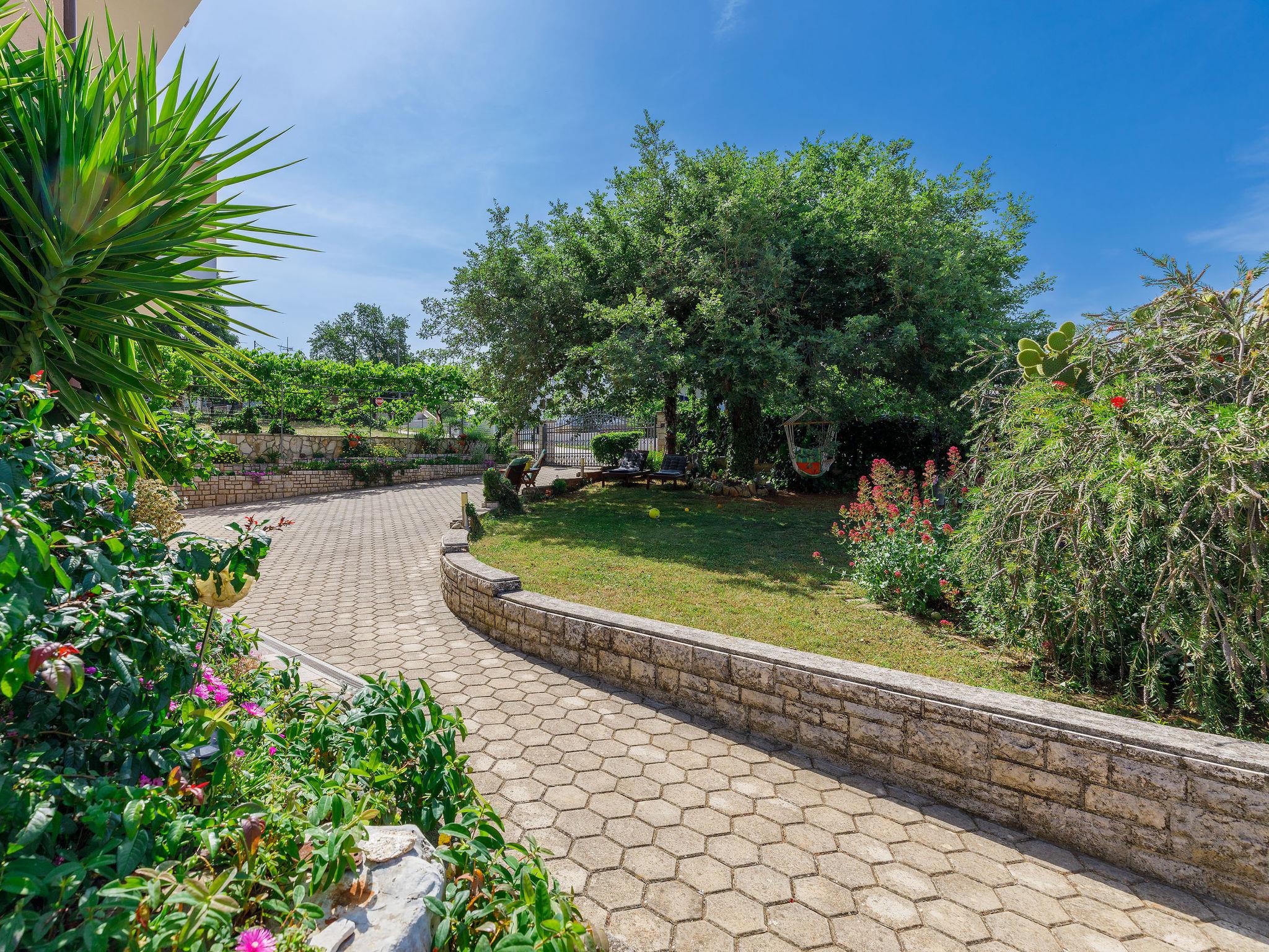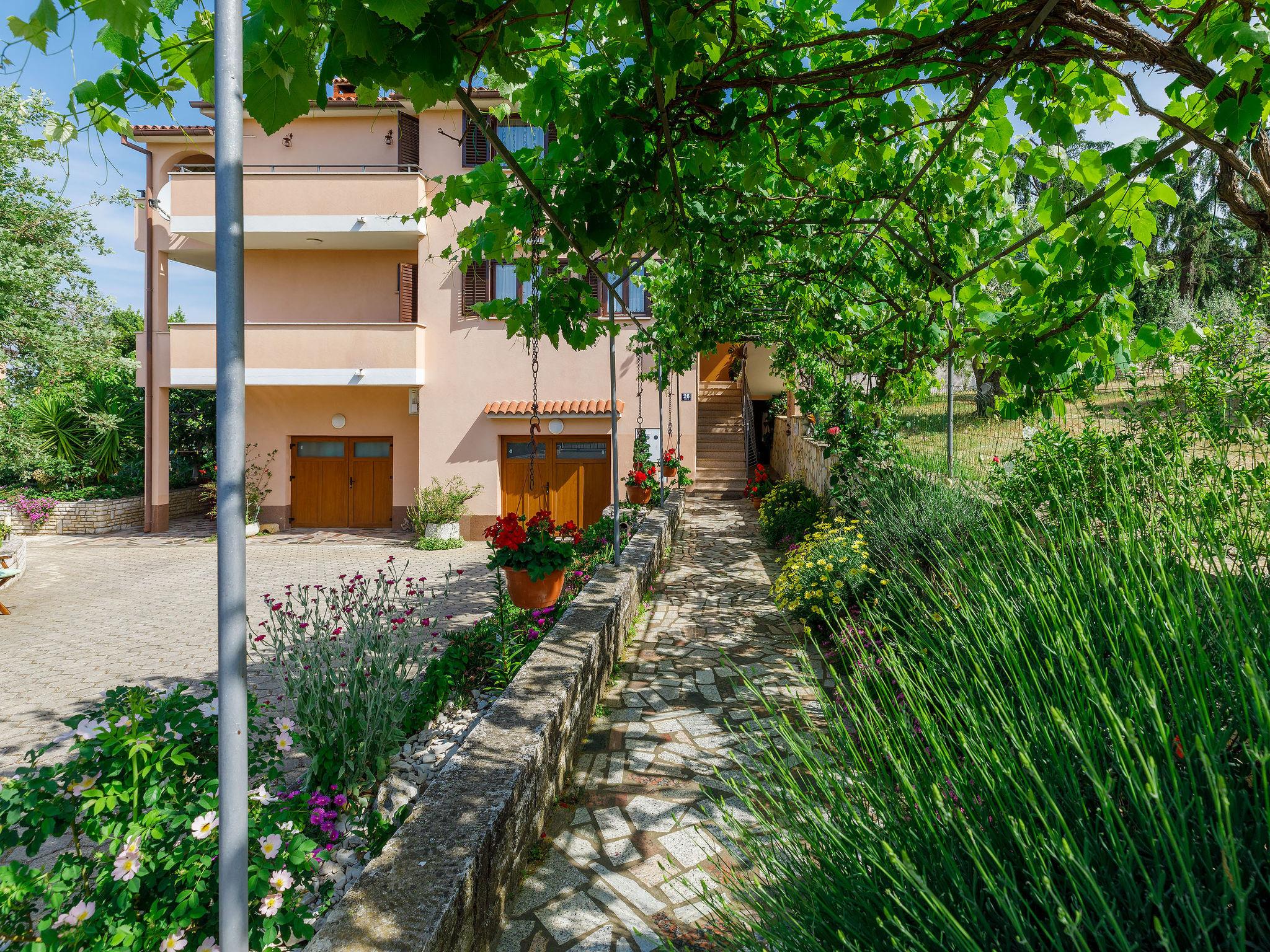 Beautiful apartment house "Lili". In the hamlet Kukci 2 km from the centre of Porec, in a quiet, sunny position, 3 km from the sea, 3 km from the beach. For shared use: property 900 m2 (fenced), beautiful garden with lawn and plants. Barbecue. In the house: internet access, washing machine (for shared use, extra). Parking at the house on the premises. Shop 100 m, restaurant 200 m, bus stop 1.4 km, pebble beach 3 km, rocky beach 3 km. Tennis 3.5 km, walking paths from the house 200 m, cycle lane 250 m. Seasonal vegetable from the owner`s garden free of charge for house guests.