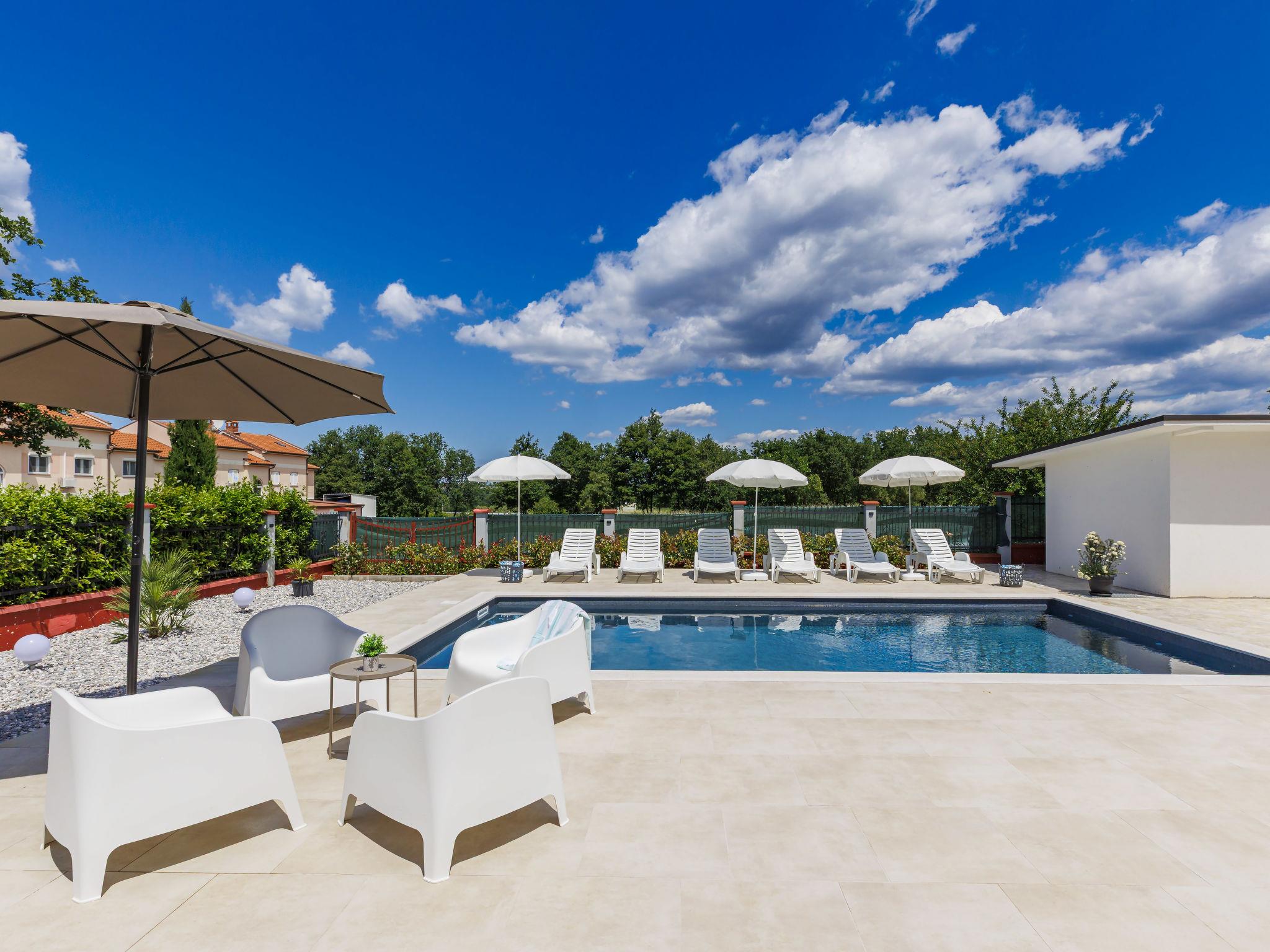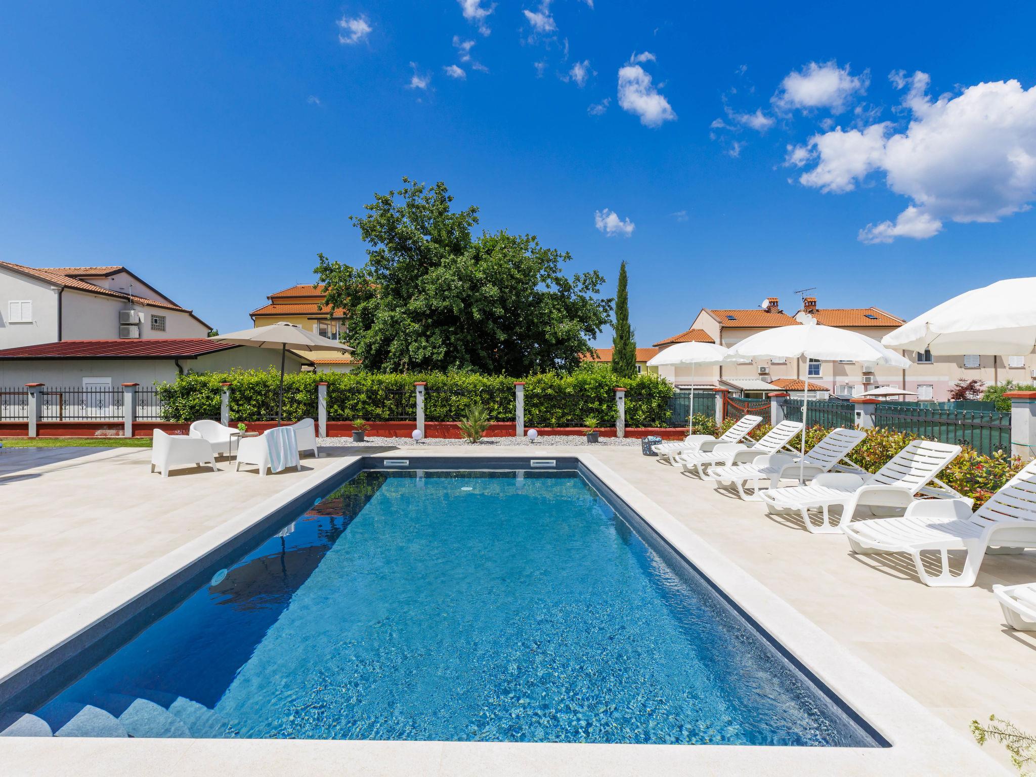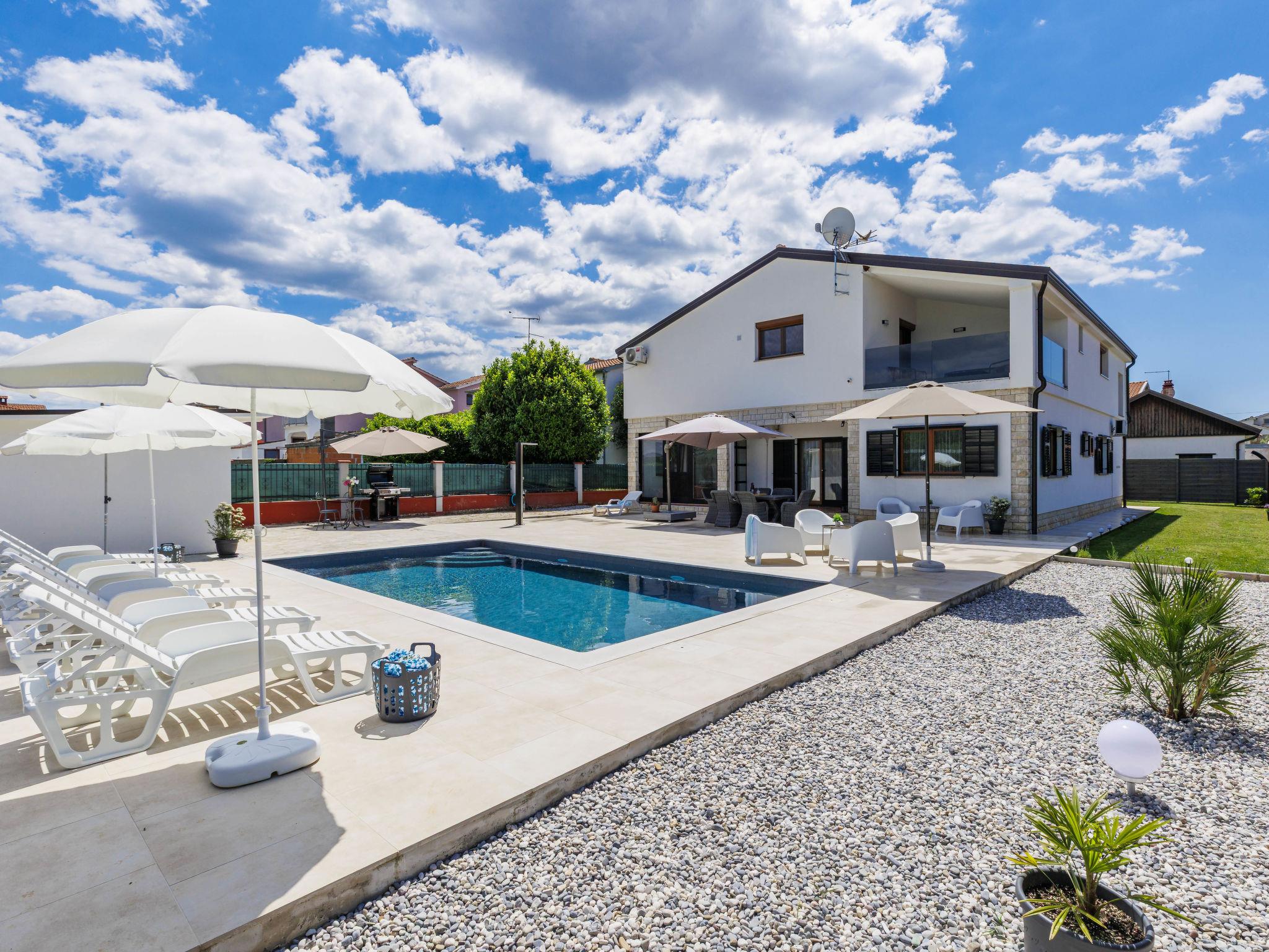 Beautiful single-family house "Villa Rubil", 2 storeys in 2025. In the hamlet Cancini 3 km from the centre of Porec, in a sunny position, 2.5 km from the sea, 2.5 km from the beach, in a cul-de-sac. Private: property 1'000 m2 (fenced), swimming pool angular (8 x 4 m, depth 145 cm, seasonal availability: 01.May. - 01.Nov.) with internal staircase. Outdoor shower, terrace, garden furniture. In the house: internet access, washing machine. Parking (for 2 cars) at the house on the premises. E-charging station. Shop 200 m, supermarket 2 km, restaurant 300 m, bus stop 850 m, sandy beach 2.5 km, rocky beach 2.5 km. Tennis 3 km, walking paths from the house, cycle lane 200 m. Nearby attractions: Aquapark 9 km. Please note: the owner lives on the same property. Video surveillance of the driveway and parking. The house consists of 2 apartments rented as one unit.