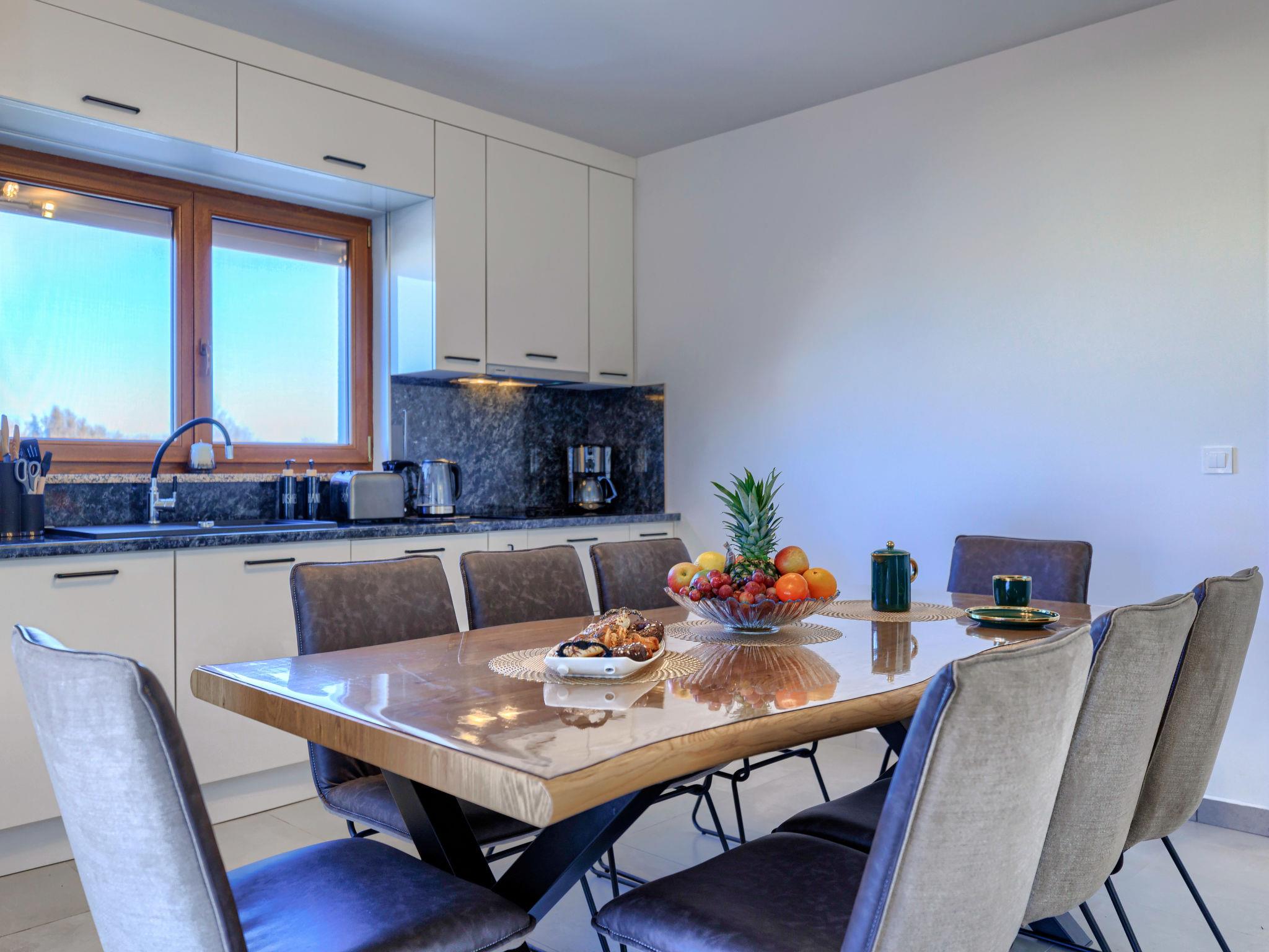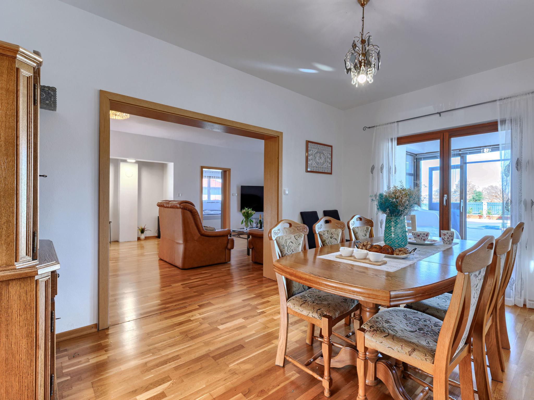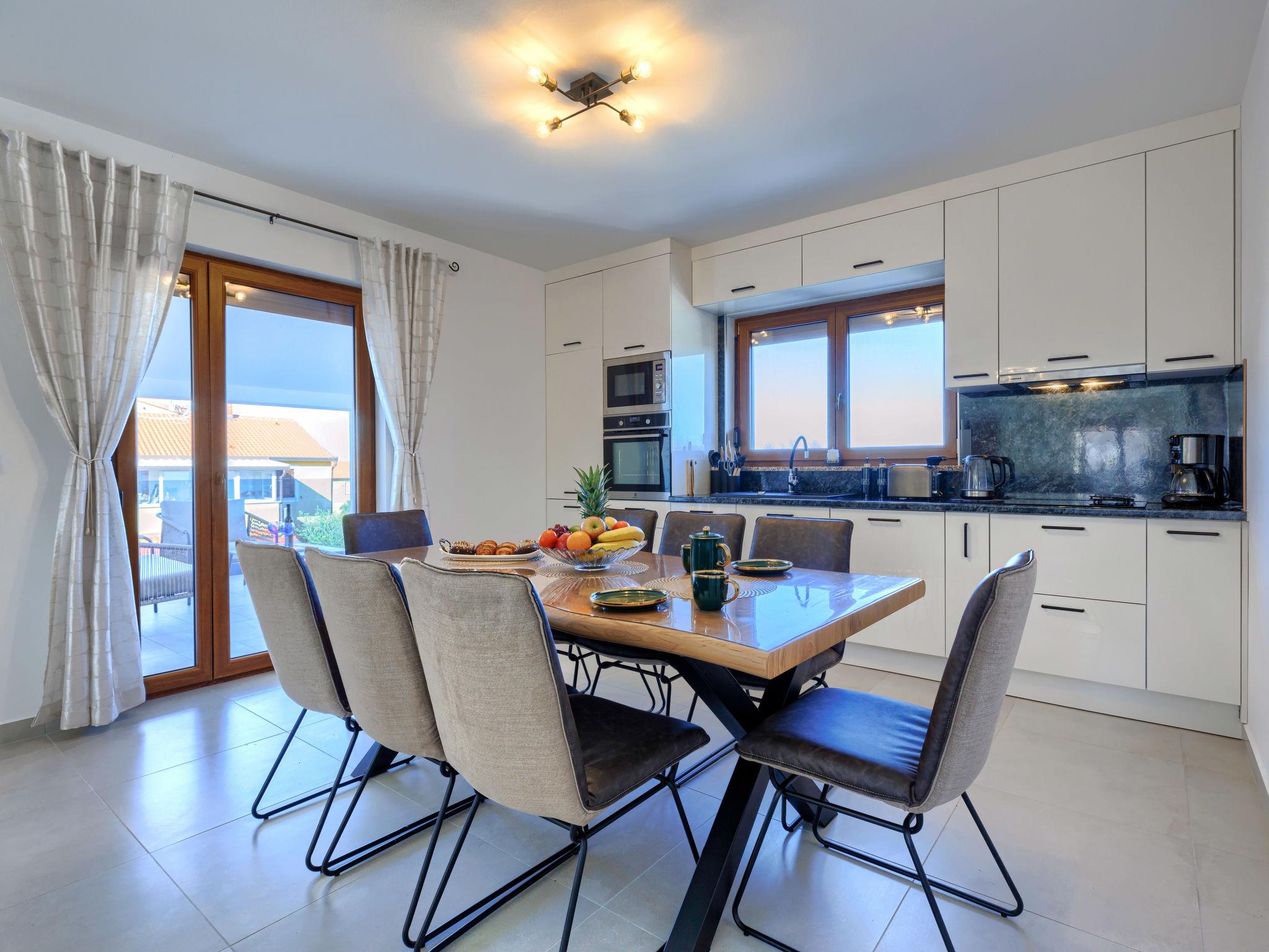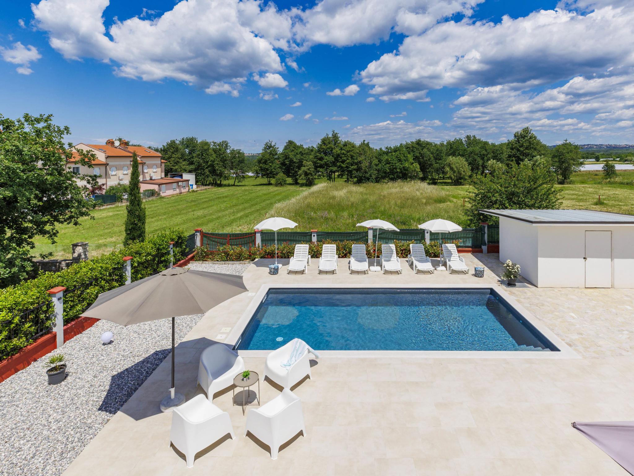 Beautiful single-family house "Villa Rubil", 2 storeys in 2025. In the hamlet Cancini 3 km from the centre of Porec, in a sunny position, 2.5 km from the sea, 2.5 km from the beach, in a cul-de-sac. Private: property 1'000 m2 (fenced), swimming pool angular (8 x 4 m, depth 145 cm, seasonal availability: 01.May. - 01.Nov.) with internal staircase. Outdoor shower, terrace, garden furniture. In the house: internet access, washing machine. Parking (for 2 cars) at the house on the premises. E-charging station. Shop 200 m, supermarket 2 km, restaurant 300 m, bus stop 850 m, sandy beach 2.5 km, rocky beach 2.5 km. Tennis 3 km, walking paths from the house, cycle lane 200 m. Nearby attractions: Aquapark 9 km. Please note: the owner lives on the same property. Video surveillance of the driveway and parking. The house consists of 2 apartments rented as one unit.