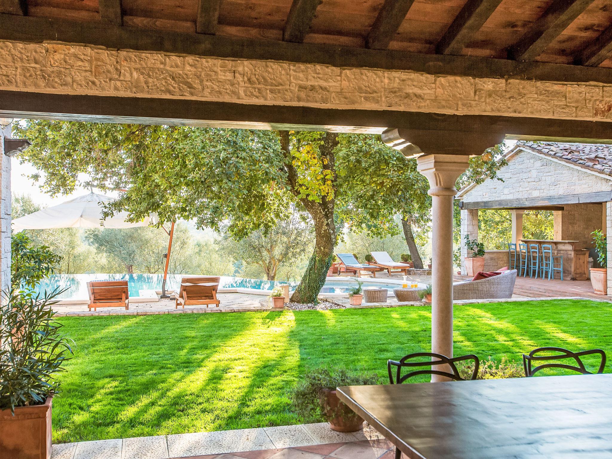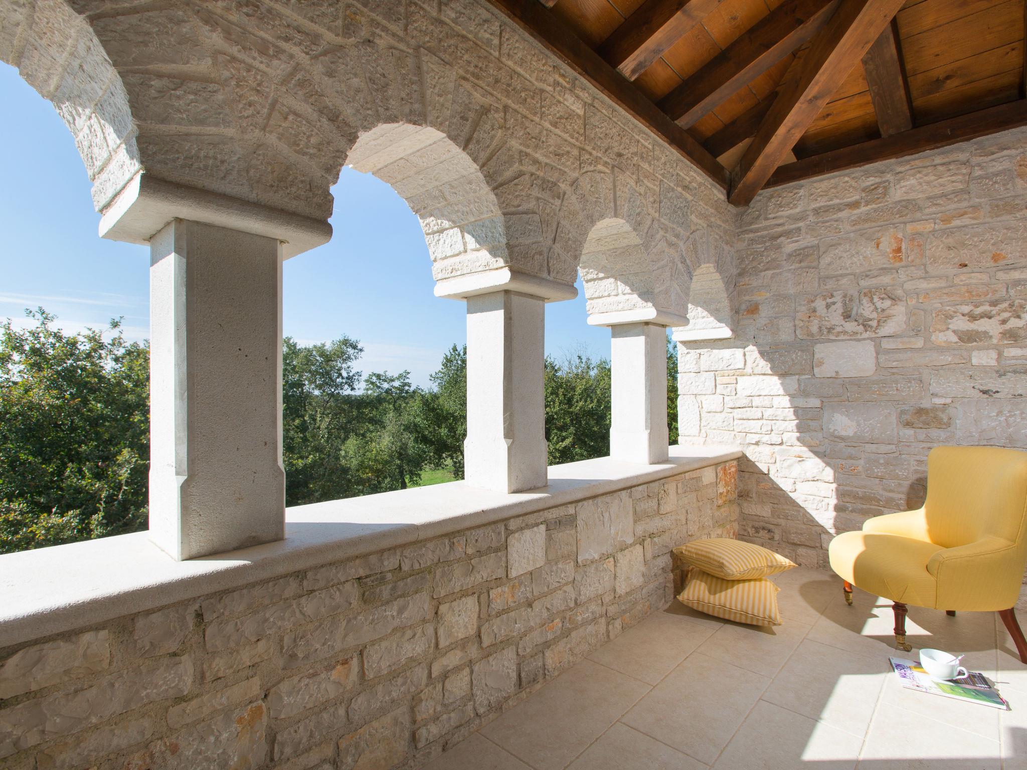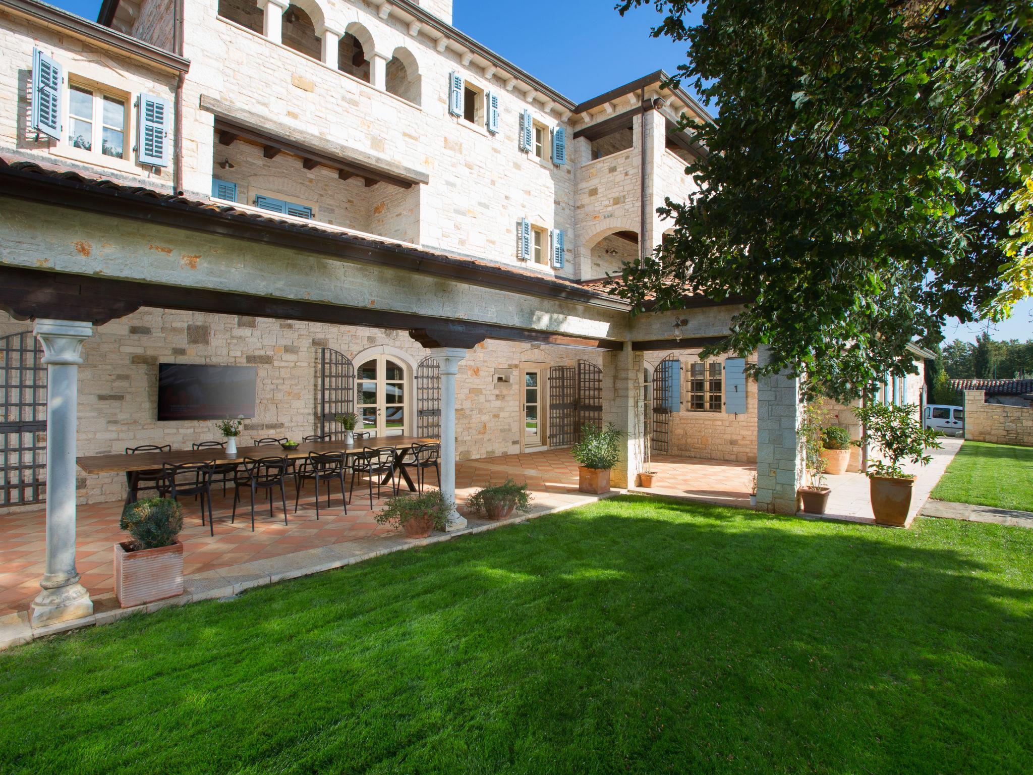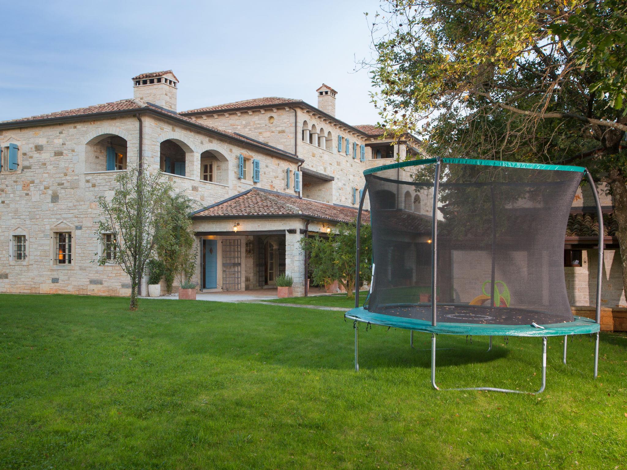 Beautiful, rustic villa "Lou", 2 storeys. In the hamlet Filipini 8 km from the centre of Porec, in a quiet, sunny position, 8 km from the sea, in a cul-de-sac, in the countryside. Private: property 35'000 m2 with lawn and wildlife garden, swimming pool kidney shaped (120 m2, depth 140 - 180 cm, seasonal availability: 01.Apr. - 01.Nov.) with internal staircase. Outdoor shower, patio (15 m2), terrace (20 m2), garden furniture, barbecue, pool maintenance by the owner/gardener. In the house: internet access, billiard table, washing machine. Roofed, parking (for 6 cars) at the house on the premises. Shop 7 km, supermarket 7 km, restaurant 4 km, bus stop 8 km, rocky beach 8 km. Walking paths from the house 50 m, cycle lane 100 m. Nearby attractions: Winery 4 km. Please note: airfield 60 km from the property.