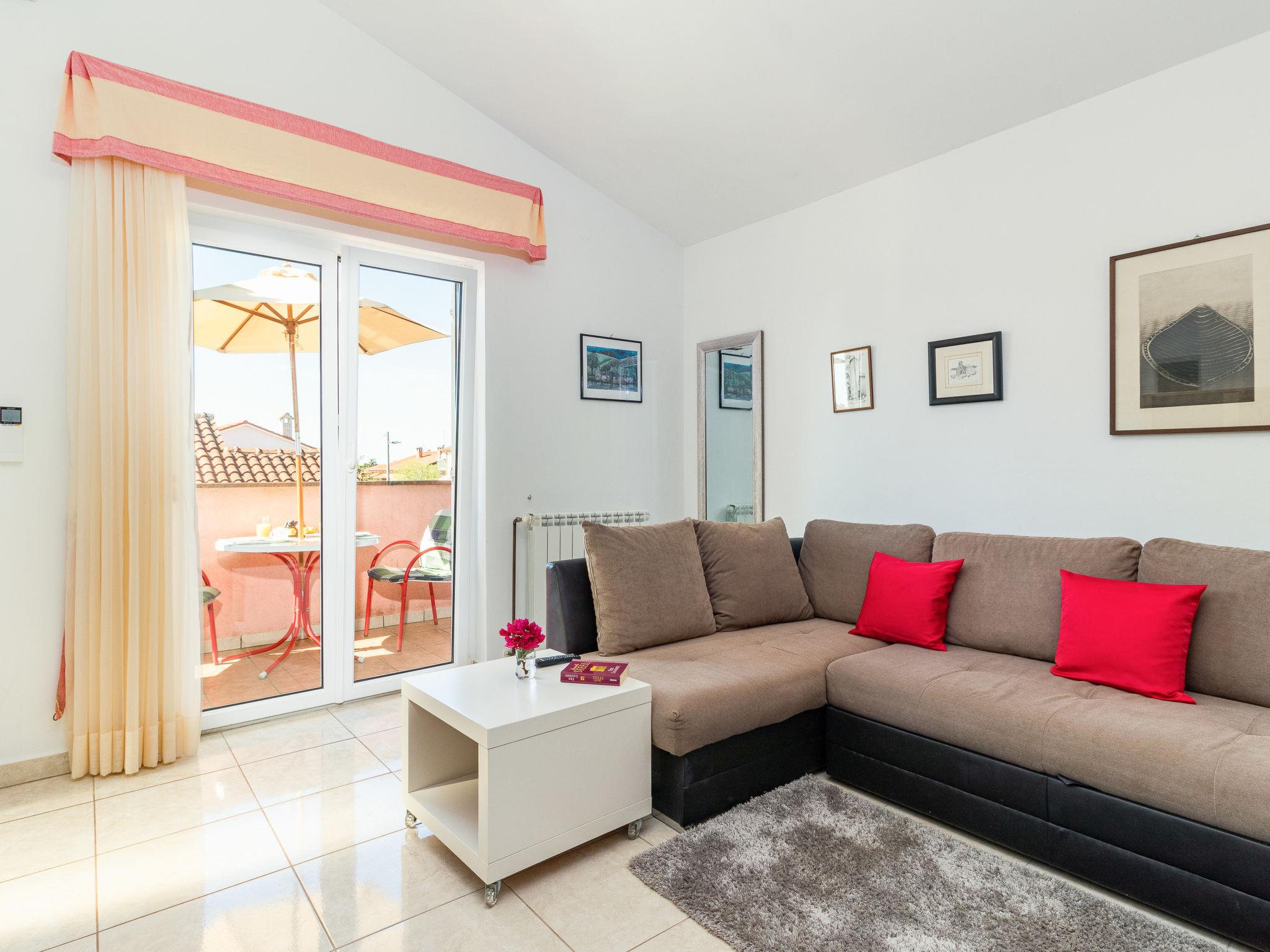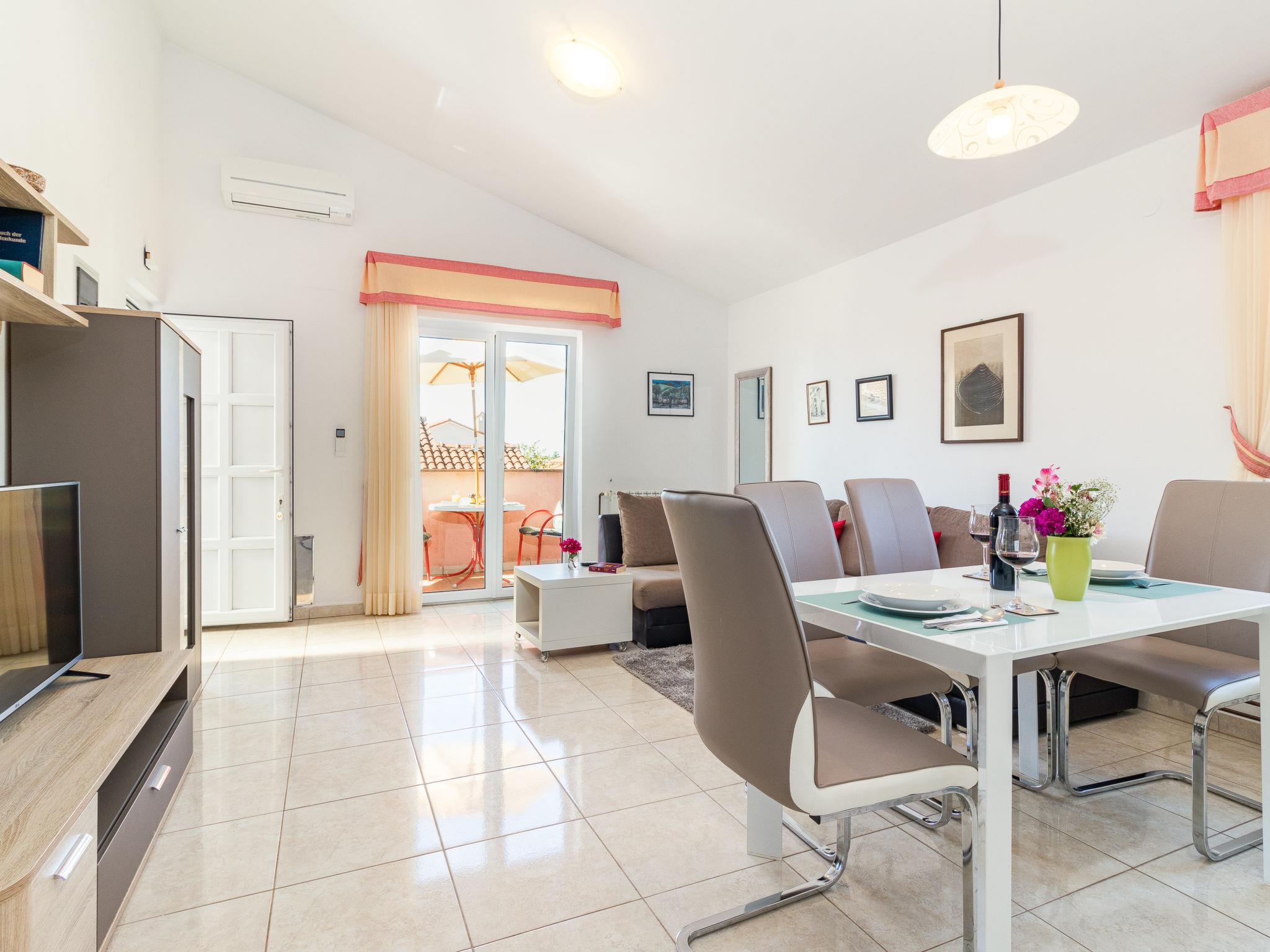 "Viktorija", 2-room apartment 48 m2 on 1st floor. Living/dining room with 1 double sofabed (140 cm, length 200 cm), satellite TV and air conditioning. Exit to the balcony. 1 room with 1 double bed. Open kitchen (4 ceramic glass hob hotplates, toaster, kettle, microwave, freezer, electric coffee machine). Bath/bidet/WC. Heating. Balcony 10 m2. Balcony furniture. Facilities: Internet (WiFi, free). Please note: non-smoking house. Maximum 1 pet/ dog allowed.