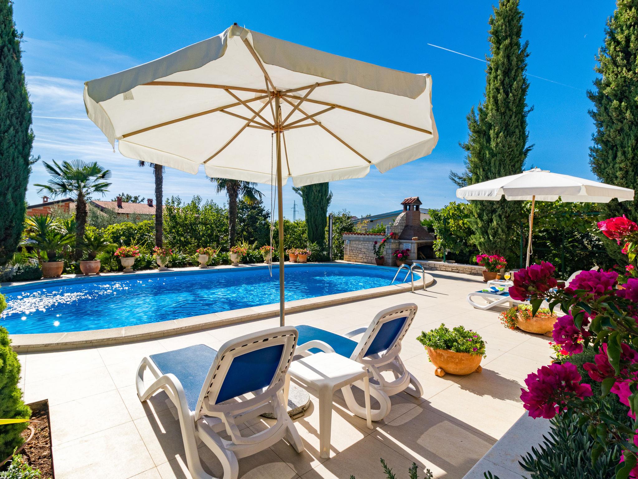 3-family house "Viktorija". 400 m from the centre of Nova Vas, 5 km from the centre of Porec, 5 km from the sea. For shared use: property 1'200 m2 (fenced) with plants and trees, swimming pool (11 x 5 m, depth 150 cm, seasonal availability: 01.May. - 01.Oct.). Unconventional pool shape. Outdoor shower, garden furniture, barbecue. In the house: internet access, washing machine (extra) (for shared use). Parking on the premises. Shop 400 m, supermarket 5 km, bus stop 8 km, railway station 32 km, rocky beach 5 km. Marina 5 km. Please note: the owner lives in the same residence.