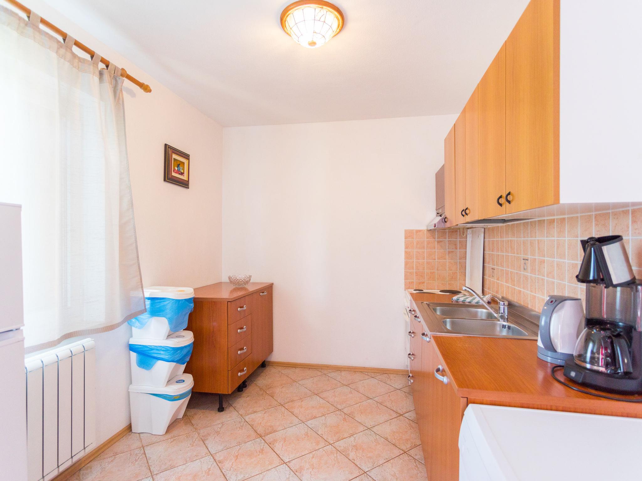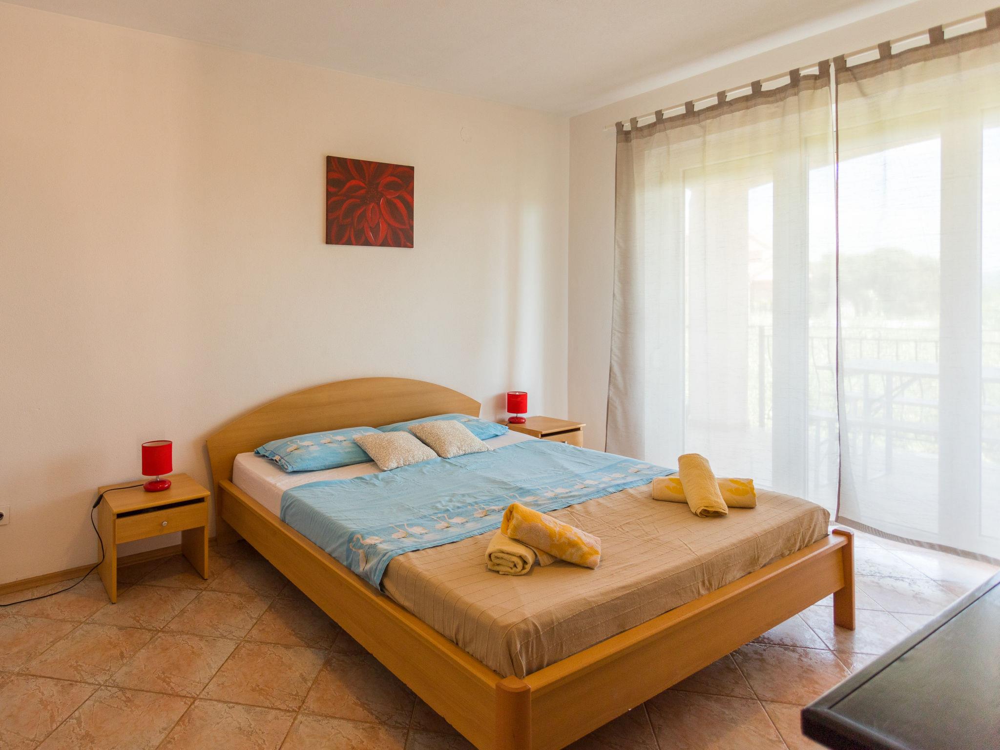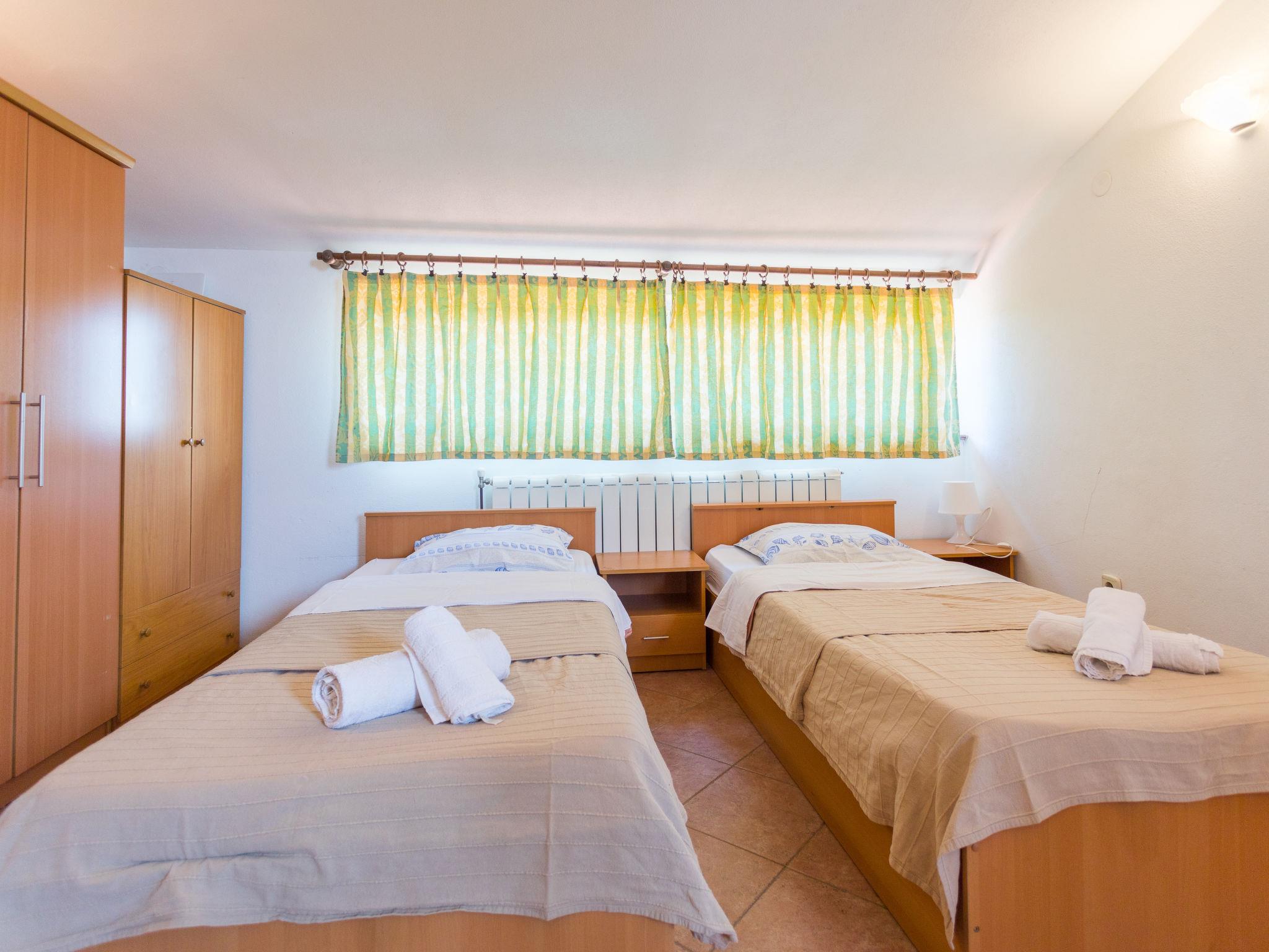 4-room apartment 80 m2 on 2 levels on 1st floor. Living/dining room with satellite TV and air conditioning. Exit to the balcony. 1 room with 1 bed (90 cm, length 200 cm), 1 french bed (160 cm, length 200 cm). Exit to the balcony. Open kitchen (4 hot plates, oven, dishwasher, electric coffee machine). Bath/WC. Upper floor: (spiral staircase) walk-through room with 2 beds (90 cm, length 200 cm). Exit to the terrace. 1 room with 1 bed (90 cm, length 200 cm), 1 french bed (160 cm, length 200 cm), shower/WC. Exit to the terrace. Heating. Balcony 14 m2, terrace roofed. Terrace furniture. View of the sea. Facilities: Internet (WiFi, free). Maximum 1 pet/ dog allowed.