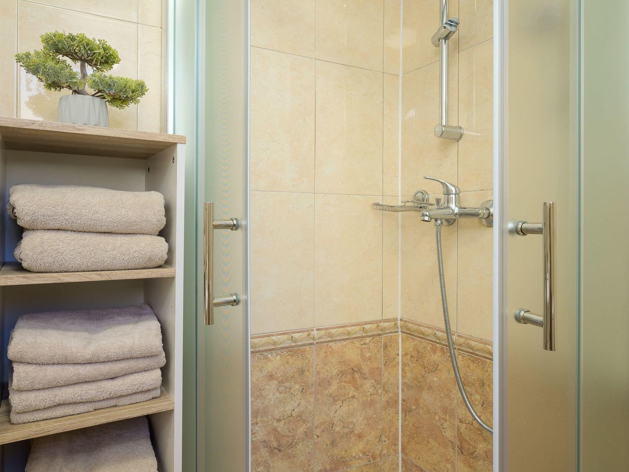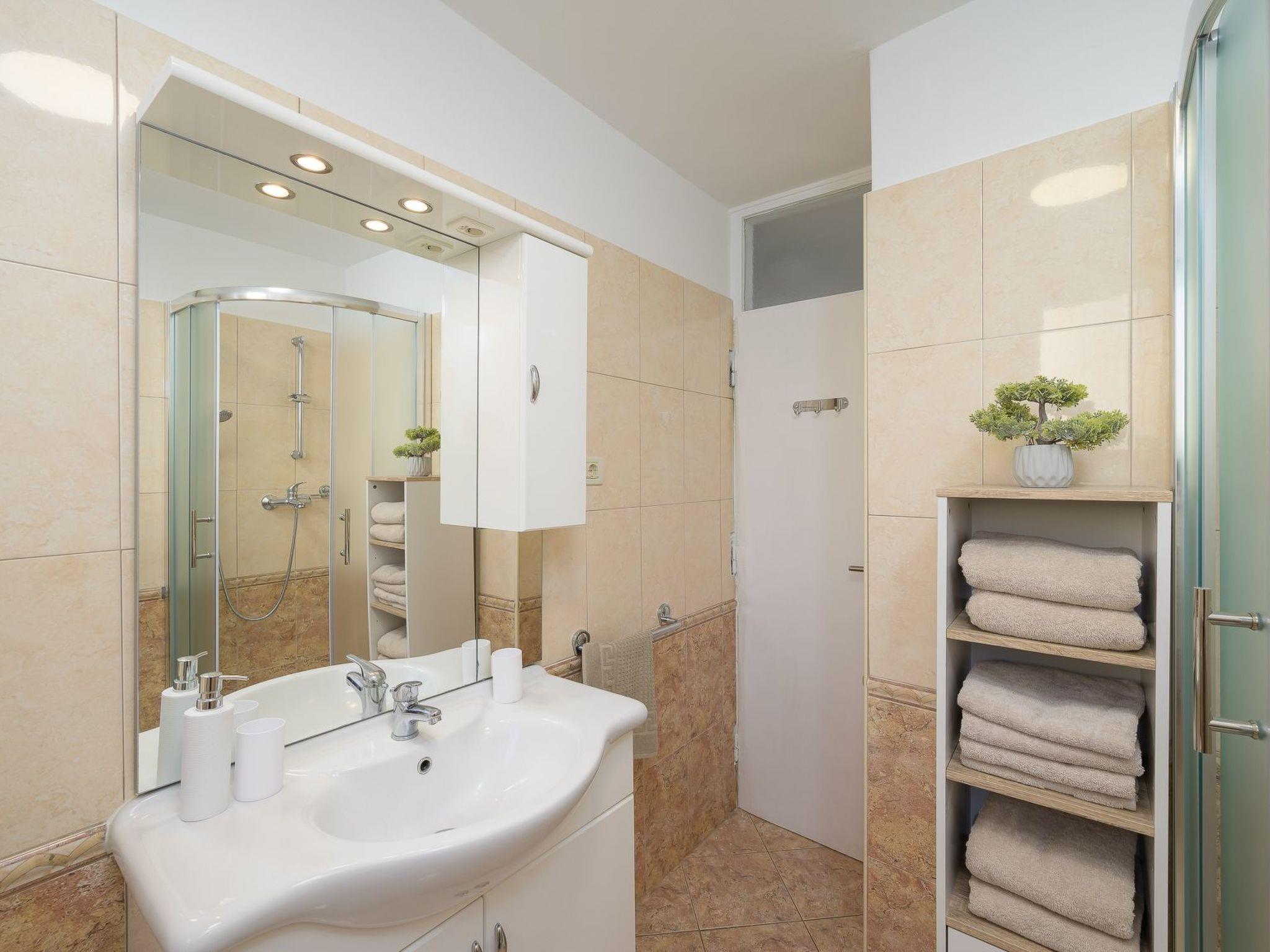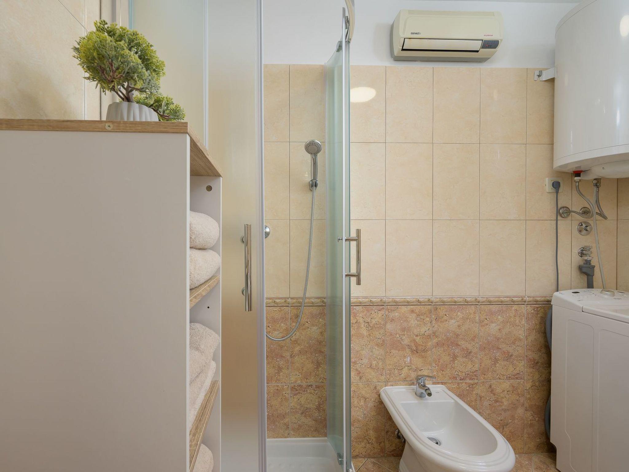 Inside, Apartment Pina presents a cozy yet modern interior. Located on the first floor, it features two inviting bedrooms, a living room adorned with a comfortable sofa, a dining area, a flat-screen TV for your entertainment, and two balconies with views of the garden and the main road. The kitchen is fully equipped with a dishwasher, induction hob, and all necessary utensils for a home-cooked meal. Additionally, there is a bathroom with a shower and a washing machine, rounding out the conveniences of this charming apartment. Towels and bed linen are thoughtfully provided for a comfortable stay.