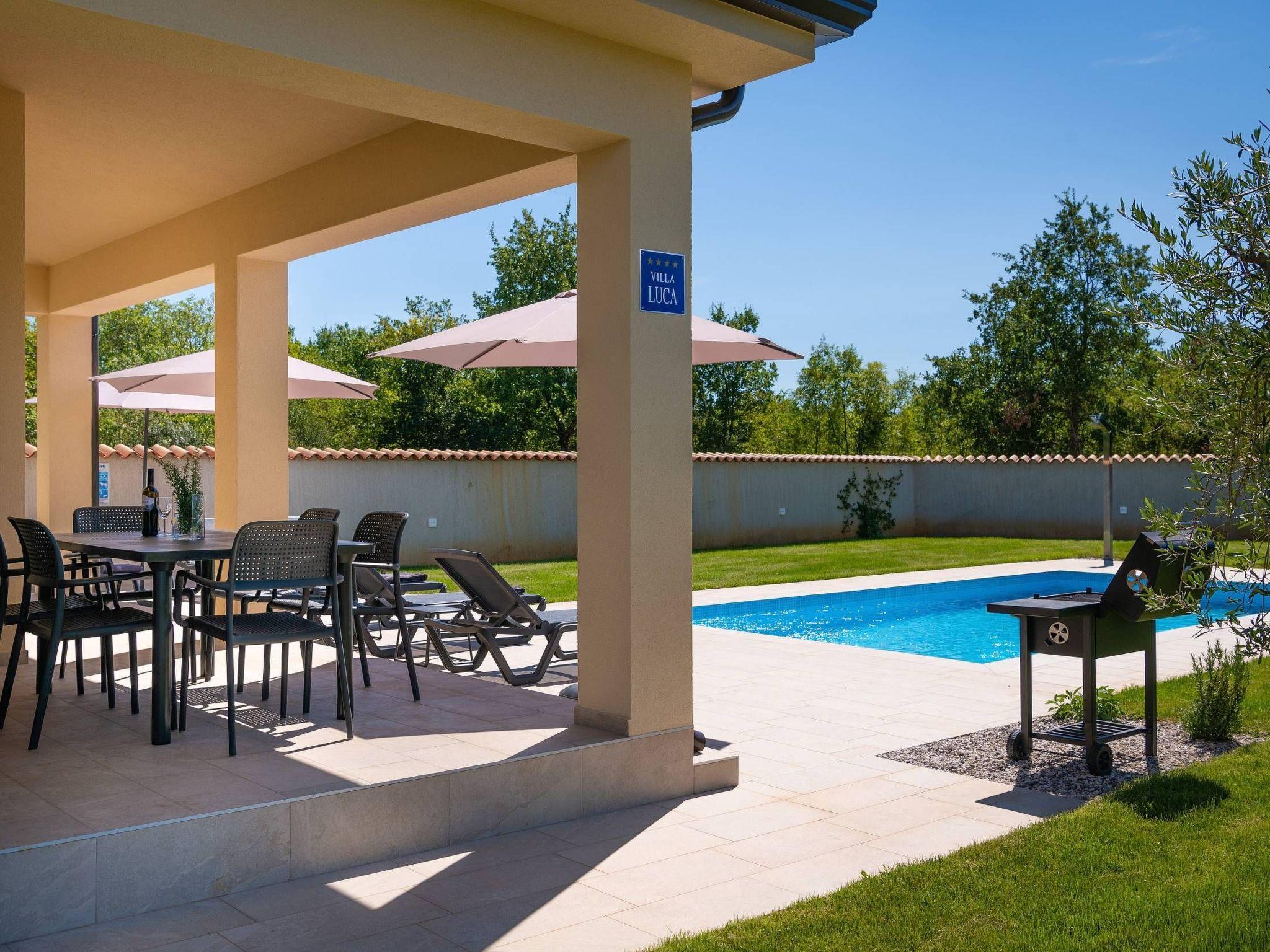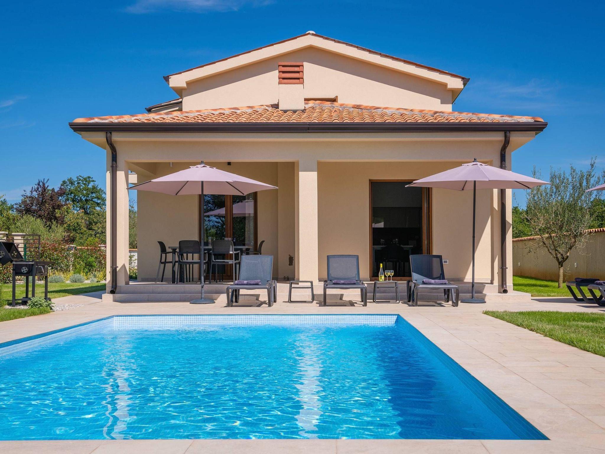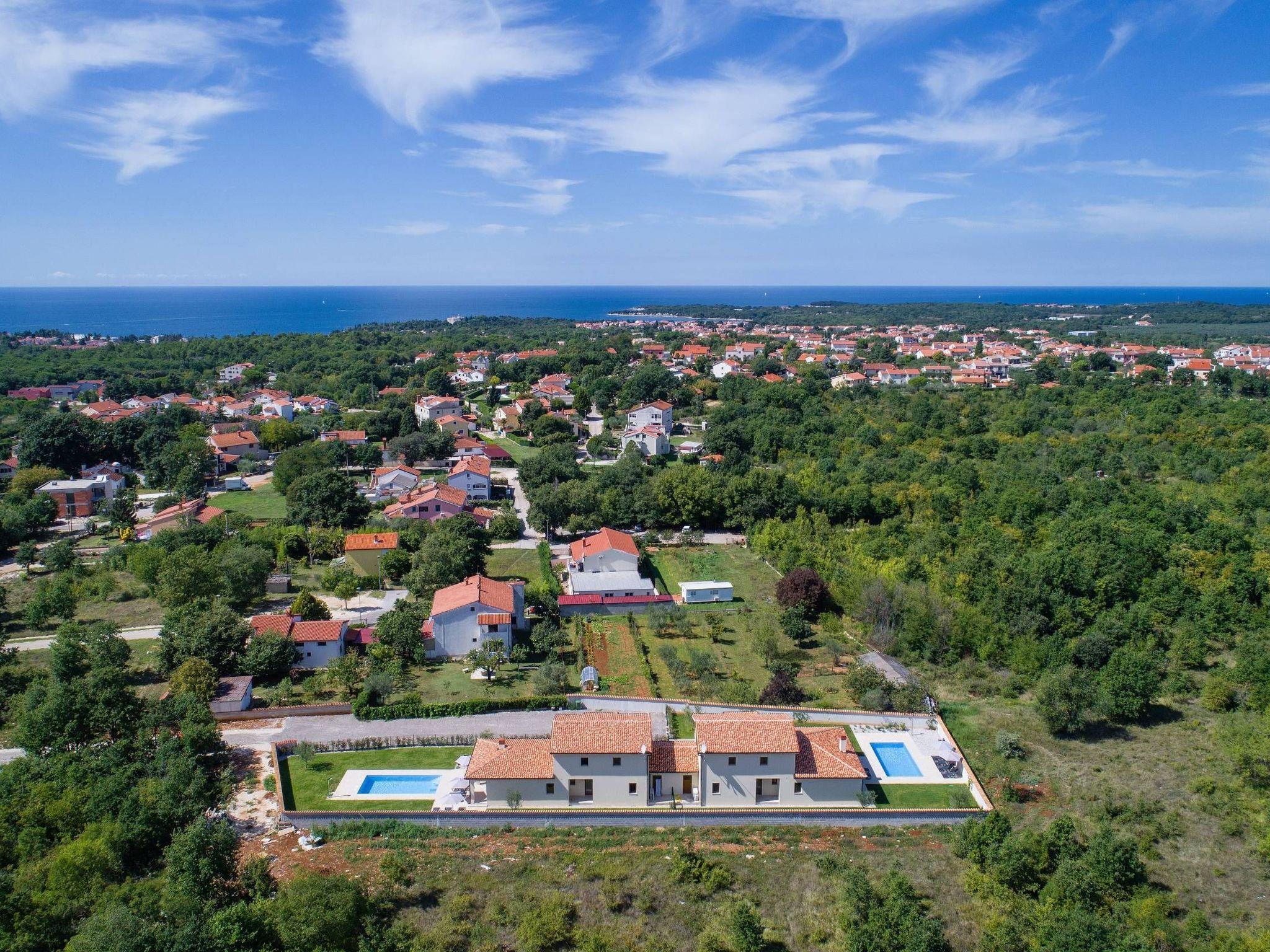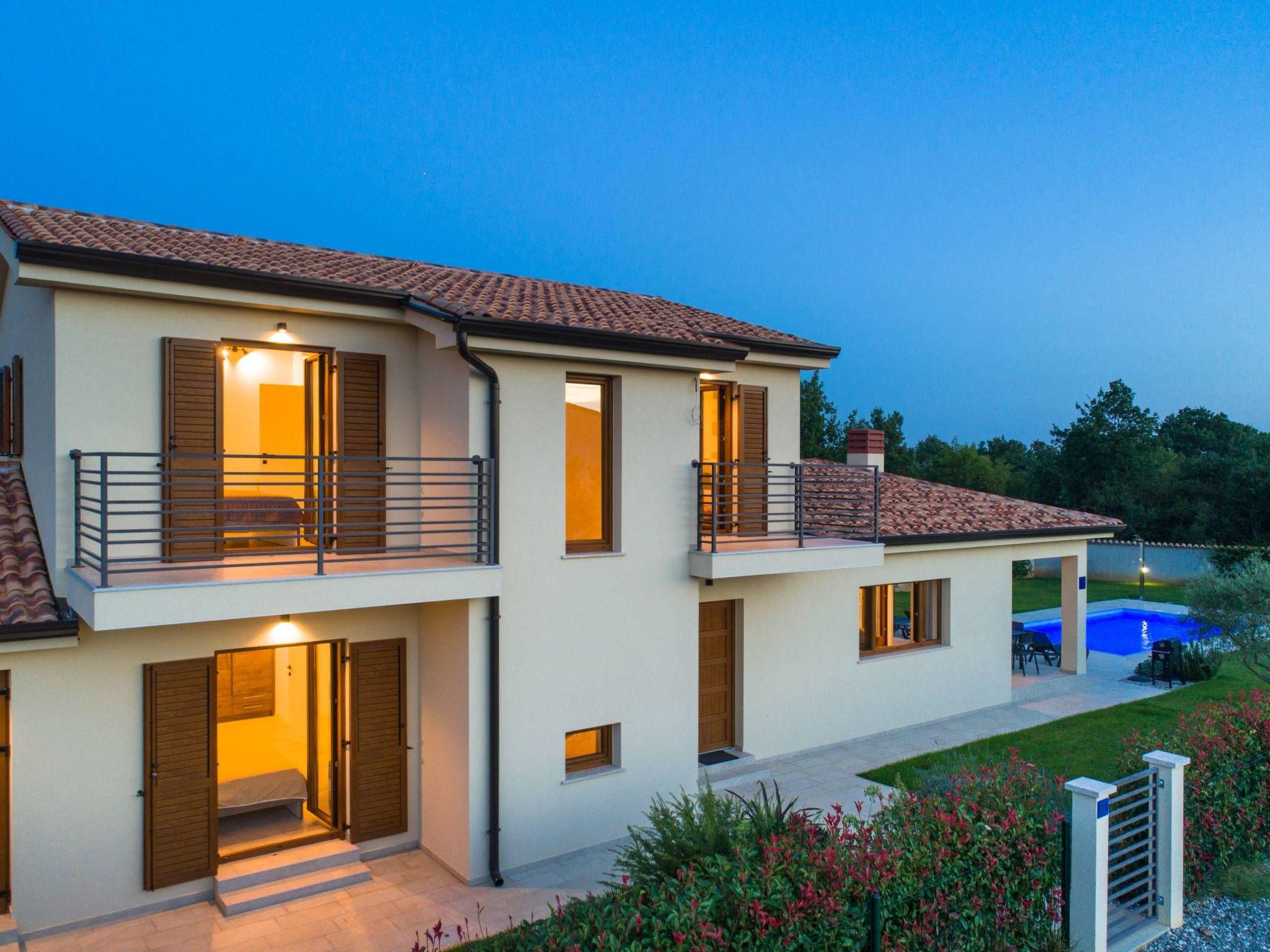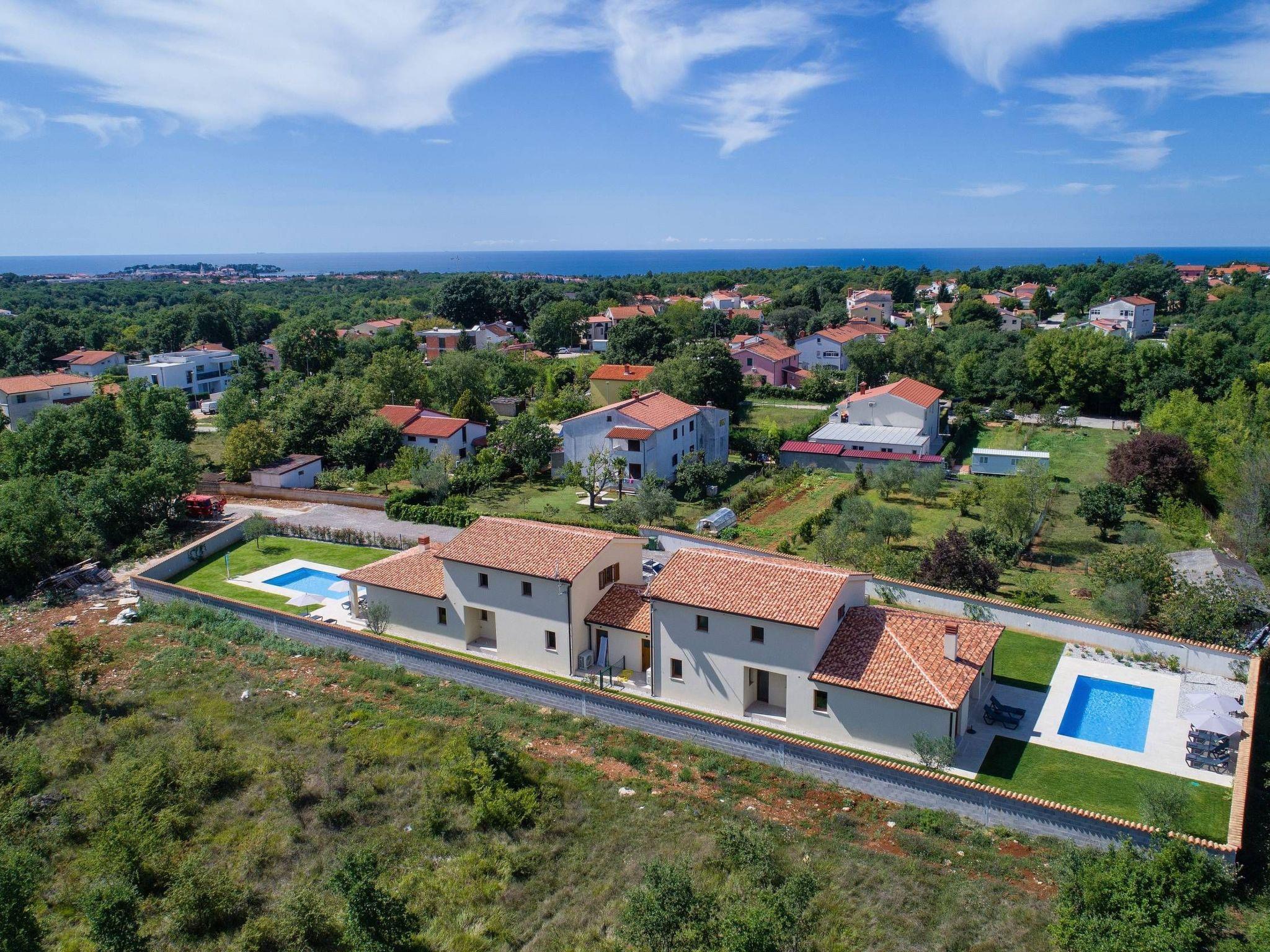 Holiday house "Luca" was newly built in 2020. It is located in Porec, a tourist place in Istria. The house has 192 m2 on two floors. It consists of 3 bedrooms, 3 private bathrooms, toilet, living room and kitchen. There is a living room with a TV and a fully equipped kitchen with 8 seats on the ground floor. One bedroom is located on the ground floor and the other two are on the first floor. Each room has a TV, air conditioning, and a private balcony with a table and chairs.