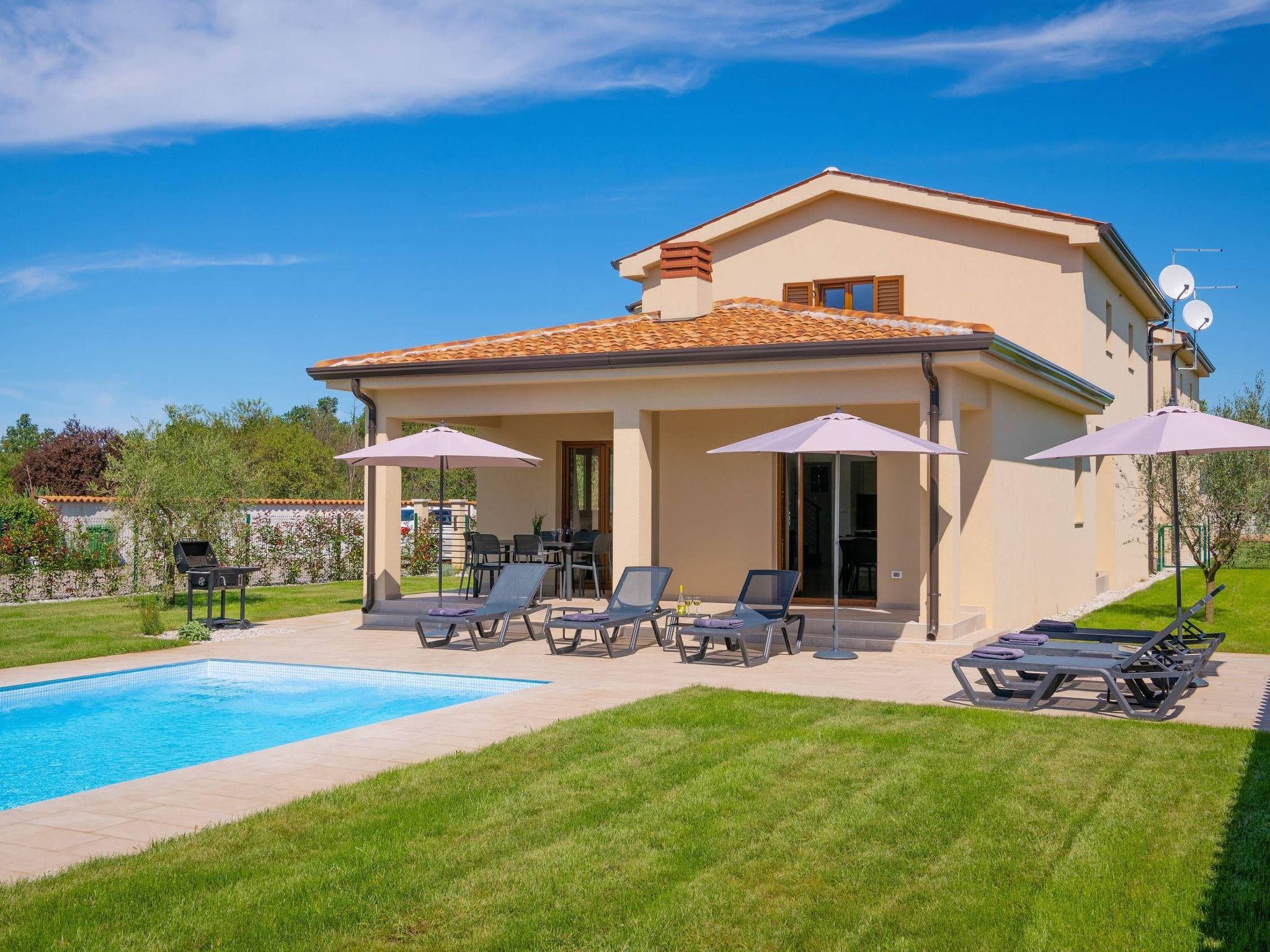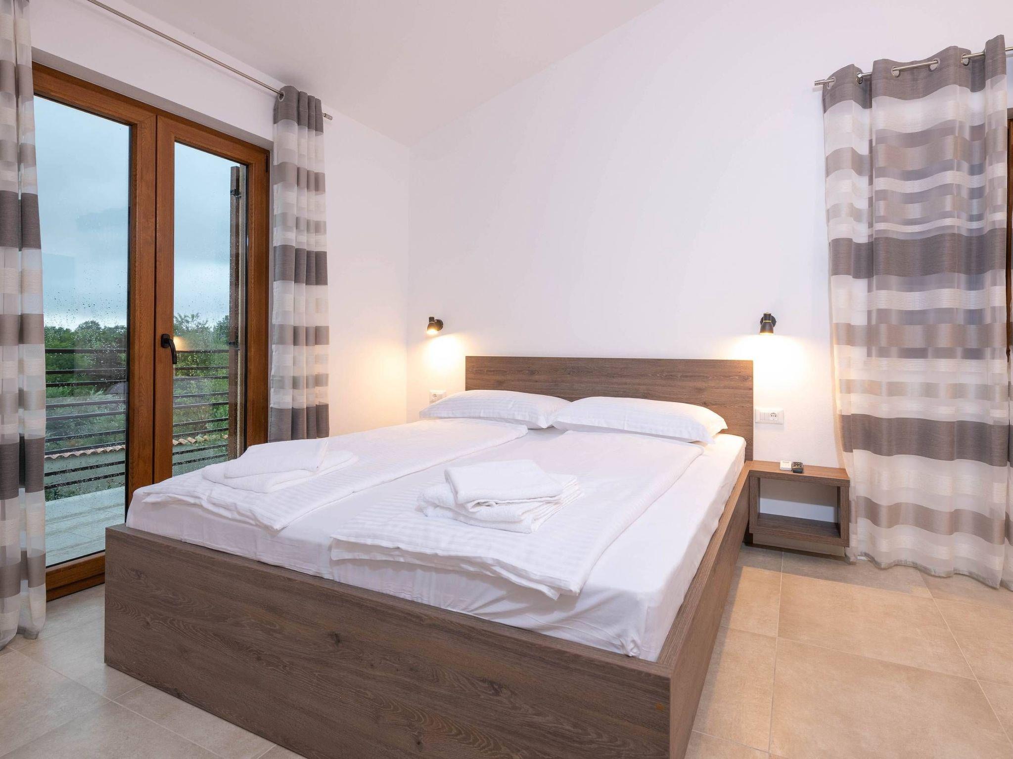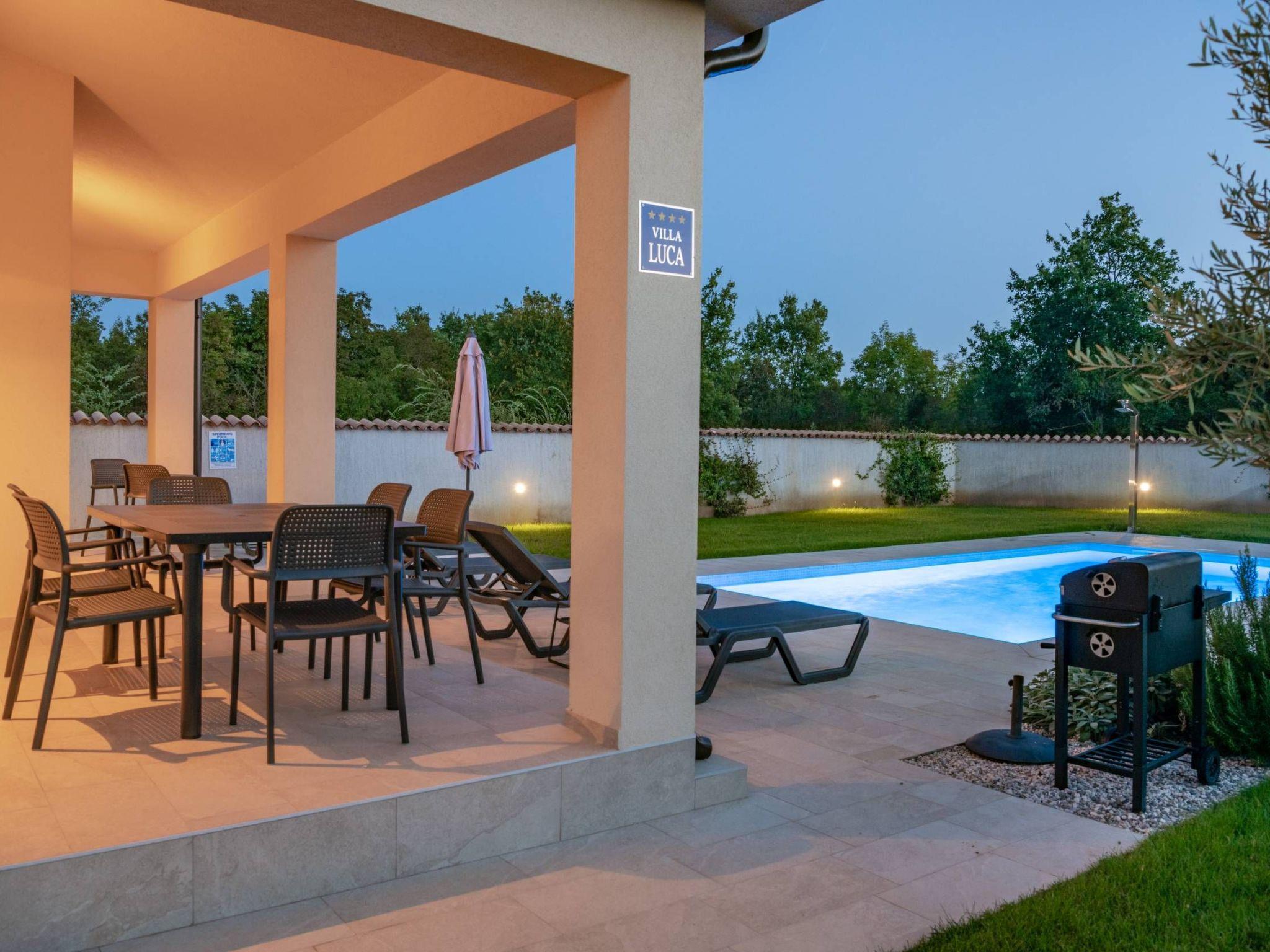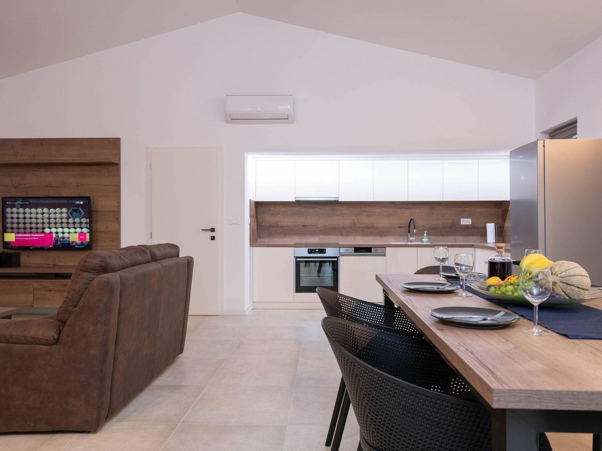 Holiday house "Luca" was newly built in 2020. It is located in Porec, a tourist place in Istria. The house has 192 m2 on two floors. It consists of 3 bedrooms, 3 private bathrooms, toilet, living room and kitchen. There is a living room with a TV and a fully equipped kitchen with 8 seats on the ground floor. One bedroom is located on the ground floor and the other two are on the first floor. Each room has a TV, air conditioning, and a private balcony with a table and chairs.