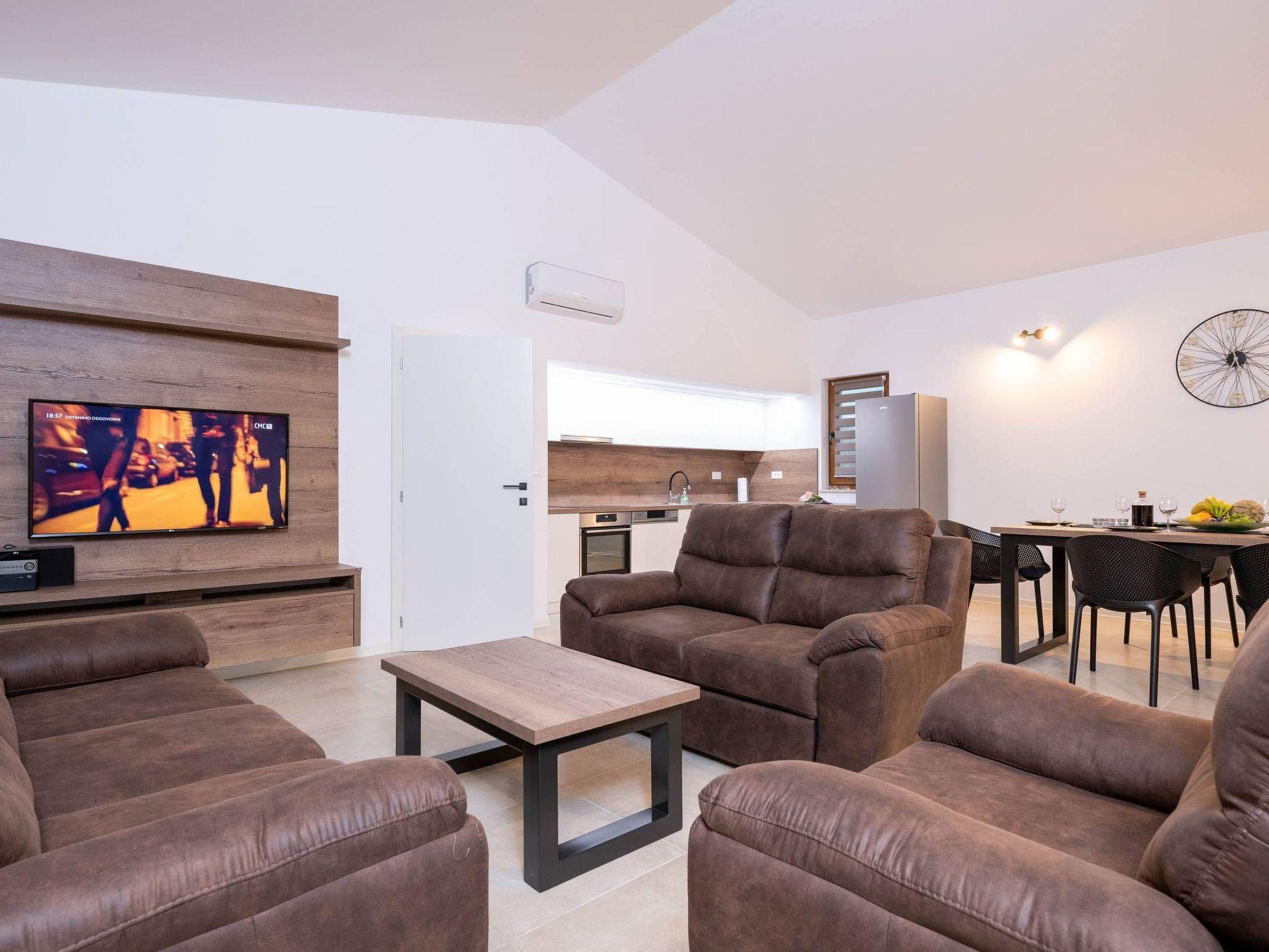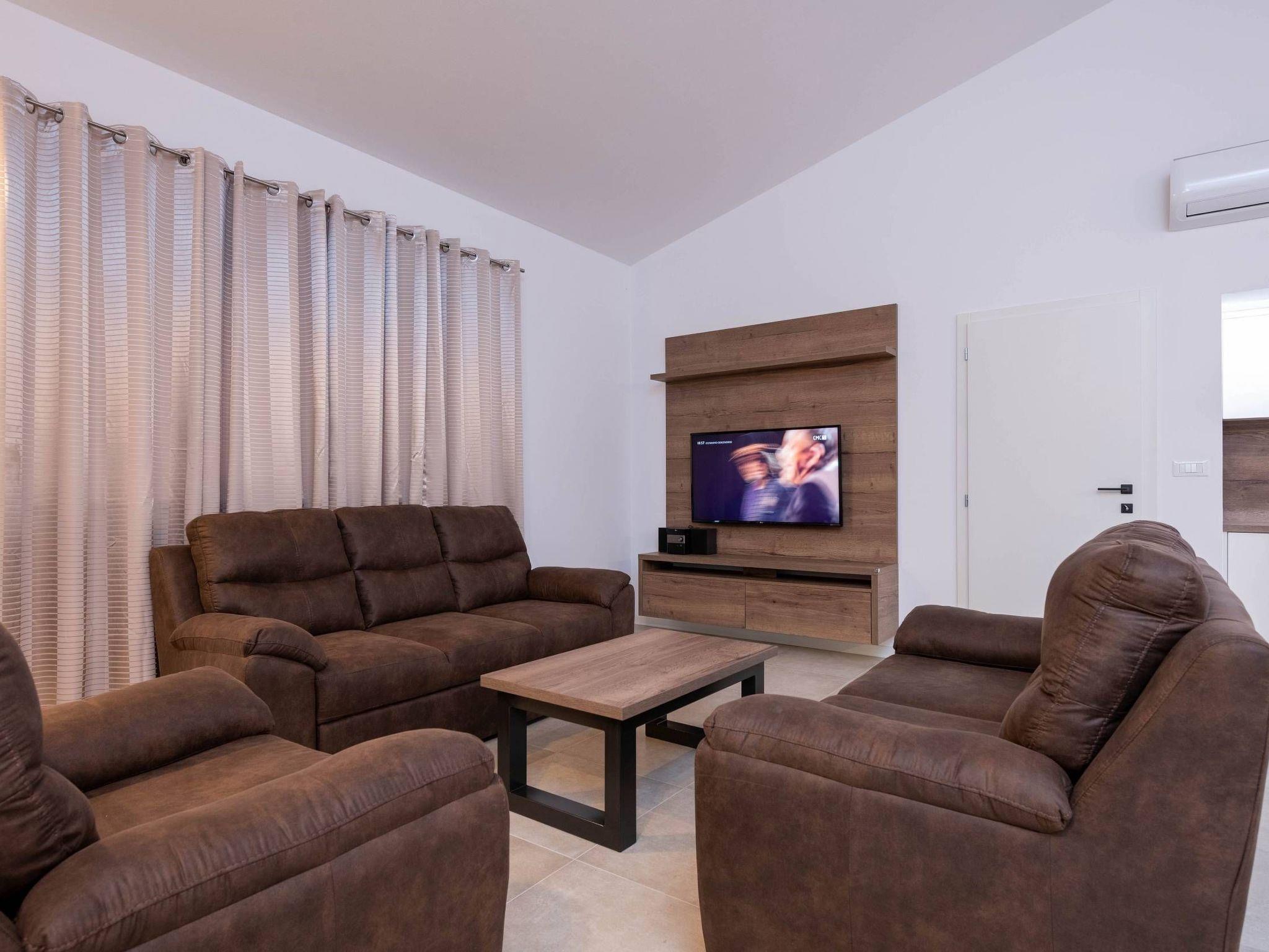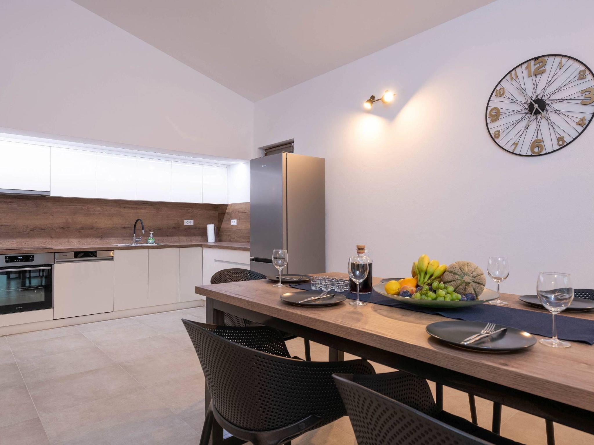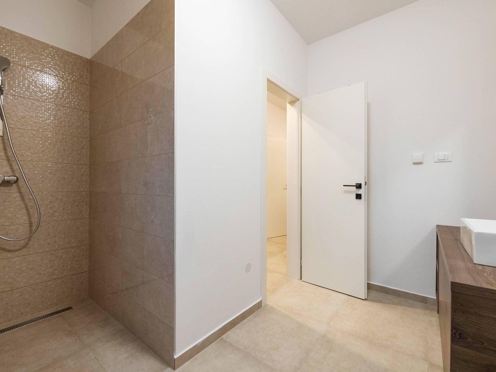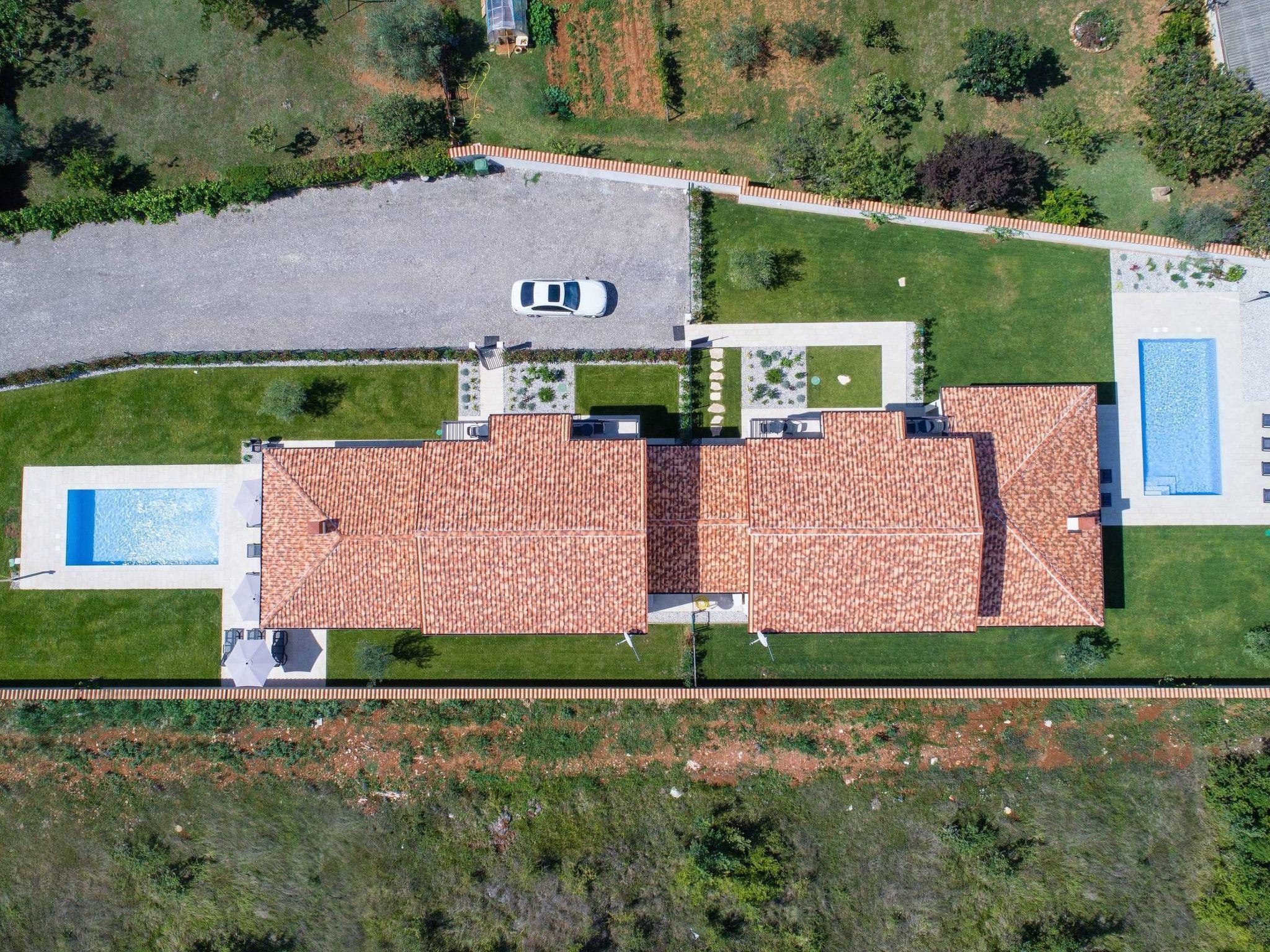 Holiday house "Luca" was newly built in 2020. It is located in Porec, a tourist place in Istria. The house has 192 m2 on two floors. It consists of 3 bedrooms, 3 private bathrooms, toilet, living room and kitchen. There is a living room with a TV and a fully equipped kitchen with 8 seats on the ground floor. One bedroom is located on the ground floor and the other two are on the first floor. Each room has a TV, air conditioning, and a private balcony with a table and chairs.