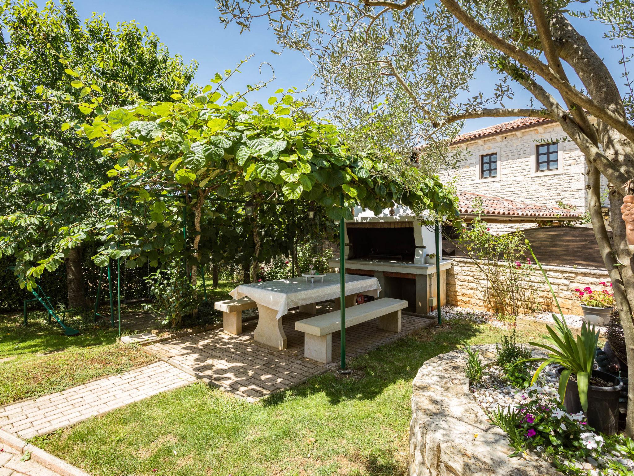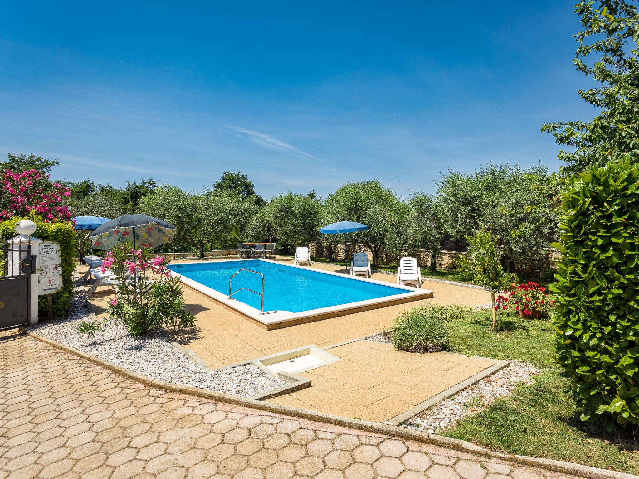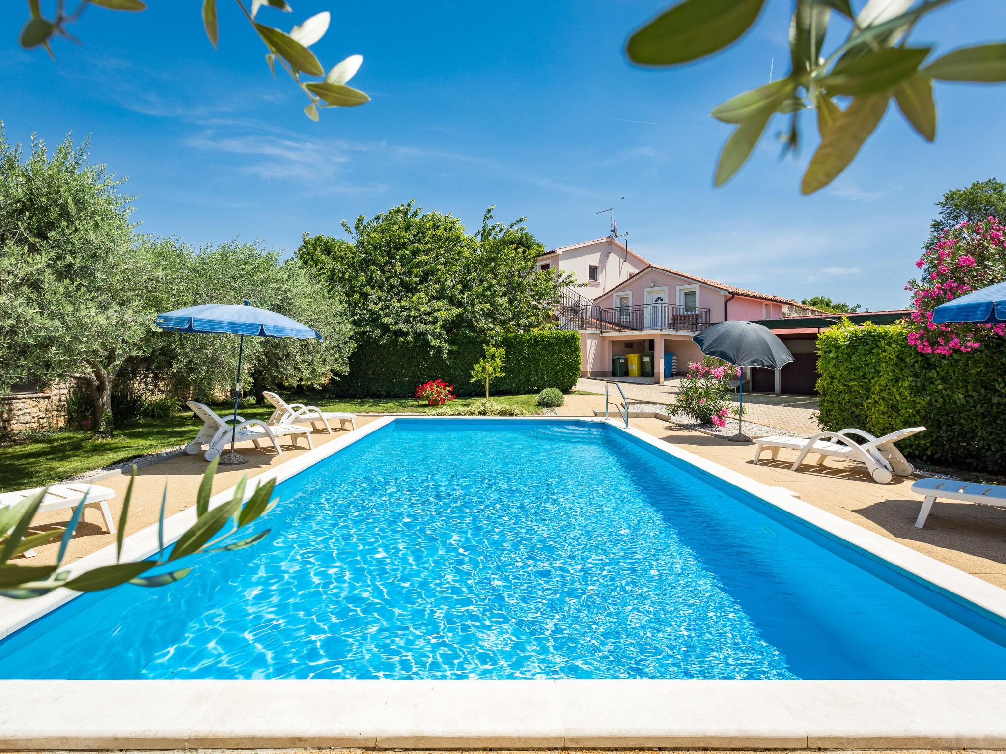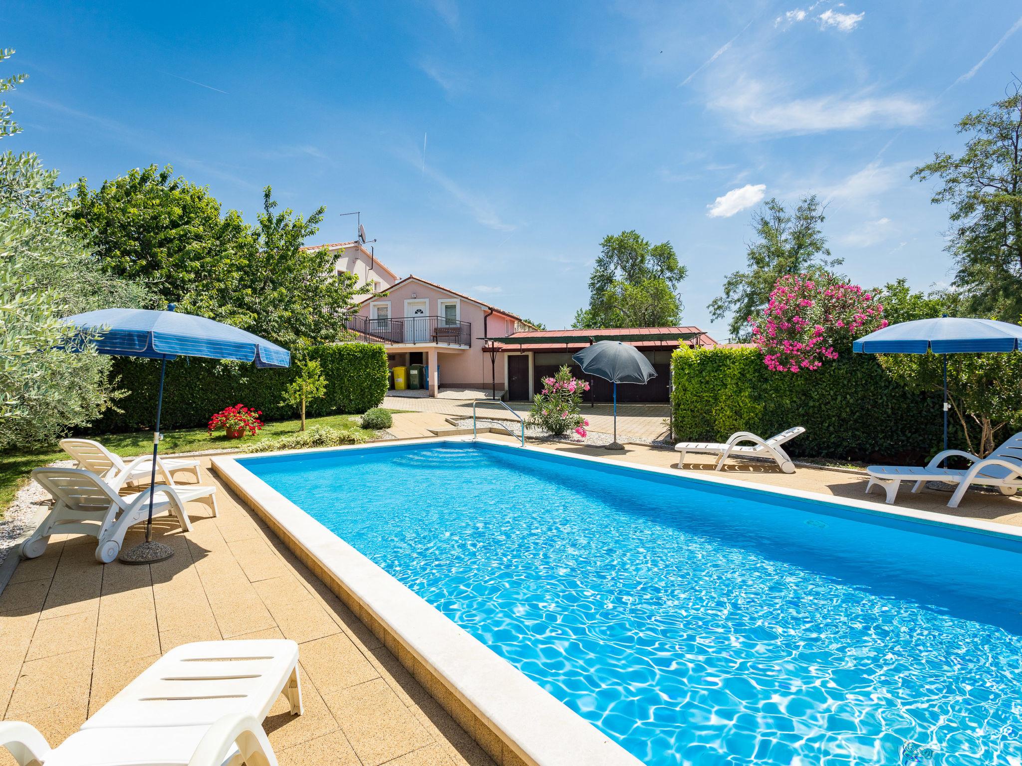 Single-family house "Sandra". In the hamlet Medvidici 2.5 km from the centre of Sveti Lovrec, 11 km from the centre of Porec, 10 km from the centre of Vrsar, 10 km from the sea, in the countryside. Private: property 600 m2, trees, swimming pool angular (45 m2, depth 135 cm, seasonal availability: 01.May. - 01.Oct.) with internal staircase. Terrace, garden furniture, barbecue (swing), pool maintenance by the owner/gardener. In the house: internet access, washing machine. Parking (for 3 cars) on the premises. Shop 2.5 km, bus stop 13 km, railway station 19 km, pebble beach 10 km. Ground floor is closed and not occupied.