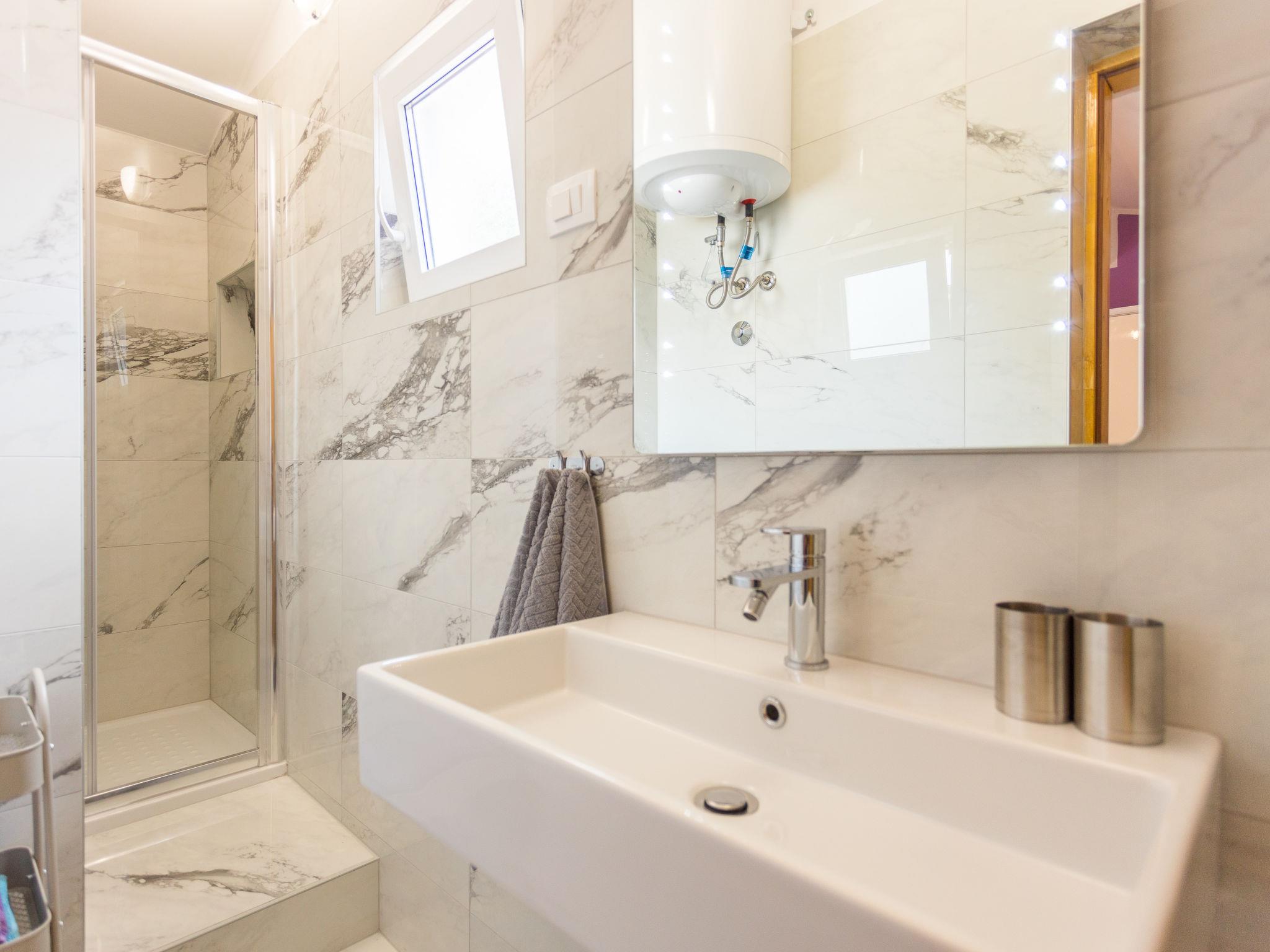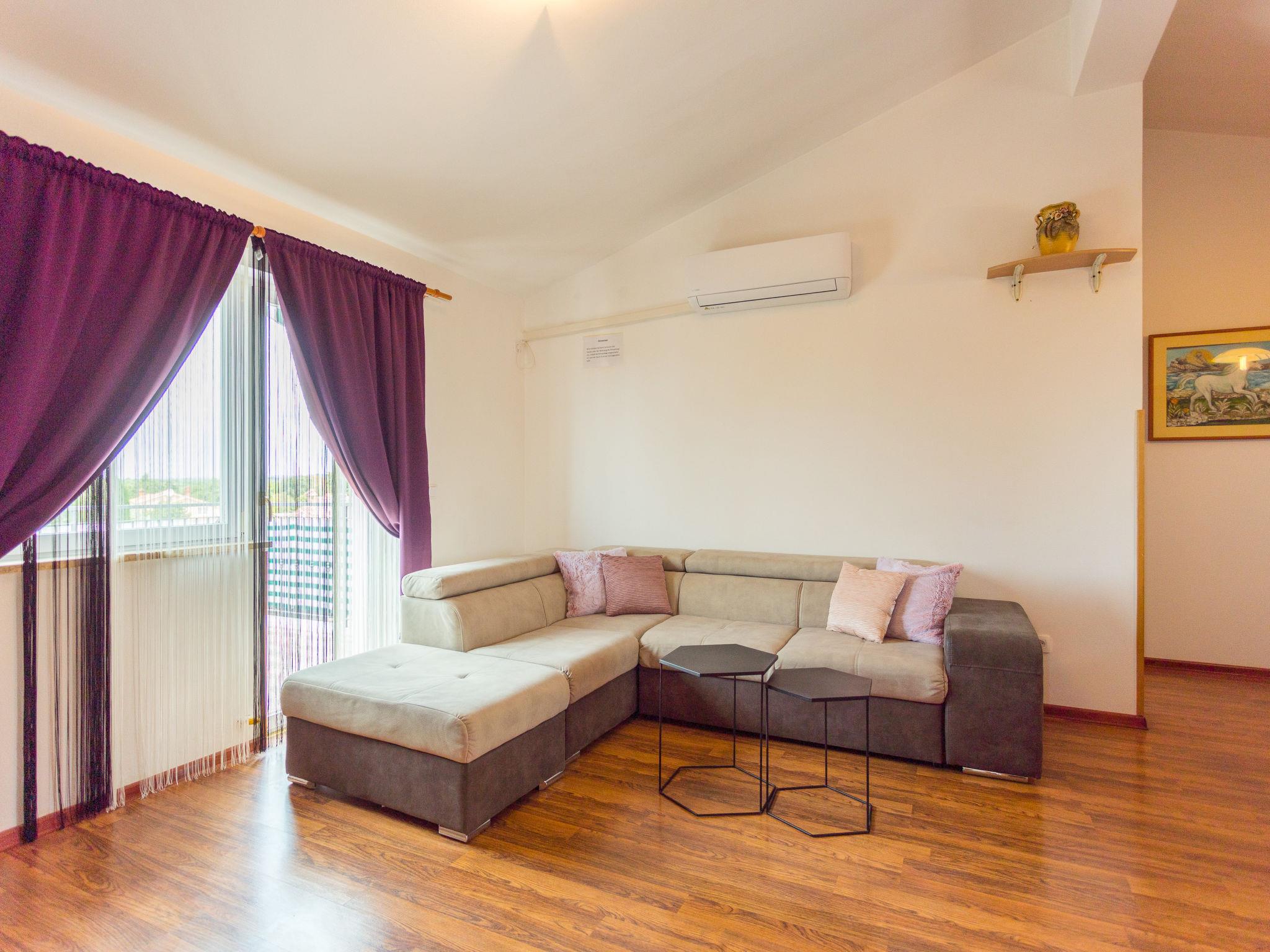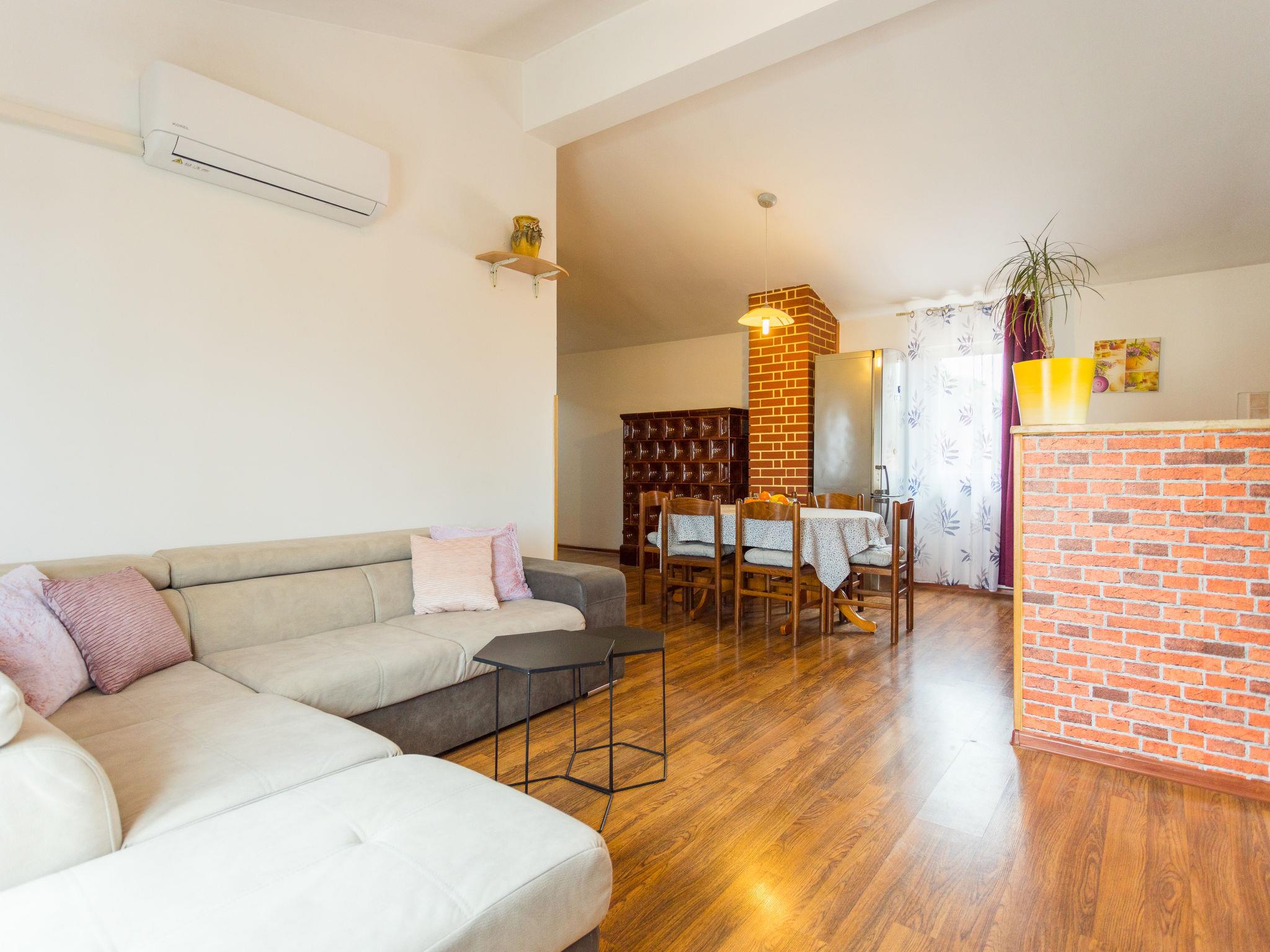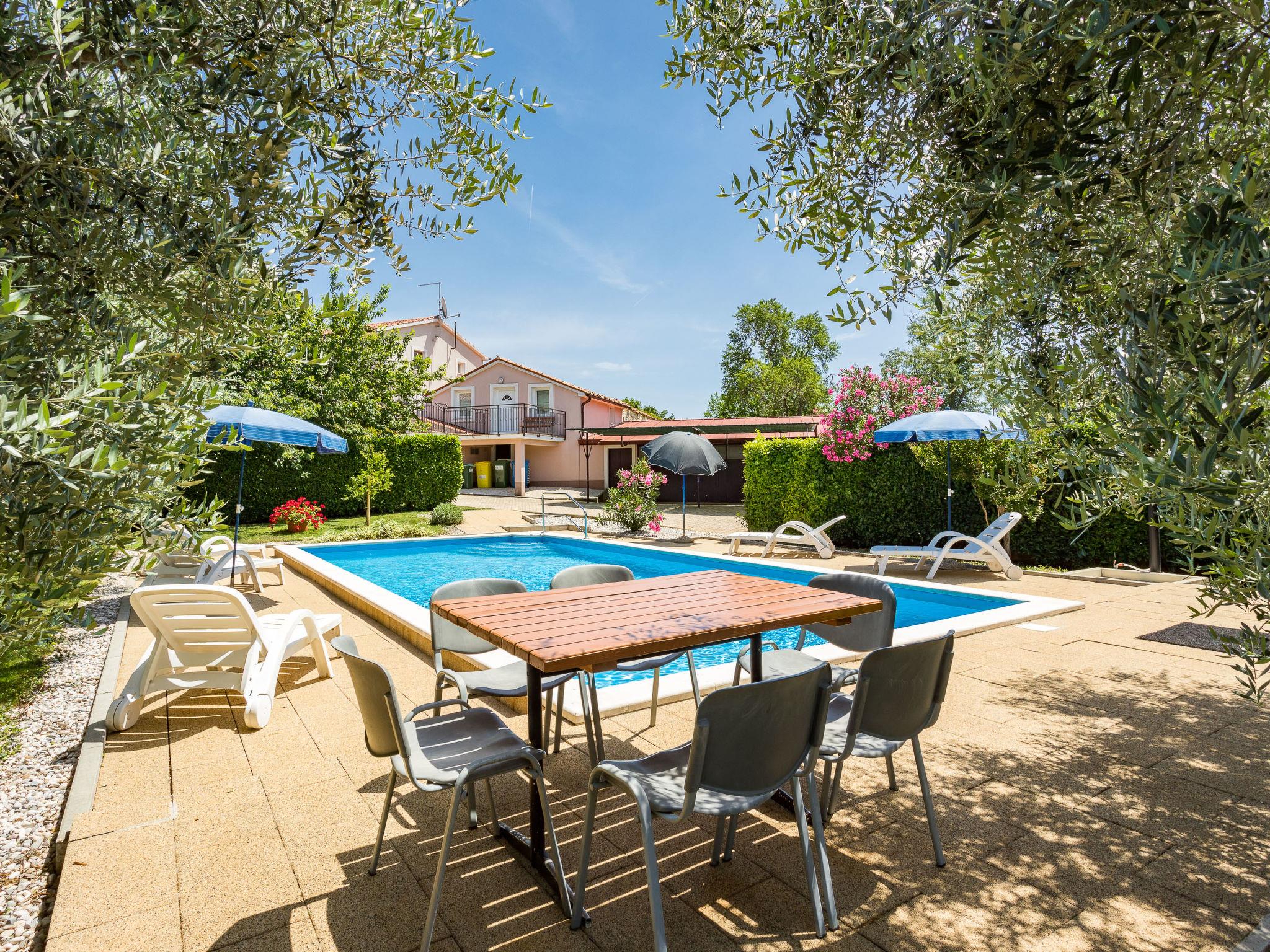 Single-family house "Sandra". In the hamlet Medvidici 2.5 km from the centre of Sveti Lovrec, 11 km from the centre of Porec, 10 km from the centre of Vrsar, 10 km from the sea, in the countryside. Private: property 600 m2, trees, swimming pool angular (45 m2, depth 135 cm, seasonal availability: 01.May. - 01.Oct.) with internal staircase. Terrace, garden furniture, barbecue (swing), pool maintenance by the owner/gardener. In the house: internet access, washing machine. Parking (for 3 cars) on the premises. Shop 2.5 km, bus stop 13 km, railway station 19 km, pebble beach 10 km. Ground floor is closed and not occupied.