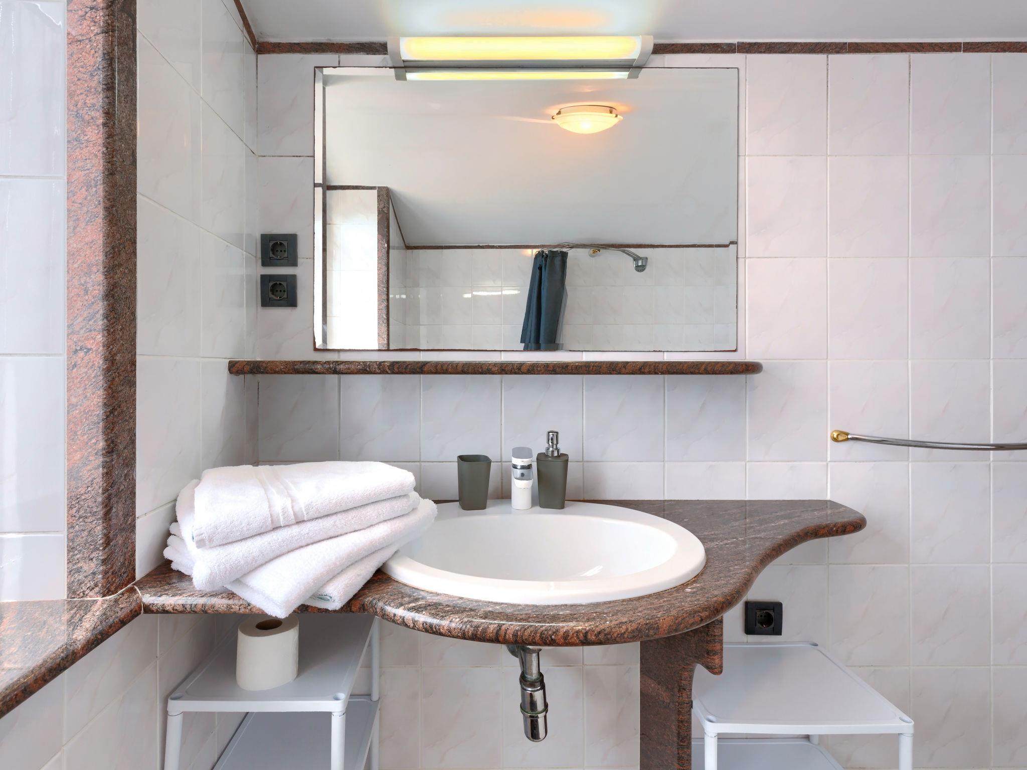 5-room terraced house 122 m2 on 3 levels. Living/dining room with kitchen corner, satellite TV and air conditioning. Exit to the terrace. Kitchen (4 hot plates, oven, dishwasher, toaster, kettle, microwave, electric coffee machine) with dining table and satellite TV. Exit to the terrace. Shower/WC. Upper floor: entrance hall with air conditioning. Living room with satellite TV. Exit to the balcony. (steep stair), 1 room with 1 bed, 1 double bed and air conditioning. Exit to the balcony. Top floor: 1 room with sloping ceilings with 1 bed (80 cm, length 200 cm), 1 double bed and air conditioning. 1 room with sloping ceilings with 2 beds. Bath/WC with corner bath. Forced-air heating. 2 balconies, terrace 30 m2. Terrace furniture. Facilities: washing machine, baby cot (extra). Internet (WiFi, free). Please note: non-smoking house. Maximum 1 pet/ dog allowed. One house with kitchen on the ground floor, living room on the first floor and 2 bedrooms on the top floor. The other house with living/dining area and open kitchen on the ground floor and 2 bedrooms on the first floor. Low placed window in one bedrooom on the top floor.
