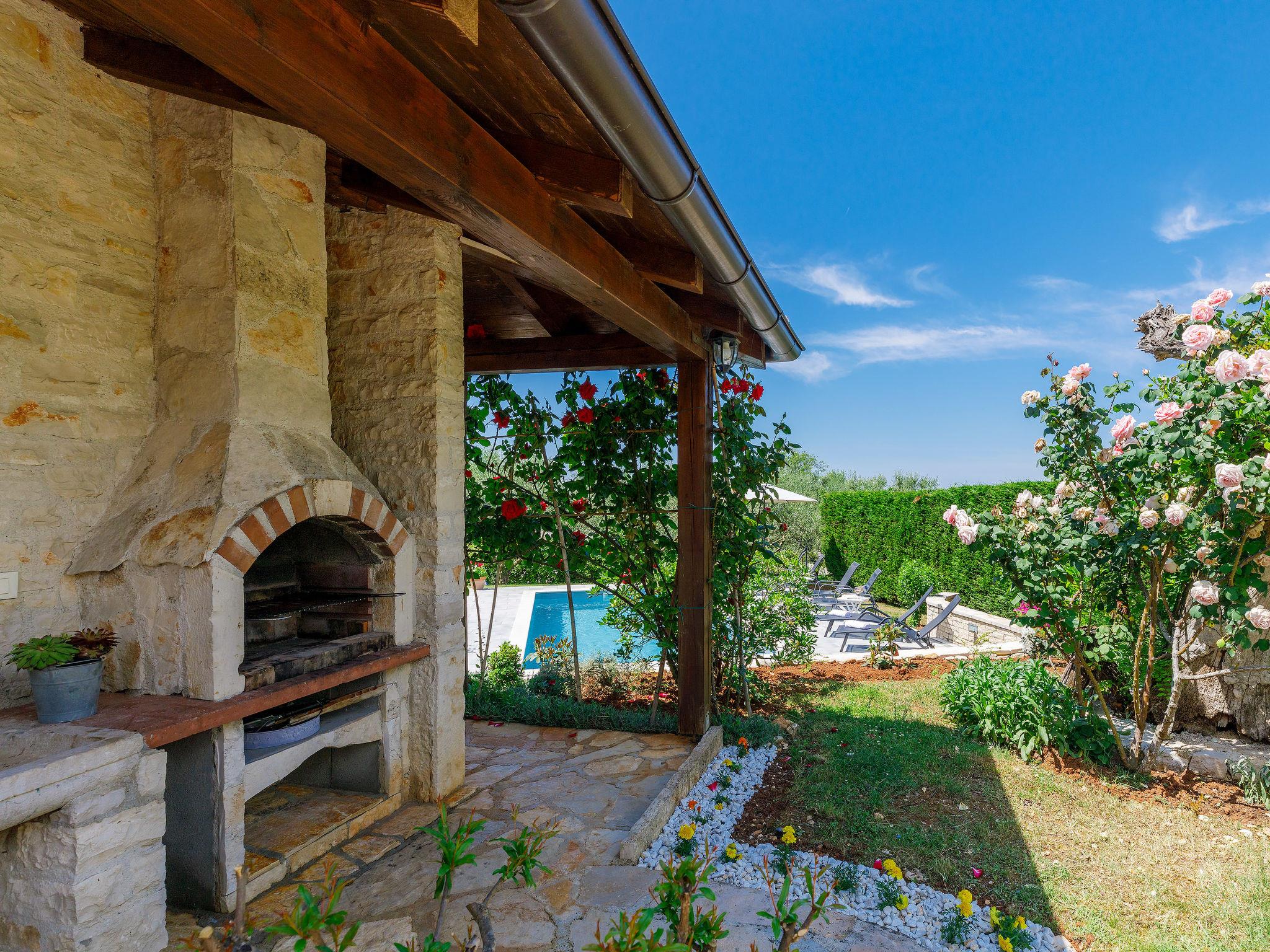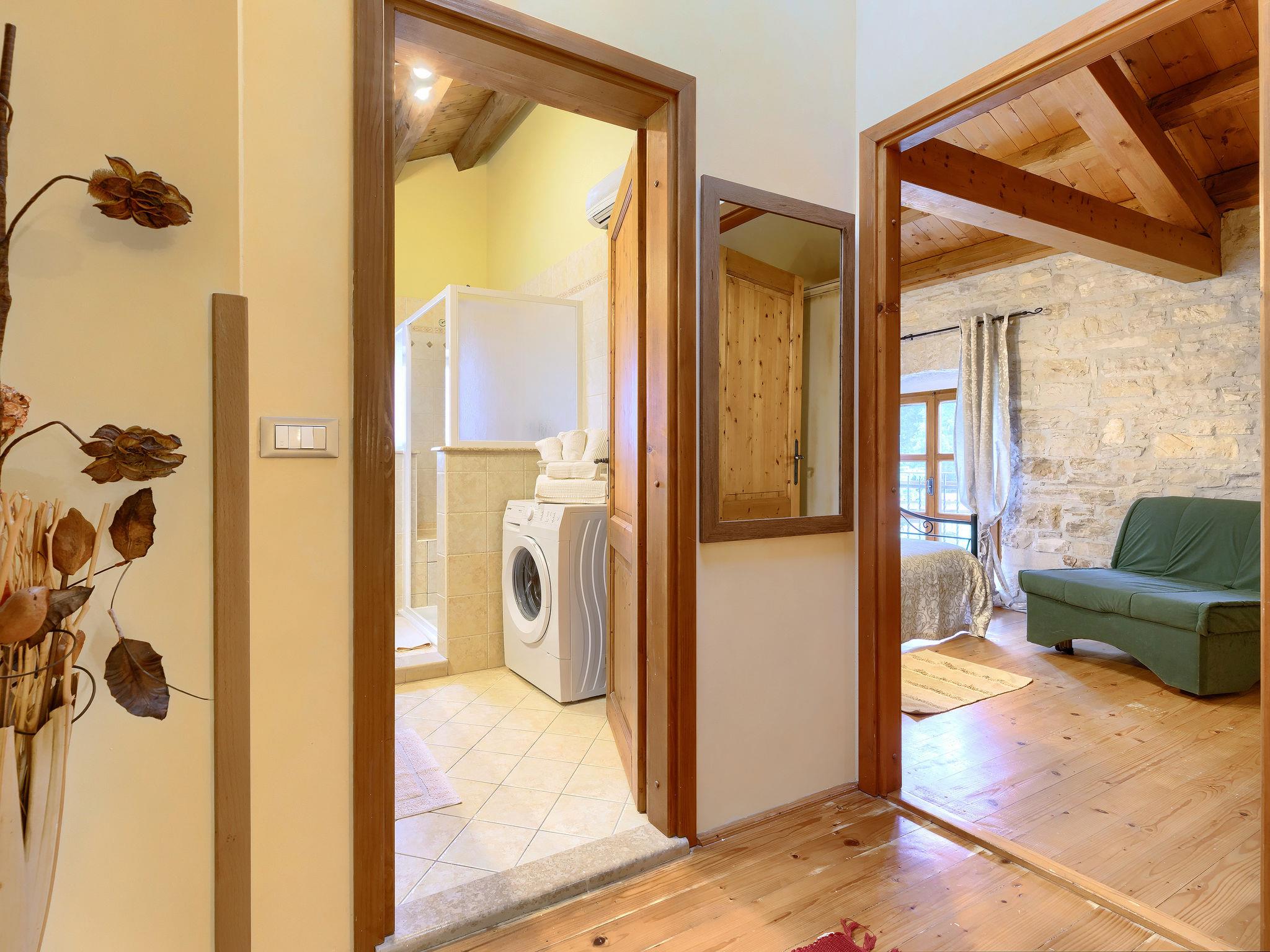 Semi-detached house "Villa Dina", 2 storeys. In the hamlet Medvidici 2.5 km from the centre of Sveti Lovrec, 13 km from the centre of Porec, 8 km from the sea. Private: property 500 m2, lawn, swimming pool angular (6 x 4 m, depth 150 cm, seasonal availability: 01.May. - 02.Oct.) with internal staircase. Outdoor shower, terrace (25 m2), garden furniture, barbecue. In the house: internet access, washing machine. Parking (for 3 cars) on the premises. Shop 2.5 km, restaurant 5 km, bus stop 5.6 km, pebble beach 13 km. The owner does not accept any youth groups. Possibility of buying autochthonous food products (on request, extra).