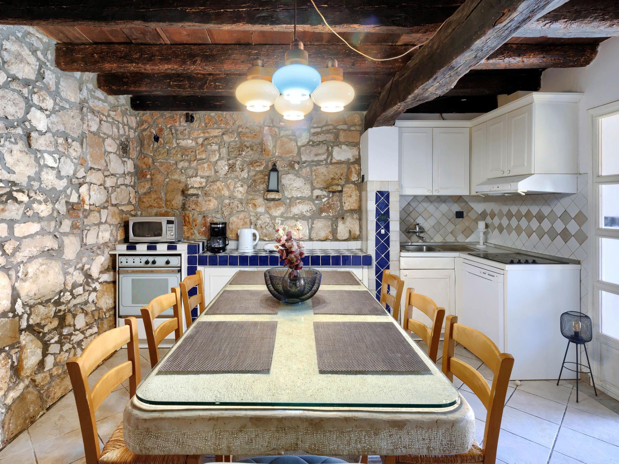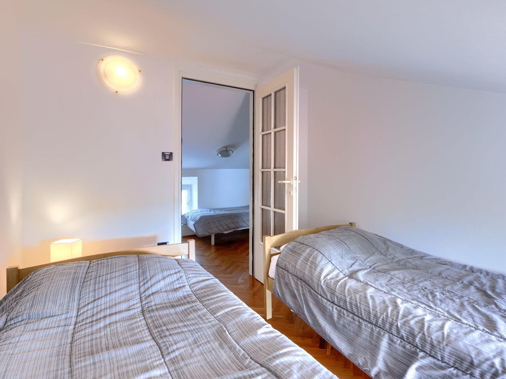 3-room terraced house 80 m2 on 3 levels. Kitchen (4 hot plates, oven, dishwasher, toaster, kettle, microwave, electric coffee machine) with dining table, satellite TV. Exit to the terrace. Upper floor: entrance hall with air conditioning. Living room with satellite TV. Exit to the balcony. Top floor: 1 room with sloping ceilings with 1 bed (80 cm, length 200 cm), 1 double bed and air conditioning. 1 room with sloping ceilings with 2 beds. Bath/WC with corner bath. Forced-air heating. Balcony. Facilities: washing machine. Internet (WiFi, free). Please note: non-smoking house. Maximum 1 pet/ dog allowed. Low placed window in one bedrooom on the top floor.