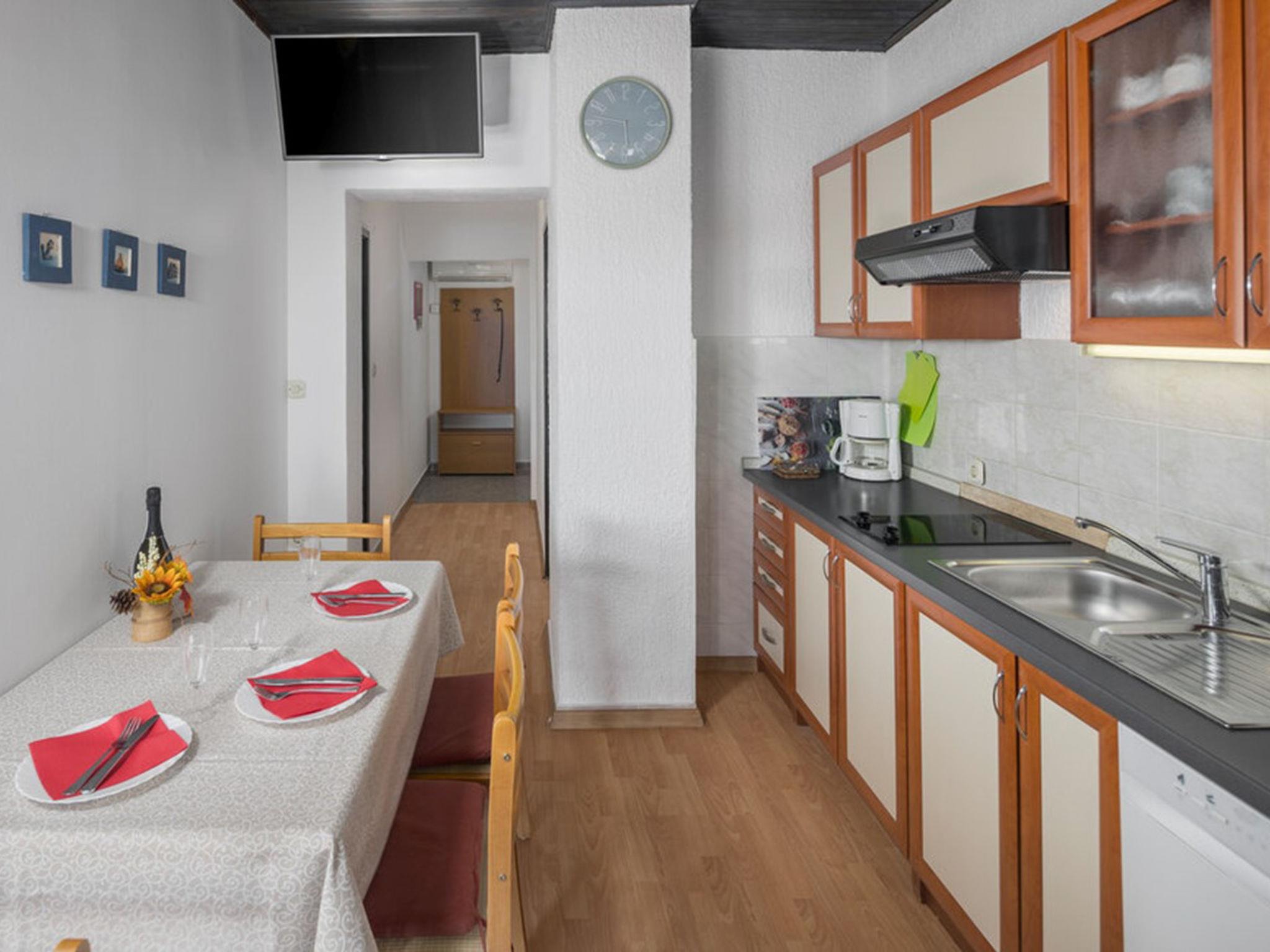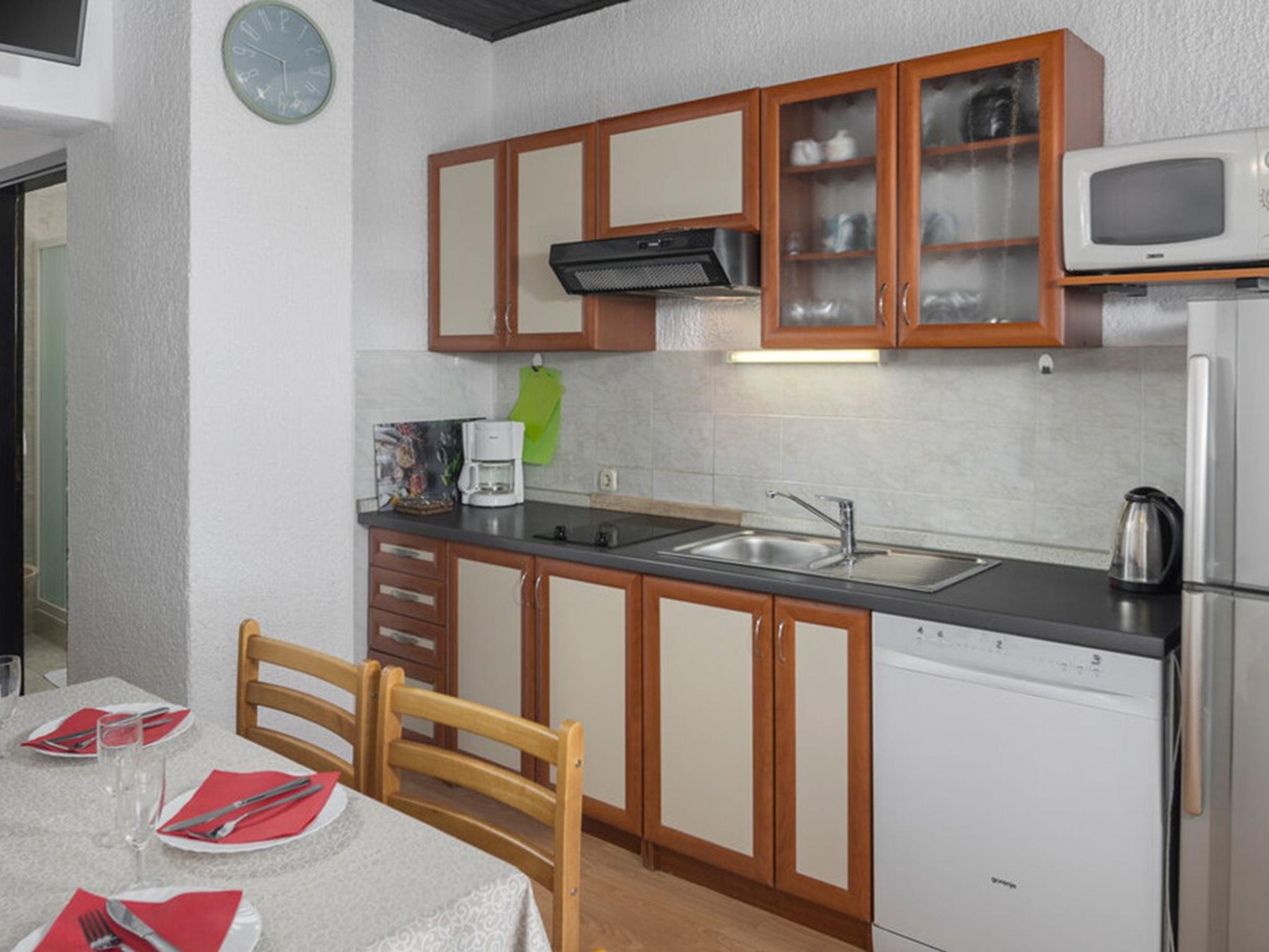 "Leko", 3-room apartment 55 m2 on 1st floor. Comfortable furnishings: living/dining room with satellite TV. Exit to the balcony. Entrance hall with air conditioning. 1 room with 1 double bed (2 x 80 cm, length 200 cm). 1 room with 1 bed (80 cm, length 200 cm). Open kitchen (dishwasher, 2 ceramic glass hob hotplates, microwave, freezer, electric coffee machine). Shower/bidet/WC. Air-conditioning (extra). Balcony 17 m2. Balcony furniture. Facilities: Internet (WiFi, extra). Please note: non-smoking house. Private entrance.