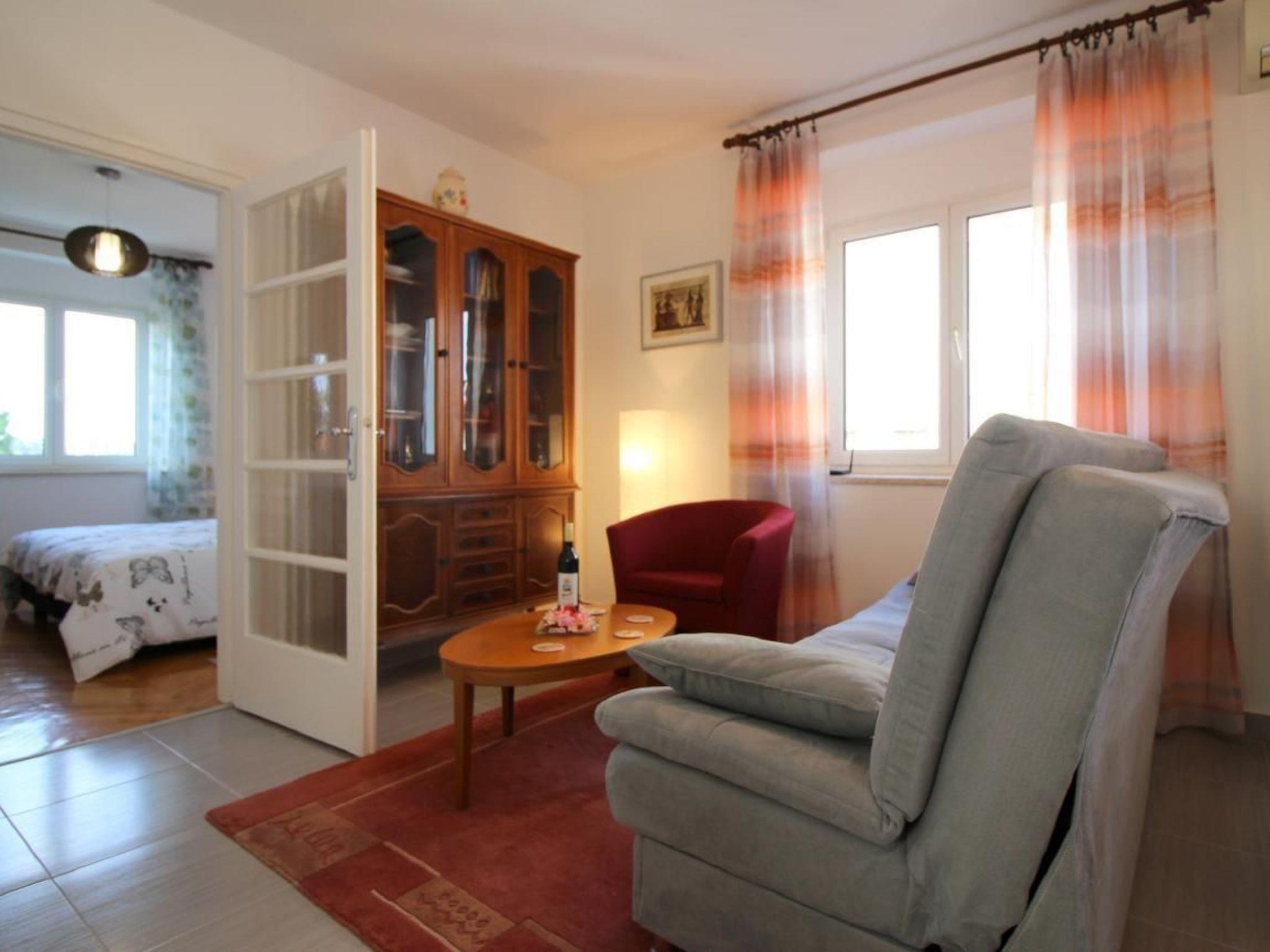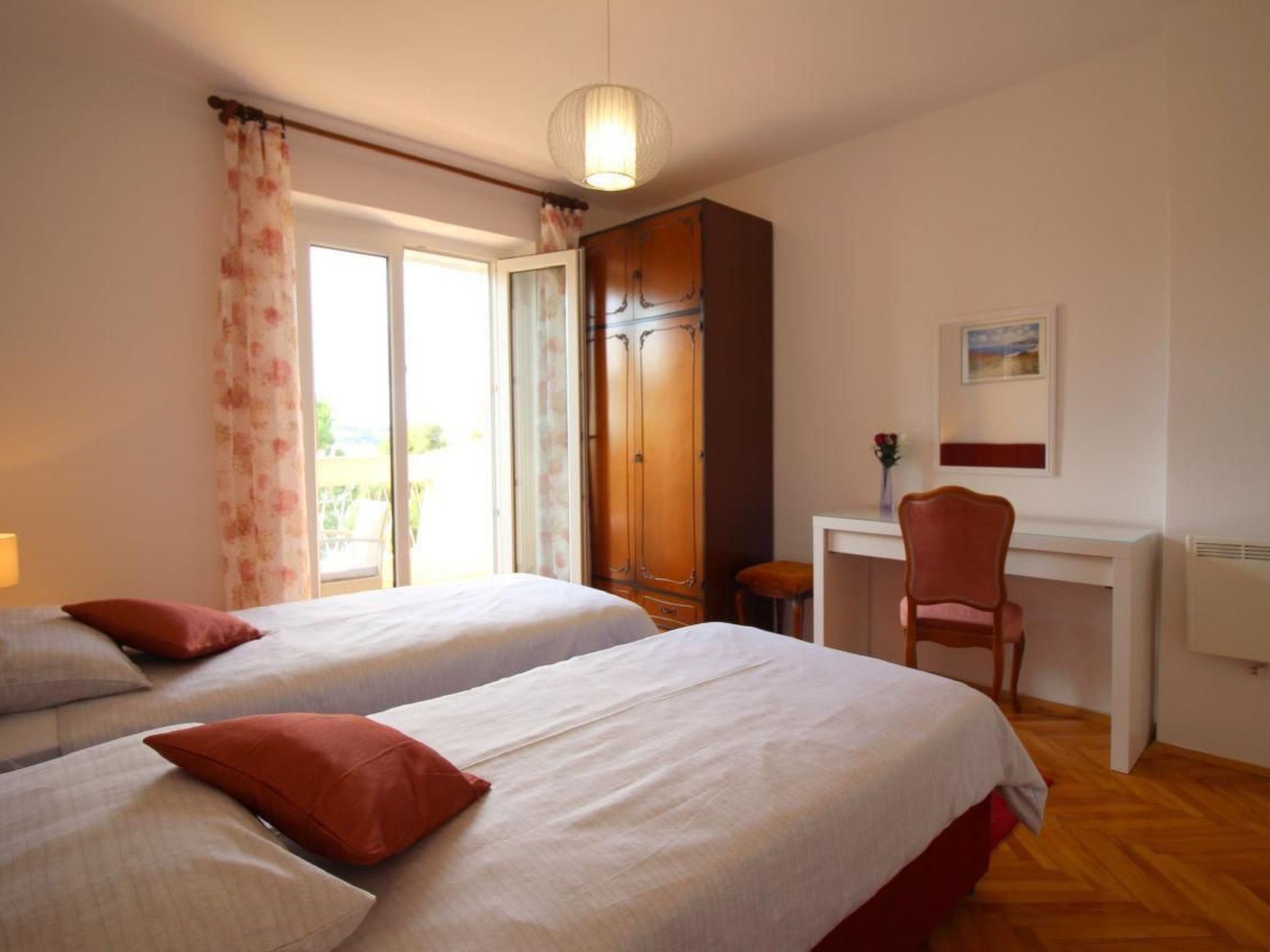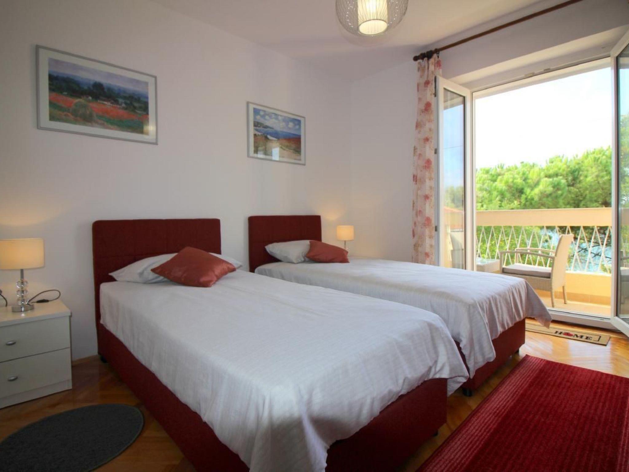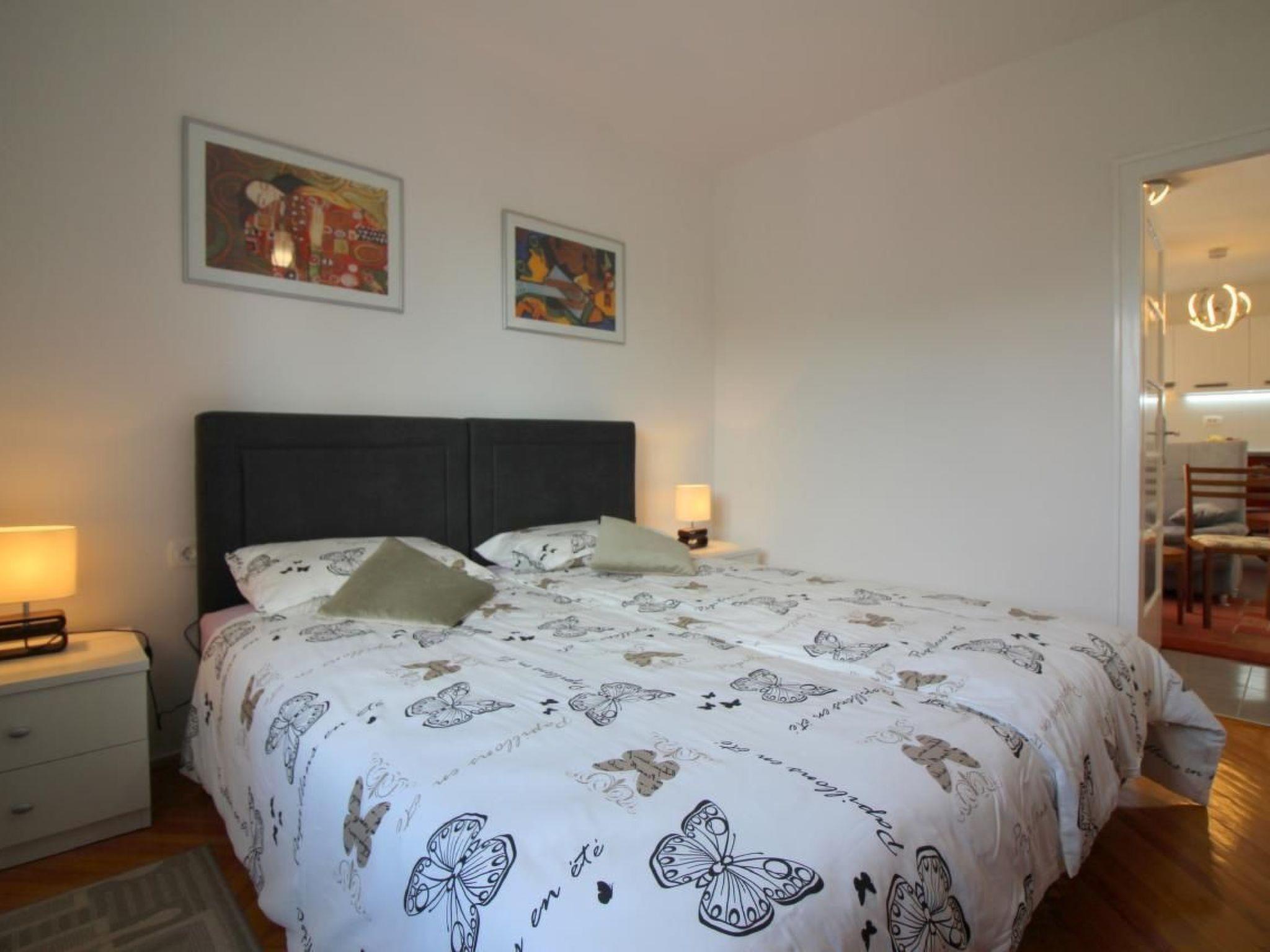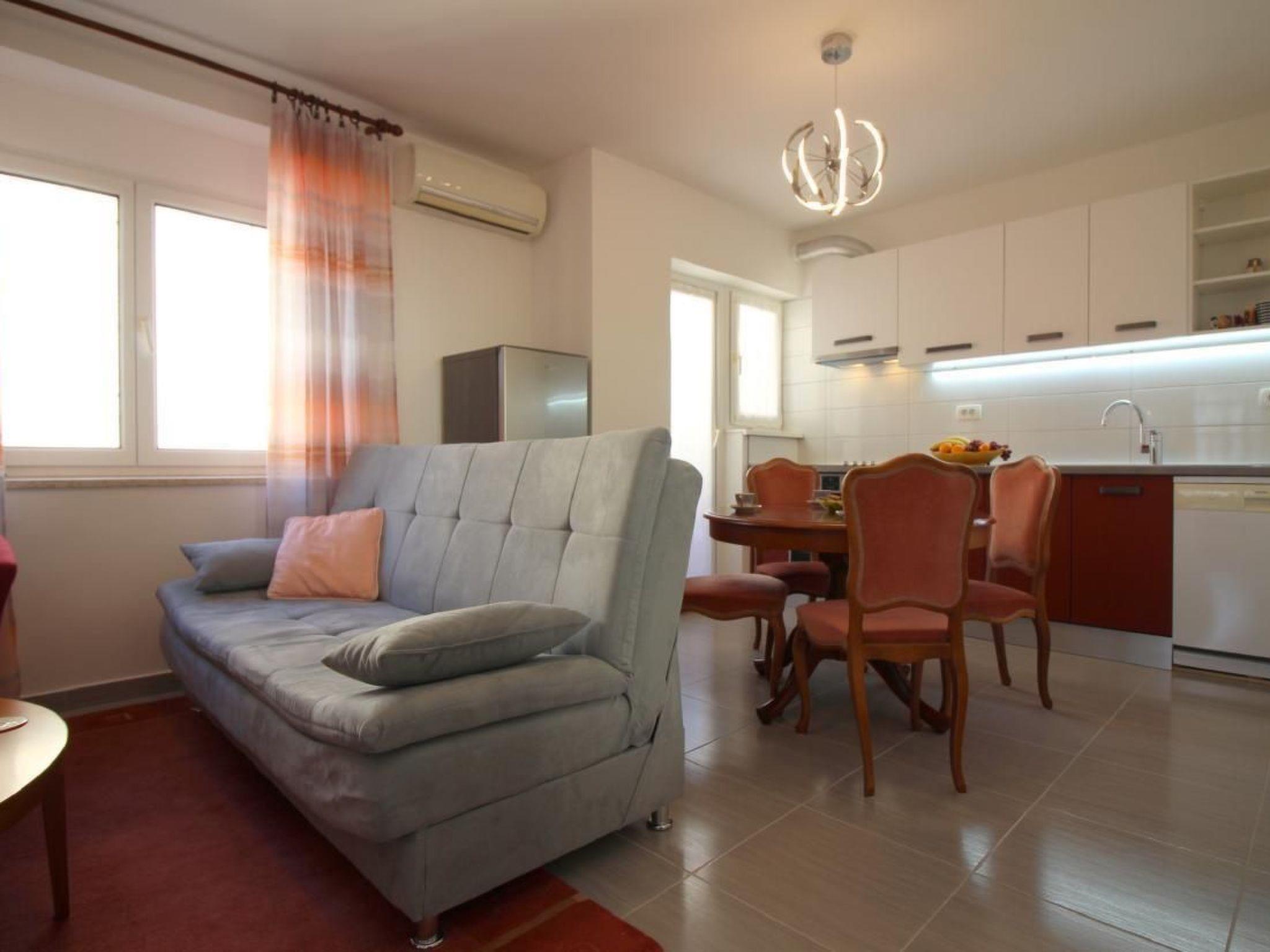 The flat is suitable for 4 persons and is located in a residential building on the 2nd floor. The flat offers the following in an area of 58m²: Living room with couch, dining table and fully equipped kitchen - all in one room, two bedrooms, one of which has a small balcony and bathroom with shower/WC. The balcony has a beautiful view of Porec and the sea. It invites you to relax and indulge yourself.