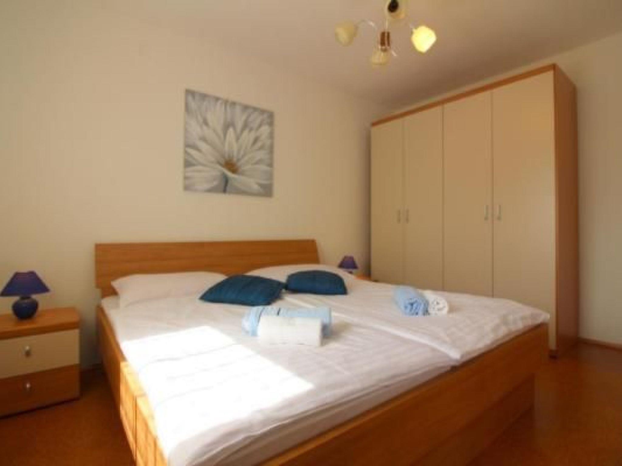 Holiday flat Samara 1 for 4 persons is located on the 1st floor of the house, on an area of 50m2 and has a kitchenette with dining table and living room with exit to the covered balcony with seating, 2 bedrooms and bathroom with shower/WC. Air conditioning and wifi internet connection are available and included in the price.
