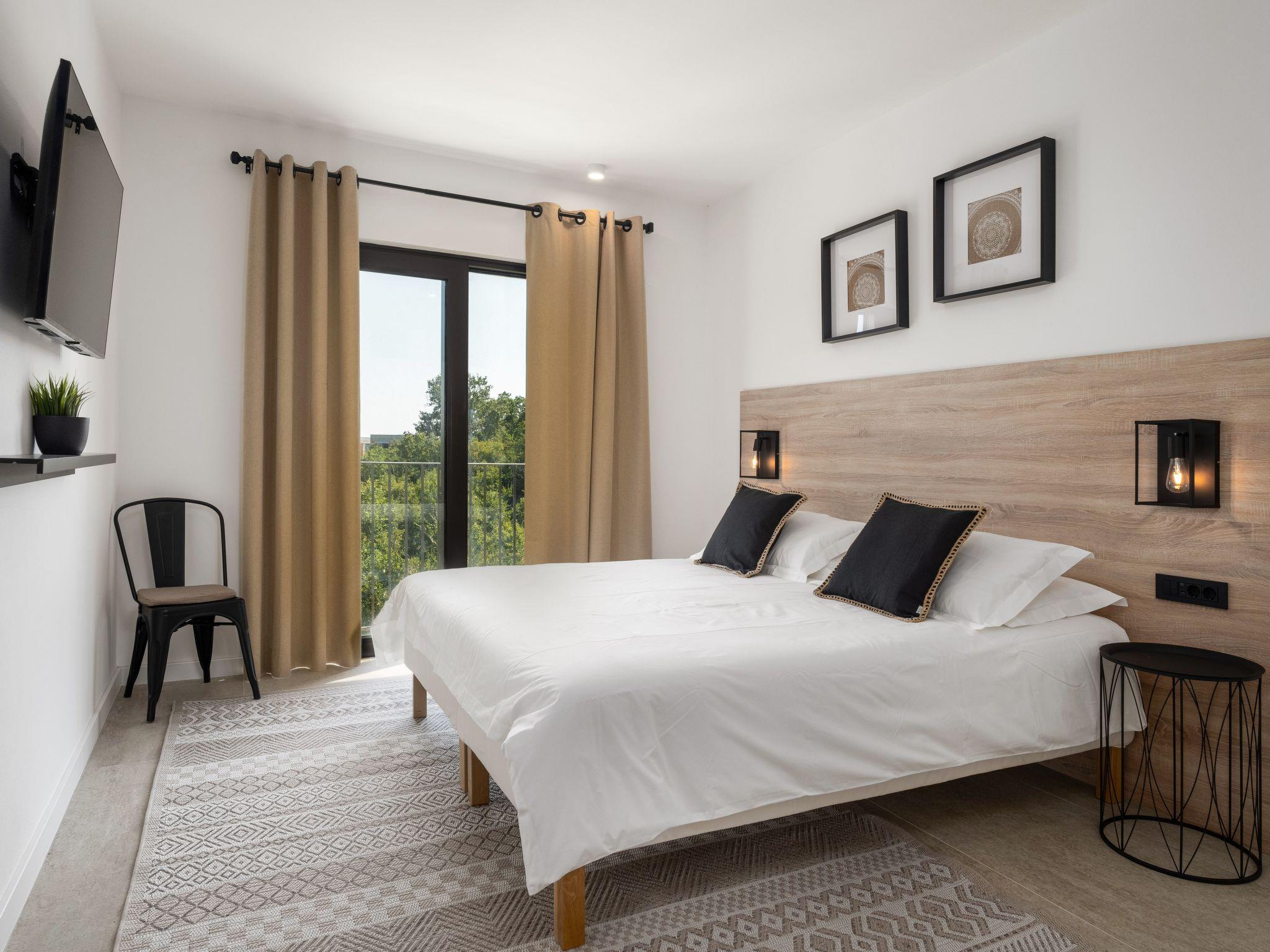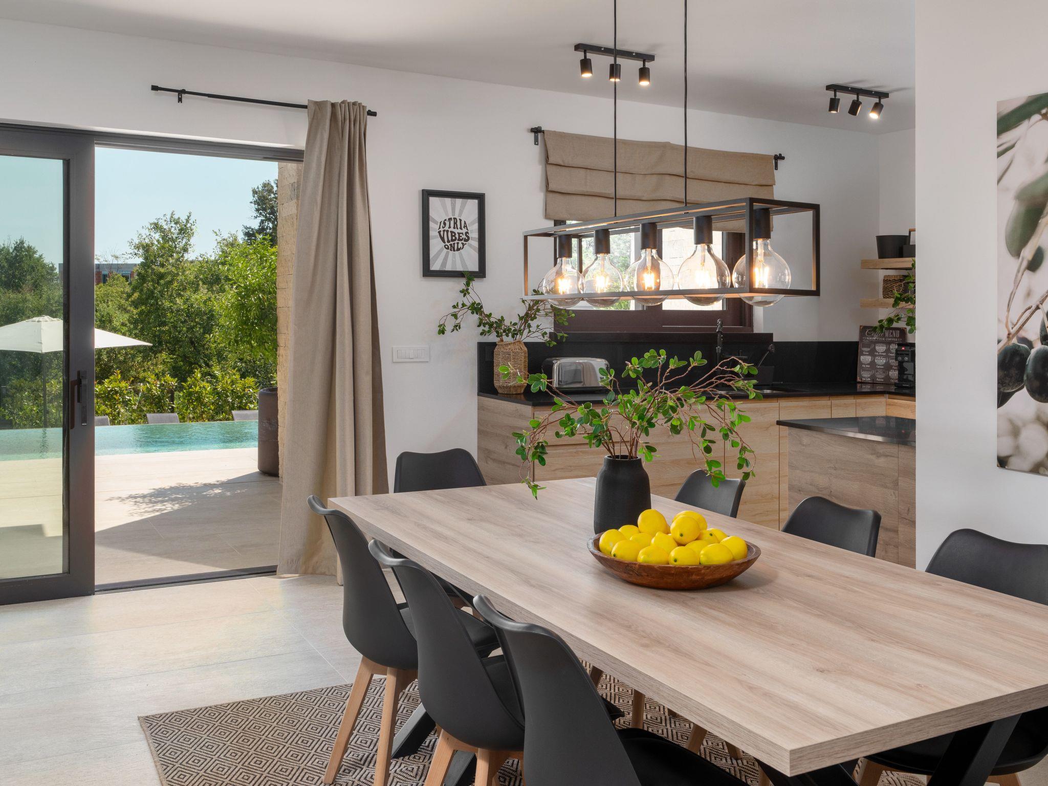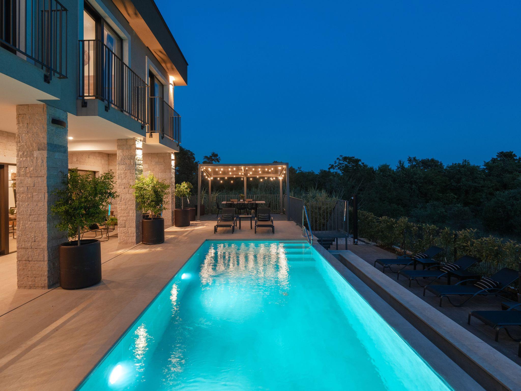 Villa Palazzina ll is a newly built villa with pool on the outskirts of Porec, approx. 3 km from the sea and 5 minutes by car from the town centre. The house is located on the edge of the village of Vranici on a completely fenced garden plot of 700 m2 and offers its guests a 36 m² pool, covered terrace with barbecue and seating set, deckchairs and lounge set. Parking for 3 vehicles is also available in the courtyard.