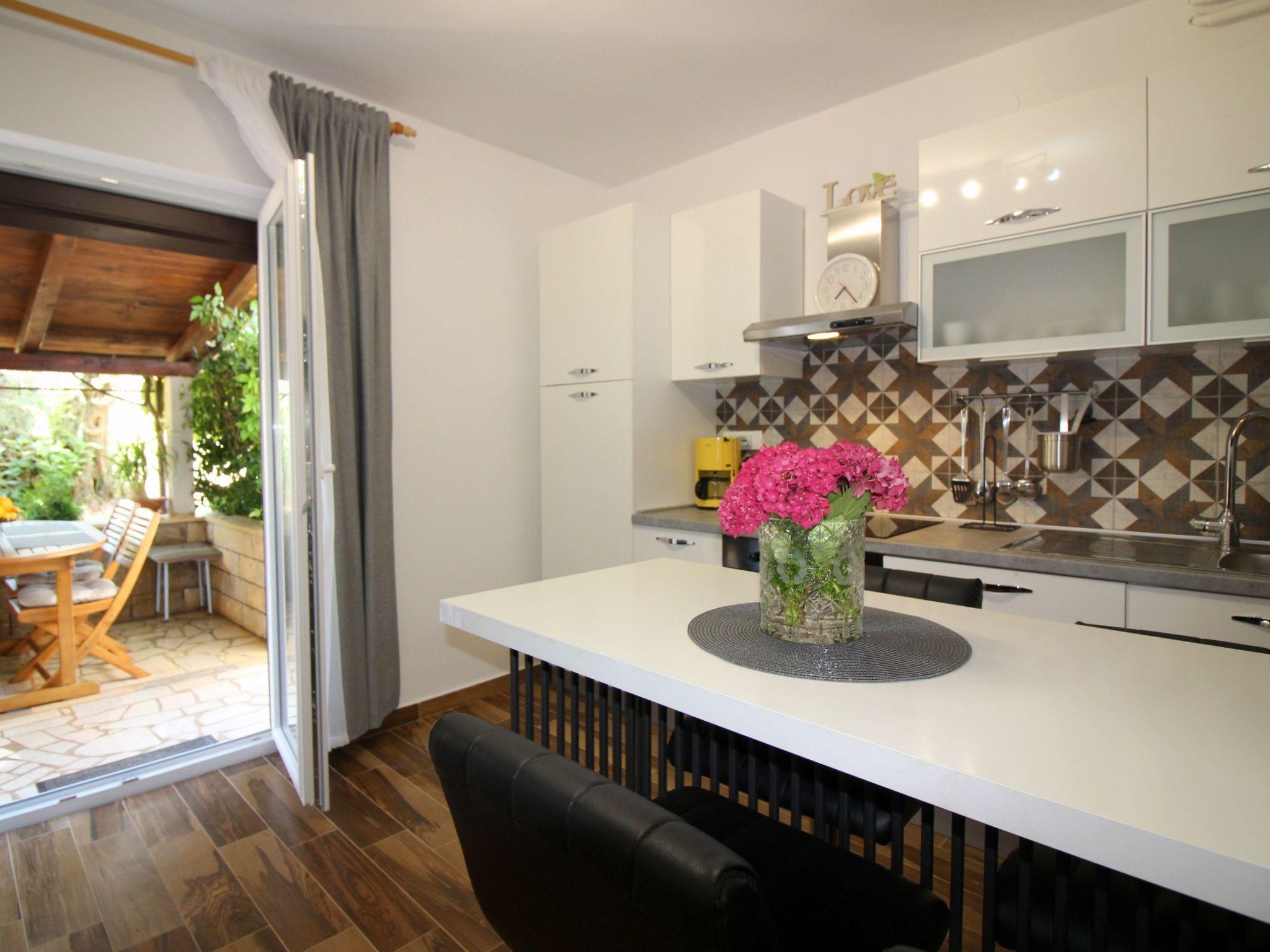 Discover the ideal retreat for a carefree holiday in Porec, Istria, in the inviting Jakomina holiday flats. Situated in the picturesque district of Mali Maj, these holiday accommodations not only promise an idyllic setting with olive trees and a charming shared garden, but also an excellent location just a short walk from Materada beach. Designed for up to 5 people, the Jakomina 2 holiday flat on the ground floor offers all the amenities needed for an unforgettable stay.