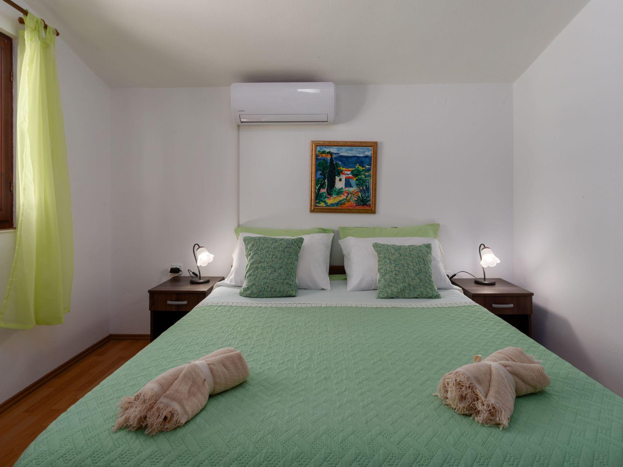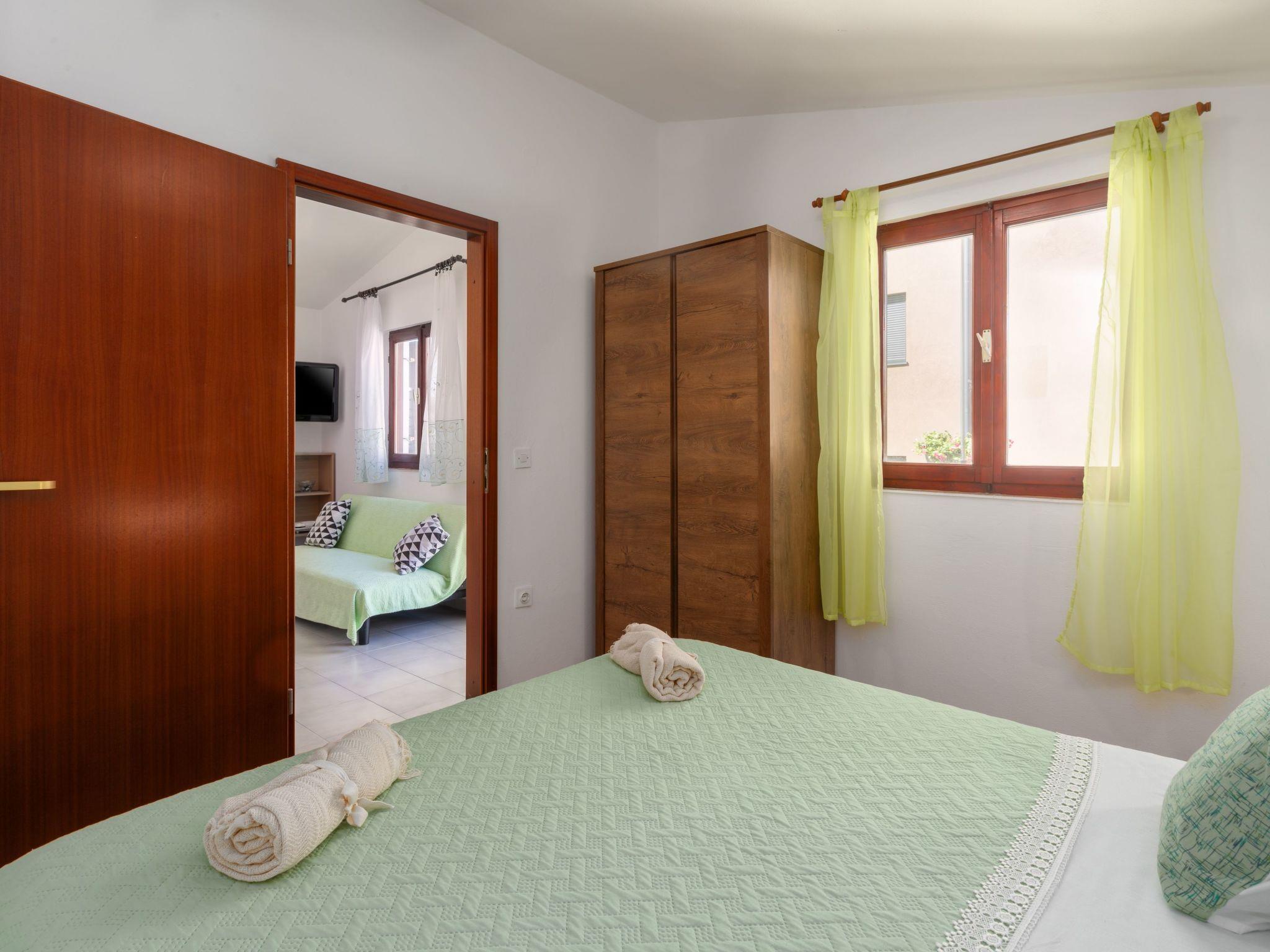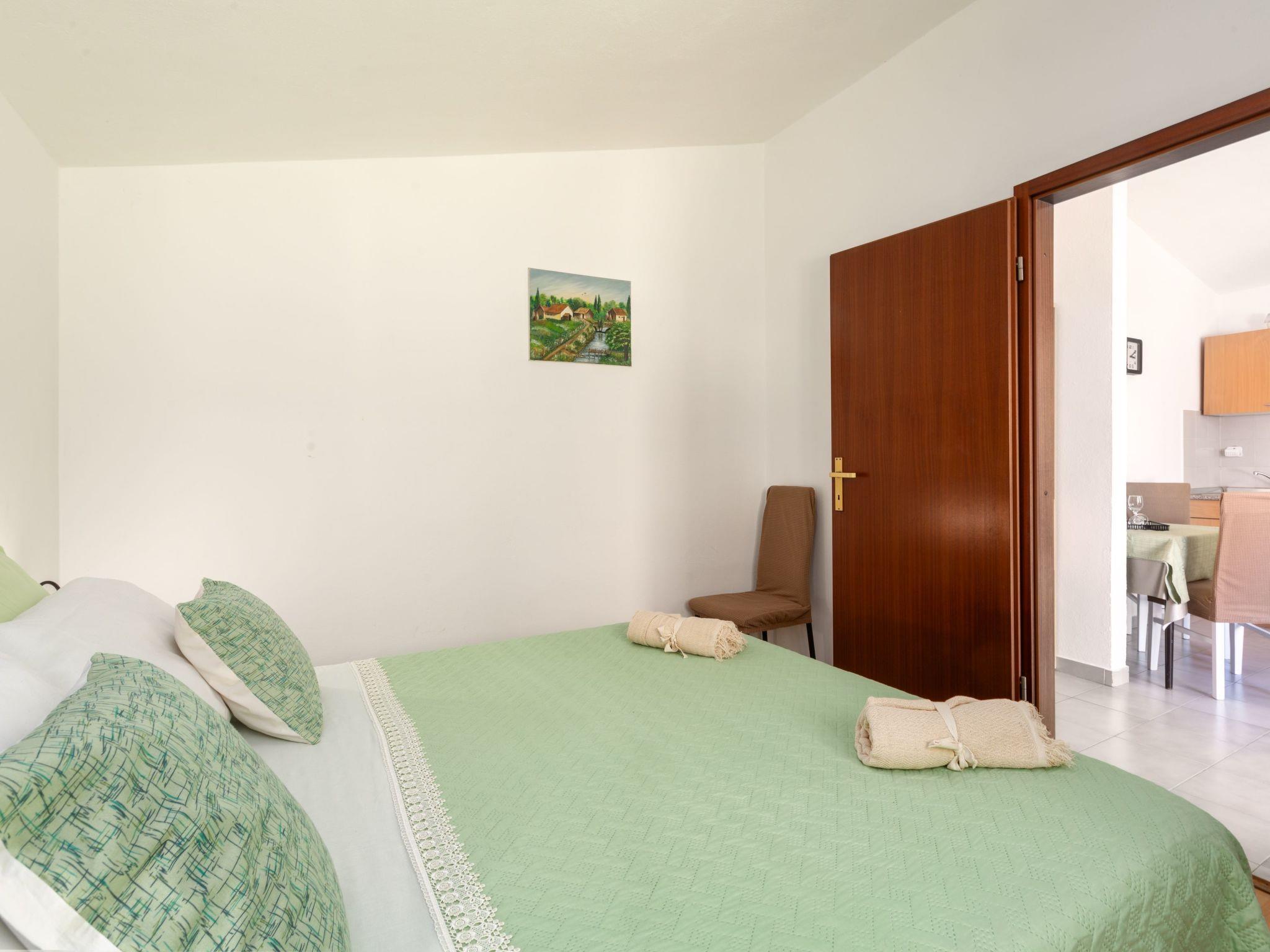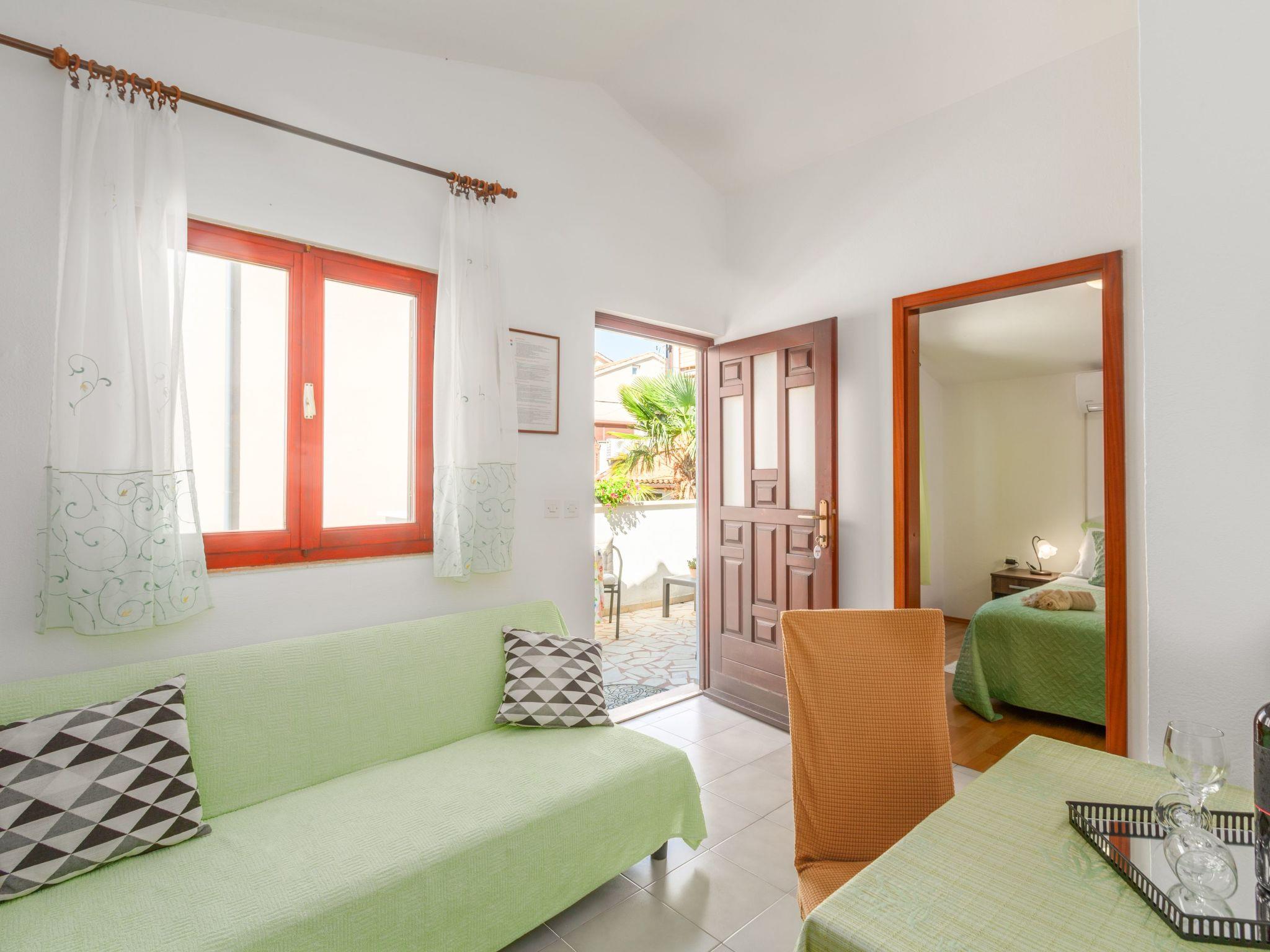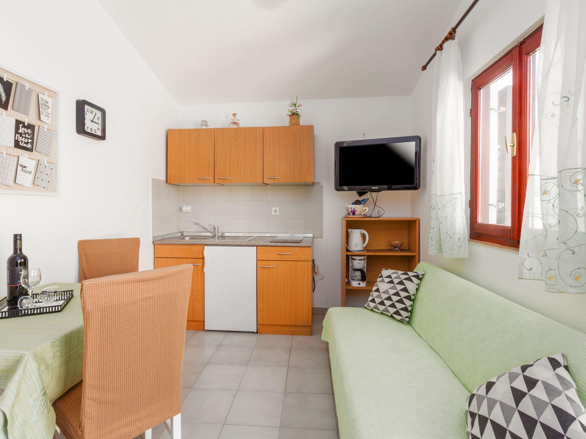 Inside, guests can expect a cosily furnished ambience on 30 m² of living space. The flat is practically designed and contains everything you need for a carefree stay. This includes a well-equipped small kitchen-diner with a 2-ring hob and kettle, a cosy bedroom with a comfortable double bed, which can be completely darkened for a good night's sleep, and a modern bathroom with shower. The air-conditioned environment guarantees a pleasant living climate at all times, perfect after a long day under the Istrian sun.