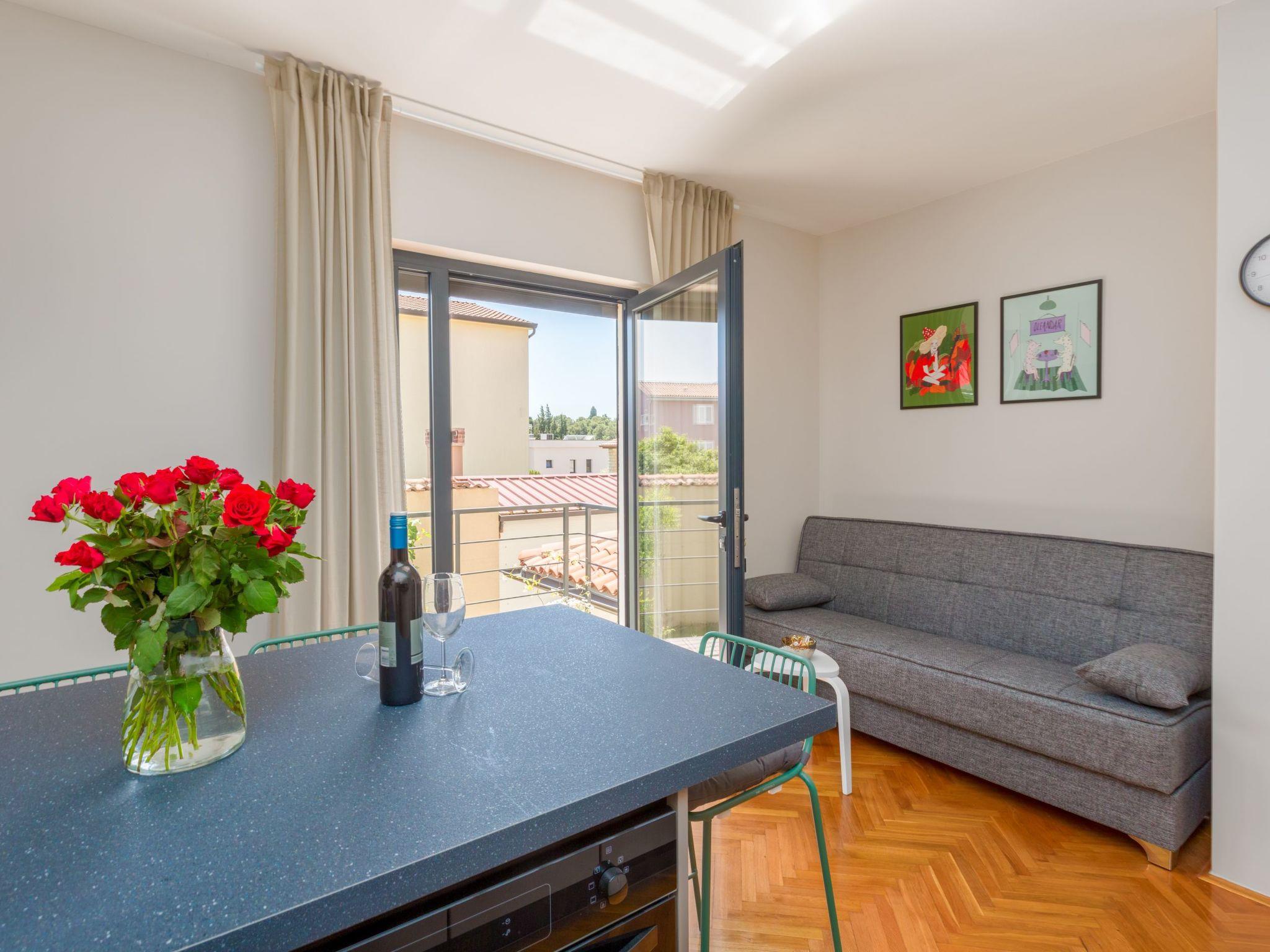 The location of the Oleandar flat is simply unbeatable. Only 800 metres separate you from the beach and the sparkling sea, while water sports facilities and the enticing centre of Porec with its numerous shopping and entertainment options are just 900 metres away. A grocery store is conveniently located just 150 metres away, making self-catering a breeze.