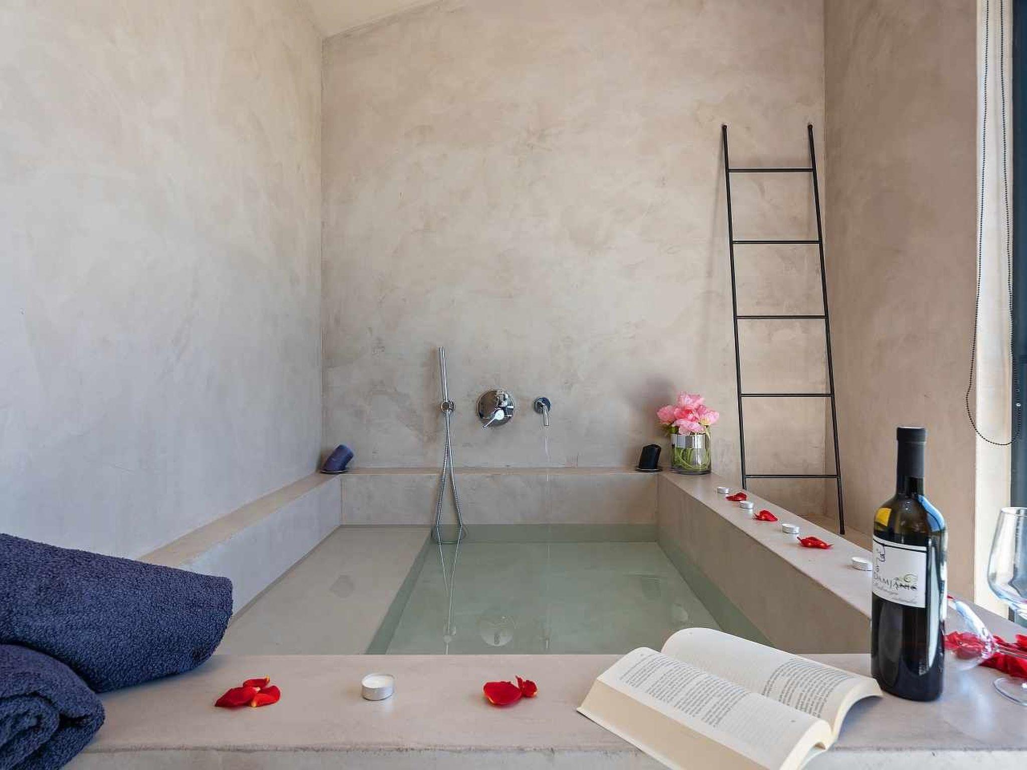 Villa Mare Exclusive is a holiday home with pool of 200 sqm on three luxurious and designer furnished floors. The ground floor includes the living room with fireplace and plenty of natural light through the large glass walls, dining room, fully equipped kitchen and a separate toilet. From the living room you can access the beautiful terrace above the wonderful pool. On the first floor there are two air-conditioned bedrooms, each with its own shower/WC and satellite TV and on the second floor there is another double bedroom with its own special wellness bathroom from which you can enjoy the sunset through the glass wall.
