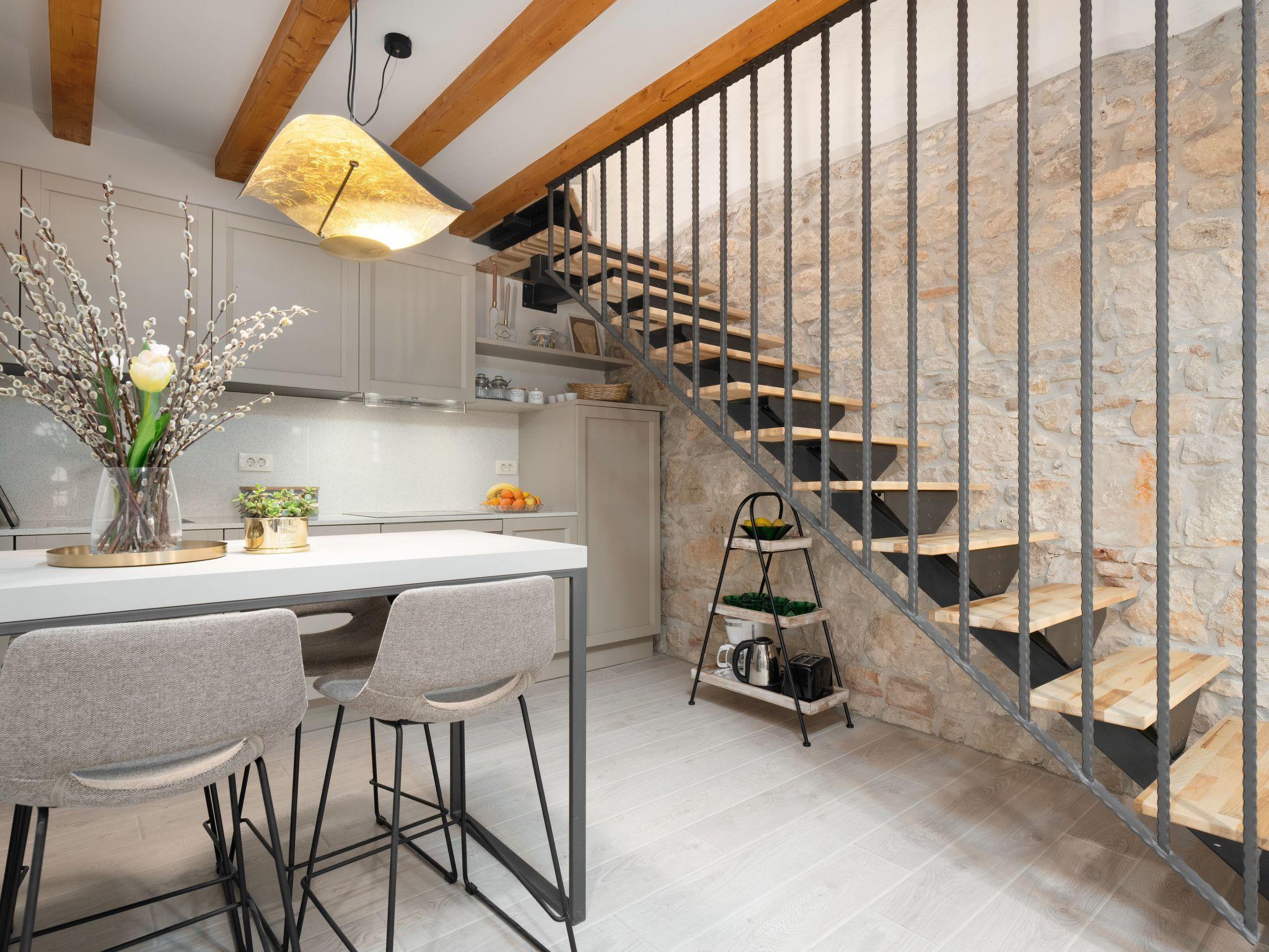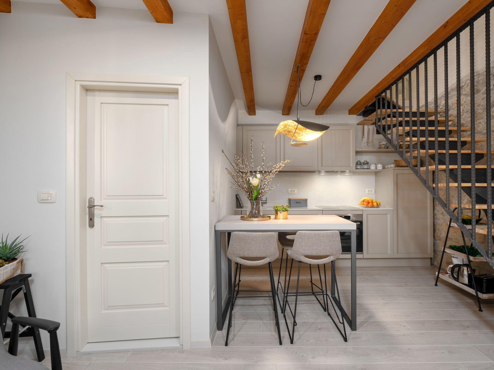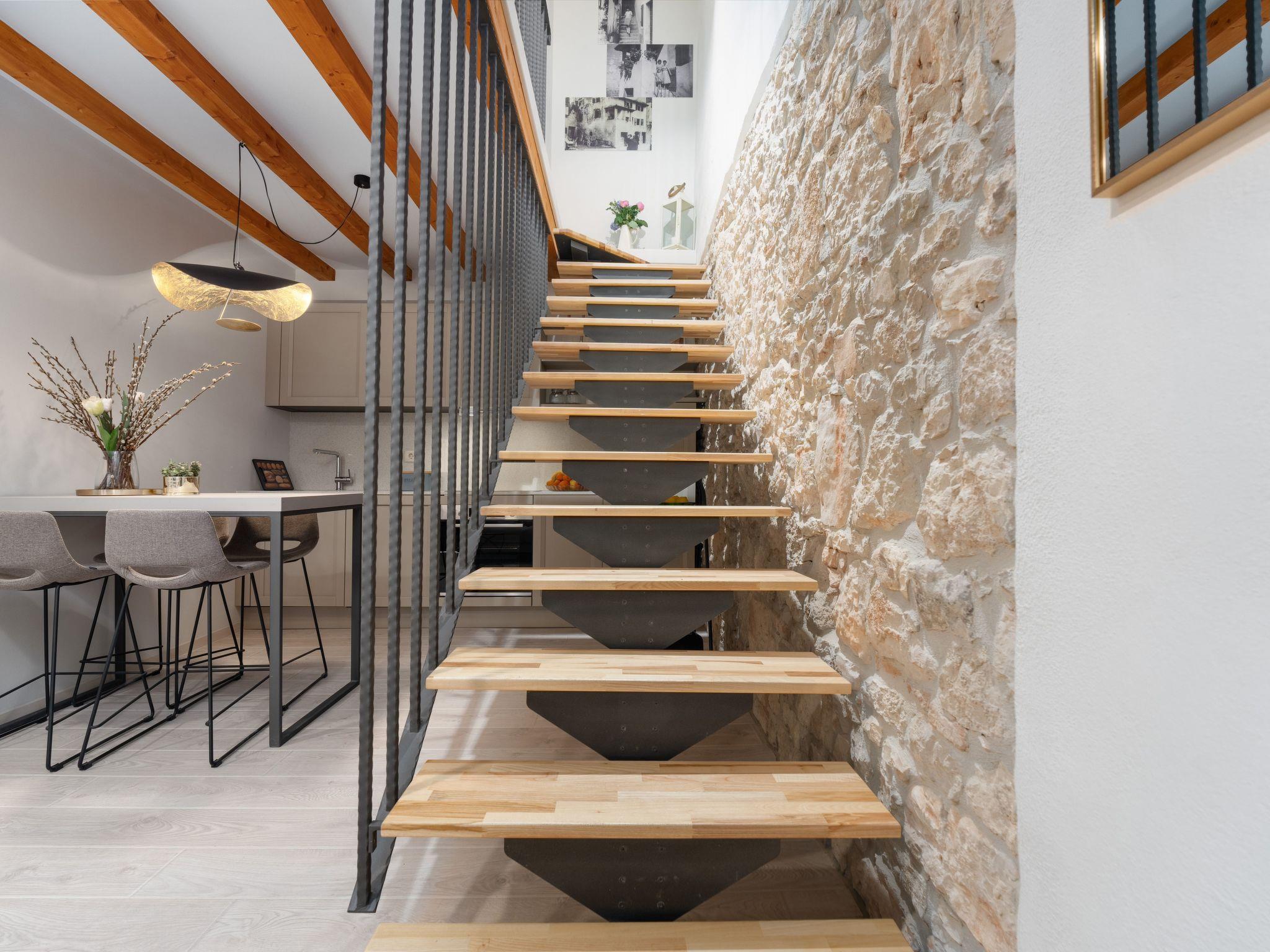 A charming terrace welcomes guests directly at the entrance. Equipped with comfortable garden furniture, it is the ideal place to watch the colourful hustle and bustle of the street, lined with tourists and atmospheric wine bars. Surrounded by the pedestrianised area of the old town, you can immerse yourself in the urban life of Porec while relaxing in this peaceful oasis.