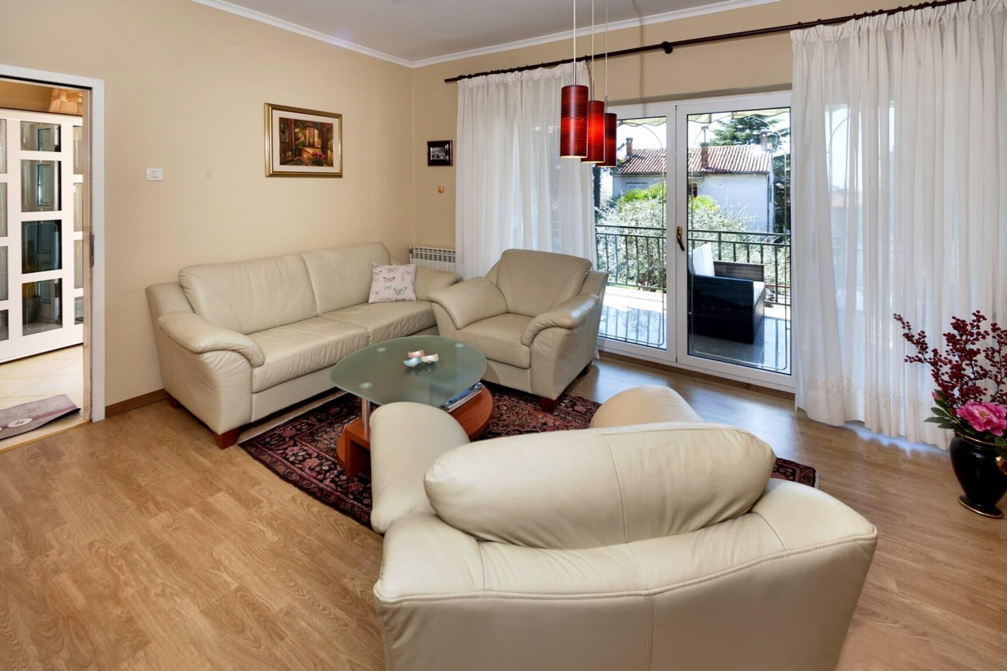 Apartment Rocco er en hyggelig 1-værelses lejlighed beliggende i Porec, kun 400 meter fra byens centrum og 500 meter fra stranden. Ideel til par, lejligheden kan rumme to personer, med mulighed for et lille barn, der deler dobbeltseng med forældrene. Lejligheden har en komfortabel opholdsstue med åbent køkken, et rummeligt soveværelse med dobbeltseng og et badeværelse med bruser. Lejligheden er bekvemt beliggende i gåafstand til Porecs pulserende centrum, der tilbyder en række butikker, restauranter og attraktioner. Stranden ligger kun 500 meter væk, hvilket gør det nemt at nyde havet og kystaktiviteterne. Ejendommen er også gode forbindelser med et busstoppested 1,3 km væk og togstationer i Pazin og Pula, der ligger henholdsvis 32,8 km og 57,9 km væk. også inden for rimelig køreafstand. De nærliggende attraktioner omfatter Dinopark Funtana (8,2 km), Aquacolors Porec (4,6 km) og den smukke Brijuni National Park (49,9 km). Lejligheden er fuldt udstyret til et behageligt ophold, herunder et velindrettet køkken med køleskab, ovn, fryser, opvaskemaskine og væsentlige køkkenredskaber. Der er også kaffemaskine, brødrister og kedel for ekstra bekvemmelighed. Lejligheden har en indhegnet have, perfekt til at nyde det udendørs rum, og en terrasse til afslapning. Yderligere faciliteter omfatter satellit-tv, vaskemaskine og strygejern.