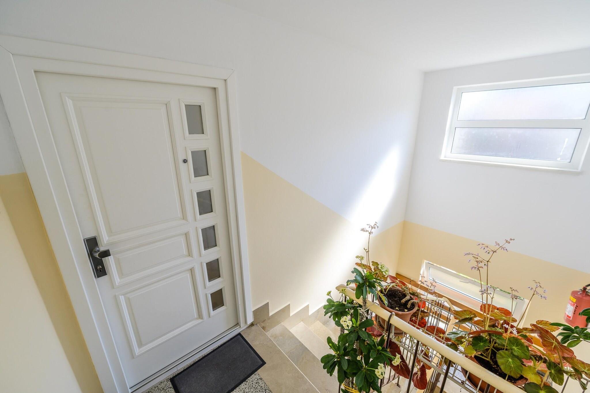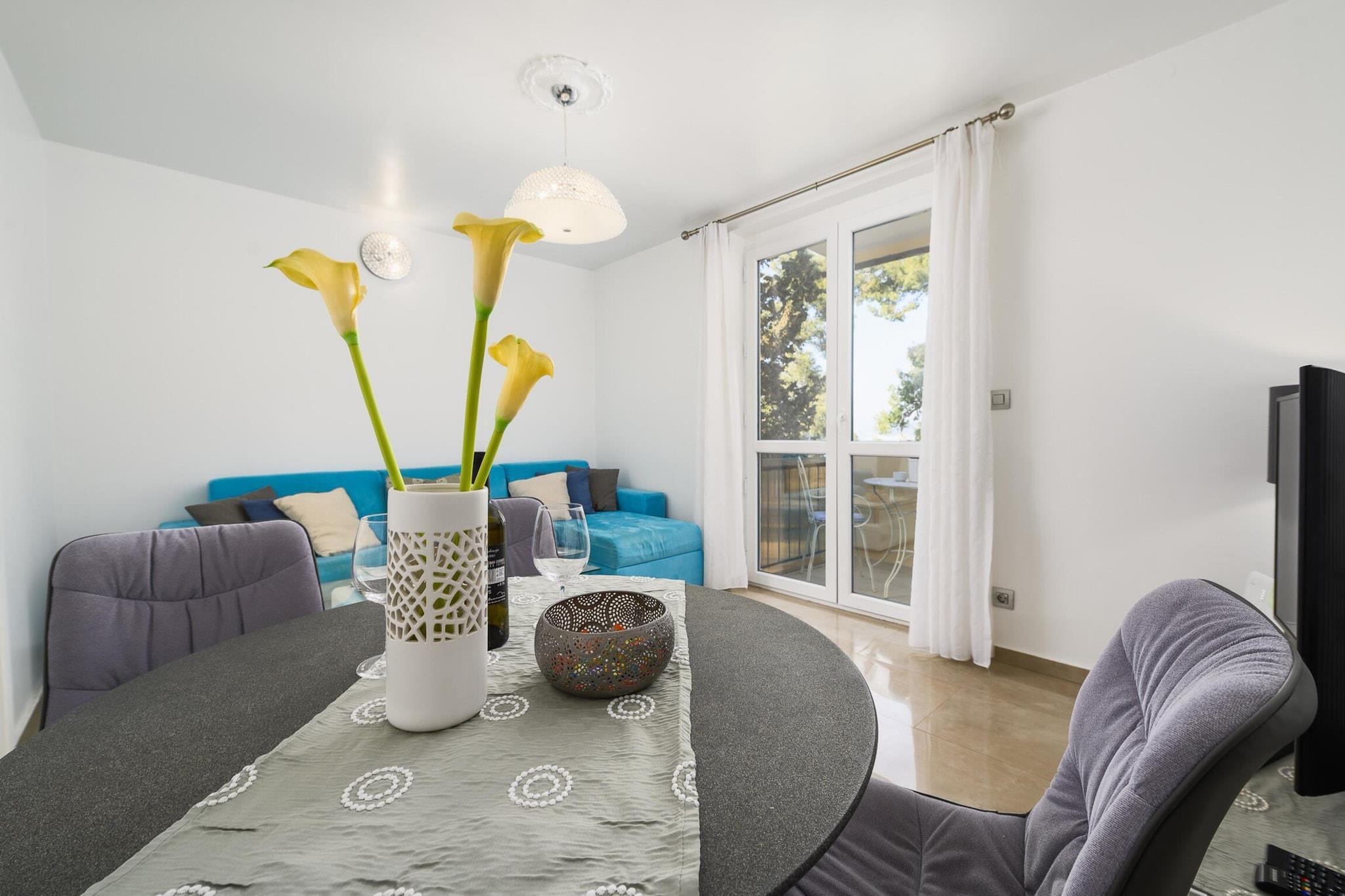 Denne ejendom, med sine moderne og komfortable møbler, tilbyder et behageligt ophold for op til fire gæster i en 60 m² stor lejlighed. Lejligheden ligger lige ved stranden med udsigt over vandet og har to soveværelser, hvilket gør den ideel til en familie eller en lille gruppe. Indkvarteringen er fuldt udstyret med faciliteter såsom Wi-Fi, aircondition og en varmepumpe, hvilket sikrer komfort under dit ophold. En balkon er det perfekte sted at nyde den friske havluft. Yderligere bekvemmeligheder inkluderer tre tv'er med satellitkanaler på flere sprog (engelsk, tysk og russisk), samt udendørs parkering i den tilstødende bygning. Beliggende i en familievenlig zone og kun få skridt fra havet, har ejendommen en fremragende beliggenhed i Porec. Gæsterne kan nemt få adgang til lokale attraktioner, med det nærmeste supermarked, Konzum, kun 50 meter væk. Den piske klippestrand ligger kun 350 meter fra lejligheden, perfekt til en dag ved havet. Porecs pulserende bymidte ligger kun en kort gåtur derfra, mens en busstation ligger 600 meter fra ejendommen for nem adgang til yderligere destinationer. Til familiesjov ligger Aquacolors vandland 5 km væk. Den nærmeste lufthavn og togstation i Pula ligger begge cirka 70 km fra ejendommen. Lejligheden har et fuldt udstyret åbent køkken med moderne apparater såsom en glaskeramisk kogeplade, køleskab, ovn, fryser og opvaskemaskine. Alt nødvendigt køkkenudstyr, herunder tallerkener, bestik og redskaber, leveres sammen med en kaffemaskine, brødrister og kedel for ekstra bekvemmelighed.