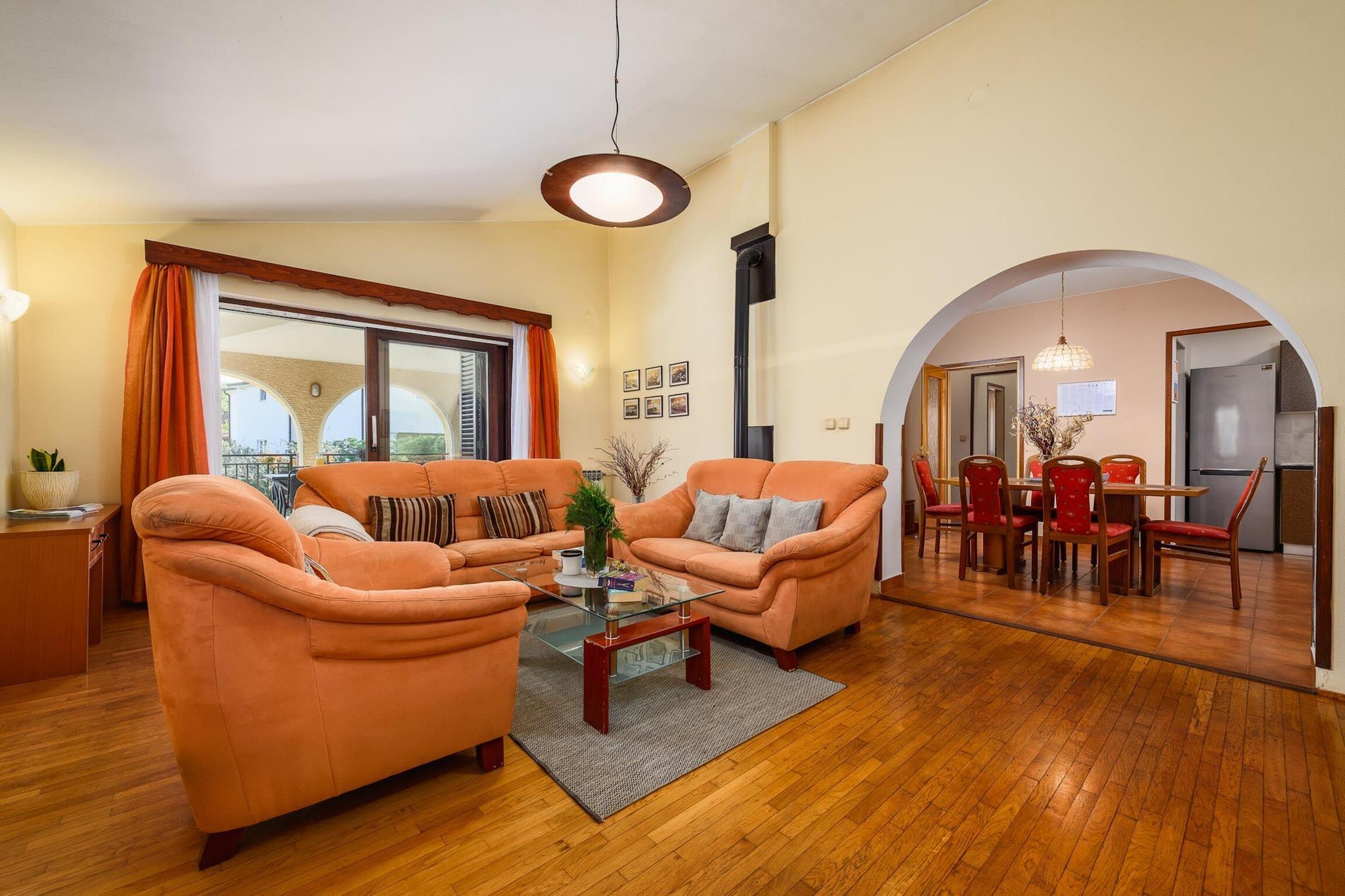 Denne rummelige lejlighed kan komfortabelt rumme op til 5 gæster i sine tre velindrettede soveværelser. Ejendommen har en privat have med udendørsmøbler, ideel til at nyde den friske luft, samt en terrasse til spisning eller afslapning. Yderligere funktioner omfatter en vaskemaskine, grill og et børneområde, hvilket gør det til et godt valg for familier med små børn. Der tilbydes udendørs parkering i samme bygning, hvilket giver bekvemmelighed og ro i sindet. Lejligheden er perfekt beliggende kun 25 meter fra den maleriske Pical Beach, hvilket gør den til et fremragende valg for dem, der ønsker at nyde havet og sandet. Den nærliggende restaurant "Konoba Kvartin, Vranici" ligger kun 300 meter væk, og tilbyder et udvalg af lokale retter. Til daglige nødvendigheder er "Studenac"-supermarkedet en kort gåtur på 540 meter. Hvis du ønsker at udforske området, er Porecs bymidte kun 3 km væk, mens populære attraktioner såsom Aquacolors vandland (8 km) og Dino Park forlystelsespark (11 km) er inden for rækkevidde. Regionen er også hjemsted for naturlig skønhed, med Mirna-floden (33 km) og Brijuni-øernes naturreservat (52 km), der byder på naturskønne landskaber og udendørs aktiviteter. Pula lufthavn og togstation ligger omkring 60 km væk, hvilket giver nem adgang til ejendommen. Lejligheden har et fuldt udstyret selvstændigt køkken med gaskomfur, køleskab, ovn, opvaskemaskine og alt nødvendigt køkkenudstyr, hvilket gør det nemt at tilberede måltider derhjemme. En kaffemaskine, brødrister og kedel er også tilgængelige for ekstra bekvemmelighed. Uanset om du forbereder et familiemåltid eller blot nyder en kop kaffe, tilbyder køkkenet alt, hvad du behøver for et behageligt ophold.