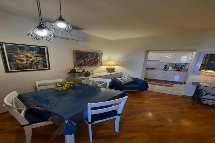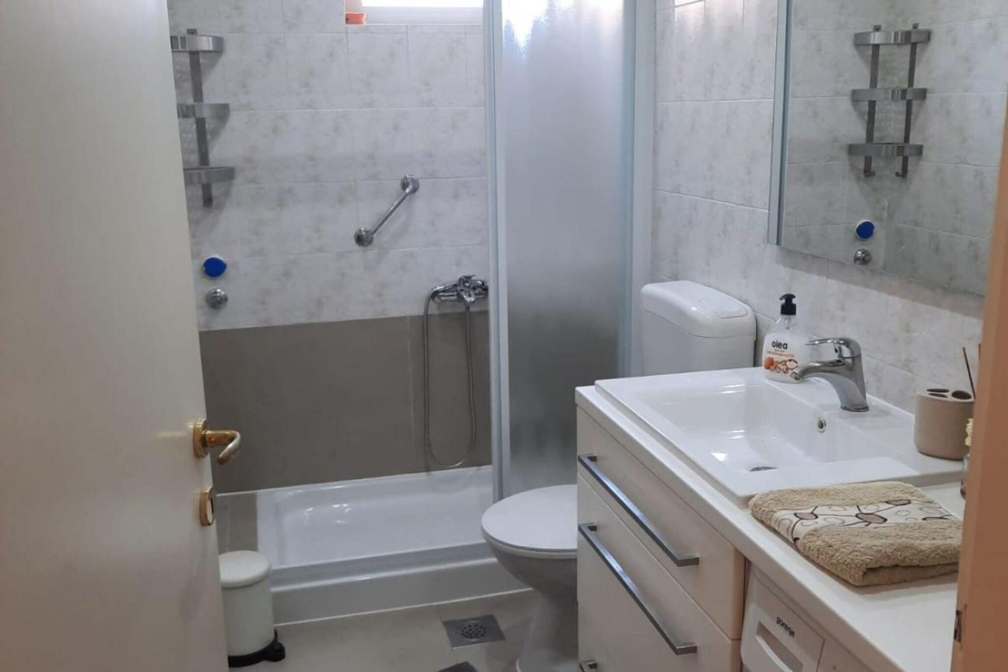 Denne moderne og smagfuldt indrettede lejlighed på 50 m² i Porec tilbyder komfortabel indkvartering for op til 4 personer, med maksimalt 2 voksne. Lejligheden er ideel til en lille gruppe eller familie, og byder på et hyggeligt soveværelse og en række faciliteter til at sikre et afslappende ophold. Beliggenheden i byens centrum placerer gæster tæt på en række lokale attraktioner, restauranter og vigtige tjenester. Lejligheden har en førsteklasses central beliggenhed, kun 10 meter fra restauranten "La Taverna" og kun 150 meter fra den nærmeste klippestrand, hvilket gør det nemt for gæsterne at nyde både spisning og aktiviteter ved havet. Det er også bekvemt beliggende 300 meter fra "Konzum"-supermarkedet, hvilket sikrer, at gæsterne nemt kan fylde det væsentlige op. Andre nærliggende attraktioner omfatter busstationen (400 meter), en sandstrand (800 meter) og det populære Aquacolors vandland (2 km). For naturelskere ligger de termiske kilder ved "Istarske toplice" 30 km væk, og naturreservatet Brioni ligger 60 km fra lejligheden. Ejendommen er godt forbundet til transportmuligheder, med Pula Lufthavn (70 km) og Trst Train Station (100 km) inden for en rimelig afstand. Lejligheden har et åbent køkken udstyret med en glaskeramisk kogeplade, køleskab, mikroovn, fryser og væsentligt køkkenudstyr, herunder tallerkener, bestik, bestik, kaffemaskine, brødrister og kedel. Dette giver gæsterne mulighed for nemt at tilberede deres egne måltider under deres ophold. Uanset om du nyder en afslappende middag eller en hurtig snack, er køkkenet fuldt udstyret til alle behov. Lejligheden har også en vaskemaskine, strygejern og hårtørrer for ekstra bekvemmelighed.