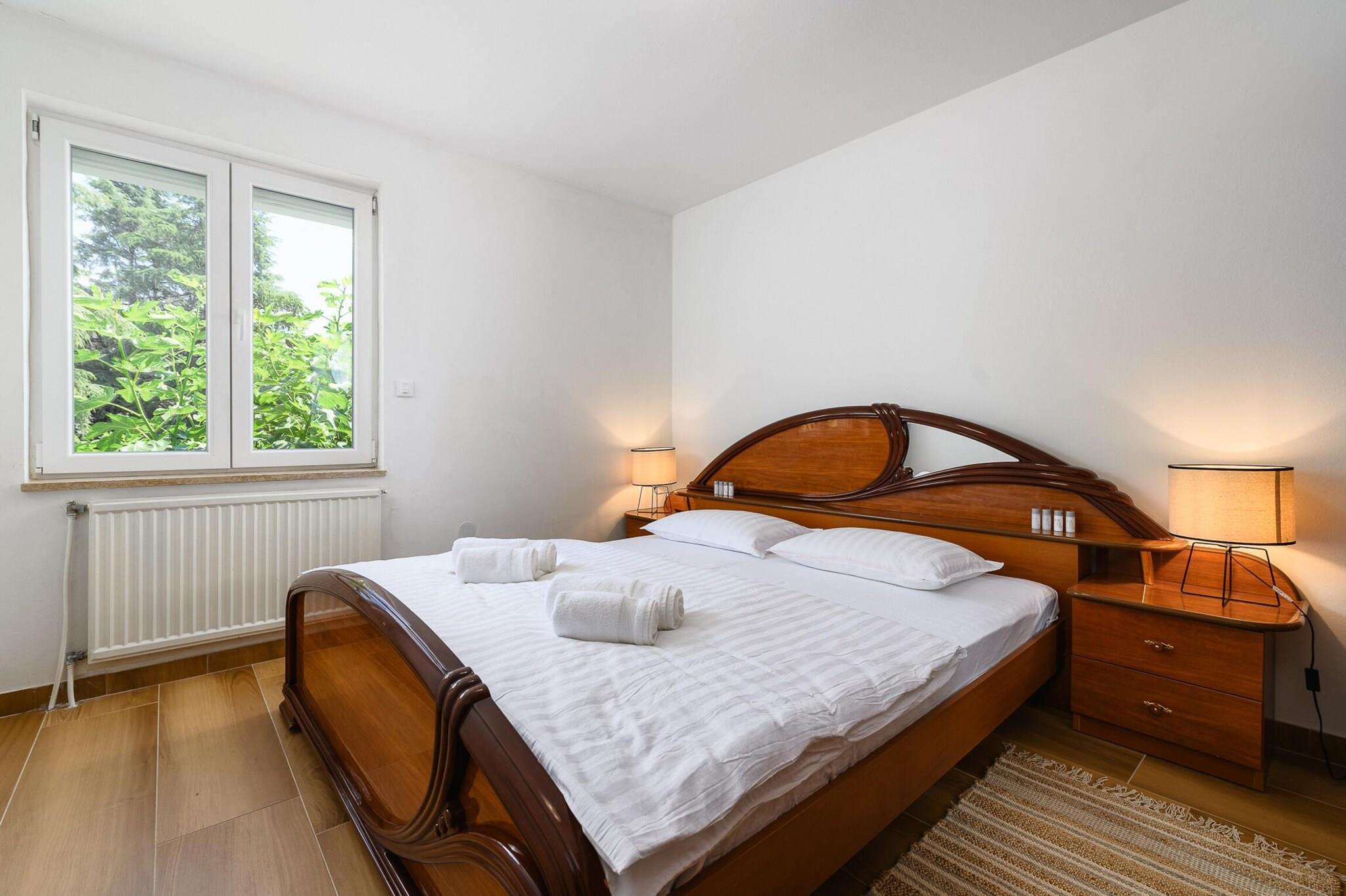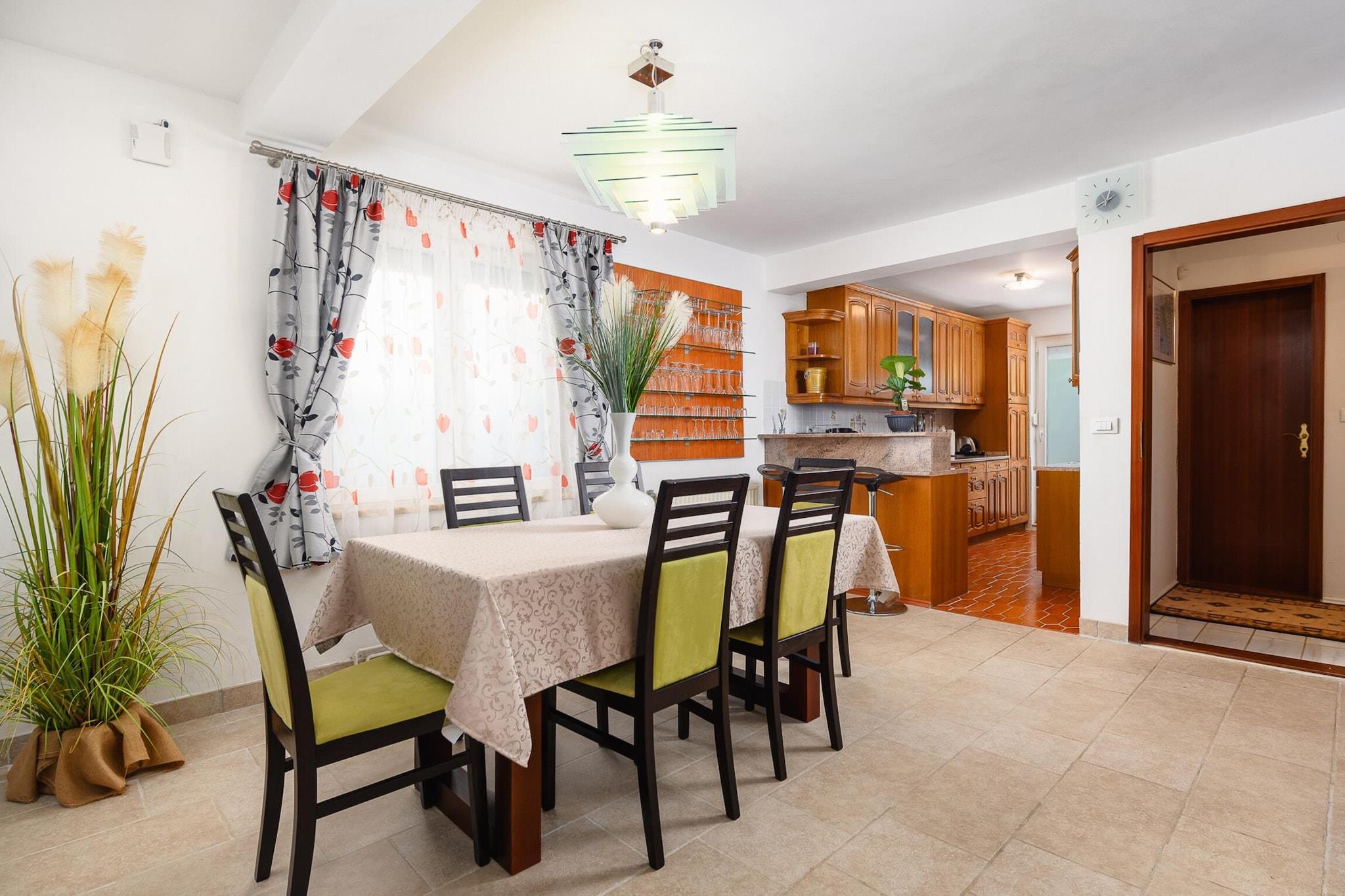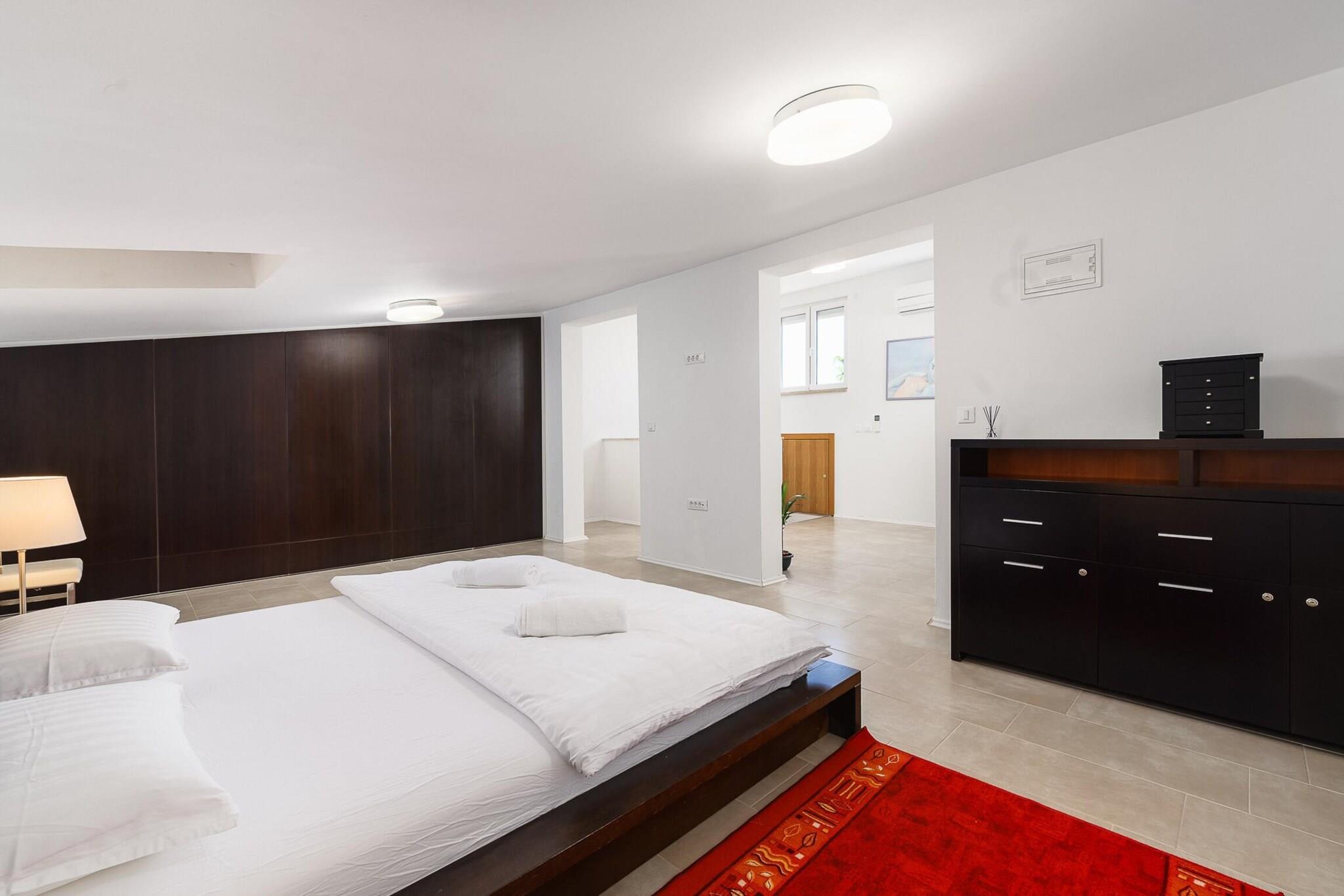 The villa i Porec har 4 soveværelse(r) og kapacitet til 10 person(er). Bolig på 336 m² komfortabel og er stort, ligger i første linje til strand, med udsigt til have og swimming pool. Er beliggende 400 m fra supermarkedet "Plodine Supermarket", 1 km fra stenstranden "Parentino beach ex Pical", 1 km from the restaurant "Restaurant Sunset Porec", 1 km fra byen "Porec center", 1 km fra stranden "Sandy beach Marea", 3 km fra busstationen "Bus Station Porec", 5 km fra vandland "Aquacolors", 9 km fra forlystelsesparken "Dino park Funtana", 12 km fra floden "River Mirna", 51 km fra naturparken "Fazana to Brijuni Islands", 58 km fra lufthavnen "Zracna Luka Pula", 59 km fra togstationen "Train Station Pula", 126 km fra skibakken "Platak" og er beliggende i en ideel for familier område og i en forstad. Tilbyder have, terrassemøbler, indhegnet grund, vaskemaskine, grill, strygejern, internet (wifi), hårtørrer, altan, jacuzzi, varmepumpe, aircondition, swimming pool privat, conditionned swimming pool privat, utildækket parkering til den samme bygning, TV, satellit (Sprog: Engelsk, Tysk). The køkken, på gas, med service og køleskab, mikroovn, ovn, fryser, opvaskemaskine, tallerkener/bestik, køkkenredskaber, kaffemaskine, brødrister og kedel.
