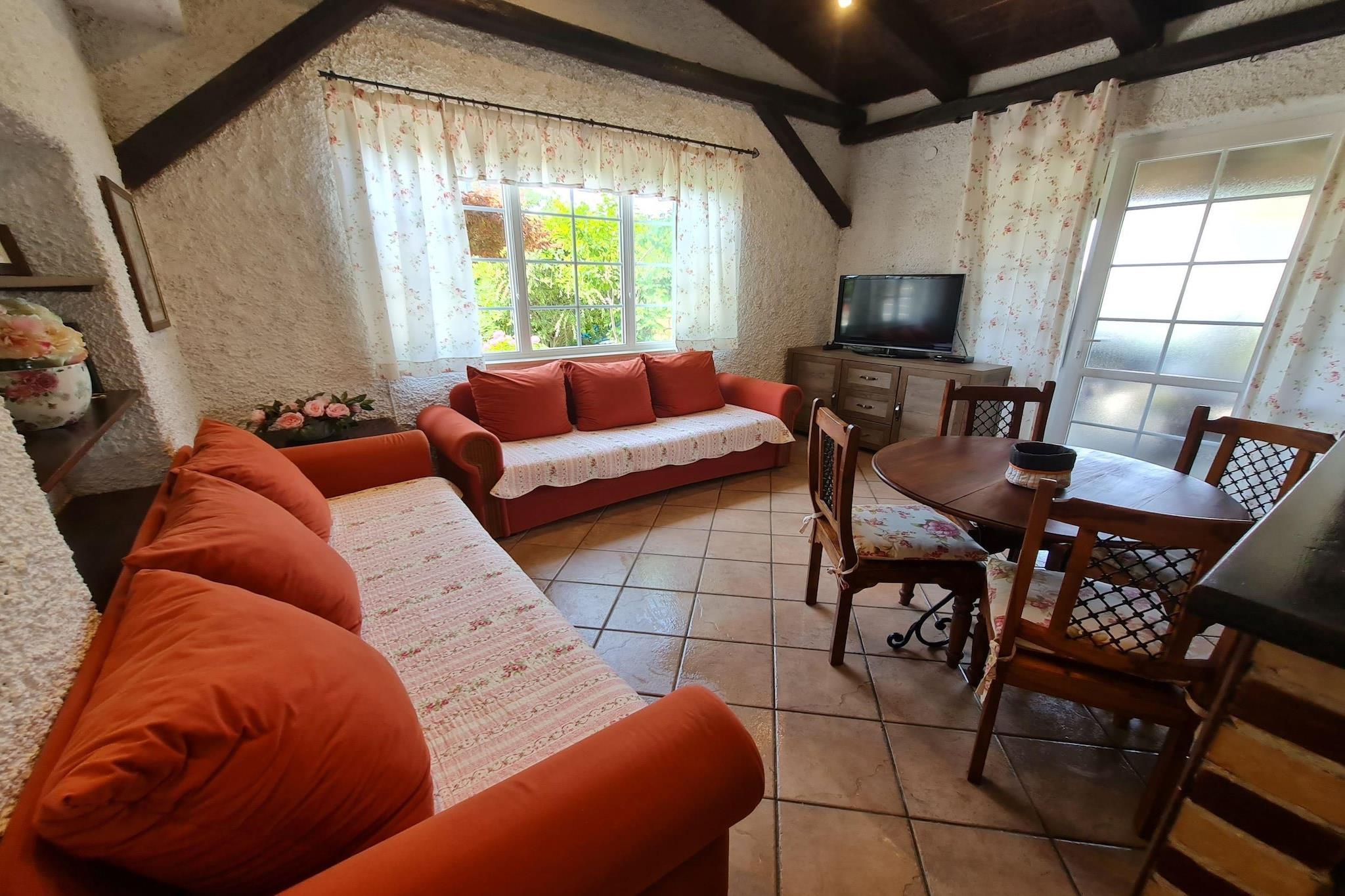 Stue(enkeltseng, Fjernsyn, spisebord, sofahjørne), åbent køkken(elkedel, brødrister, kaffemaskine, ovn, mikrobølgeovn, køle-fryseskab, elektriske kogeplader, ), soveværelse(dobbeltseng), badeværelse(bruser, håndvask, toilet, føntørrer), Havemøbler, vaskemaskine, klimaanlæg, terrasse, have, parkering, føntørrer