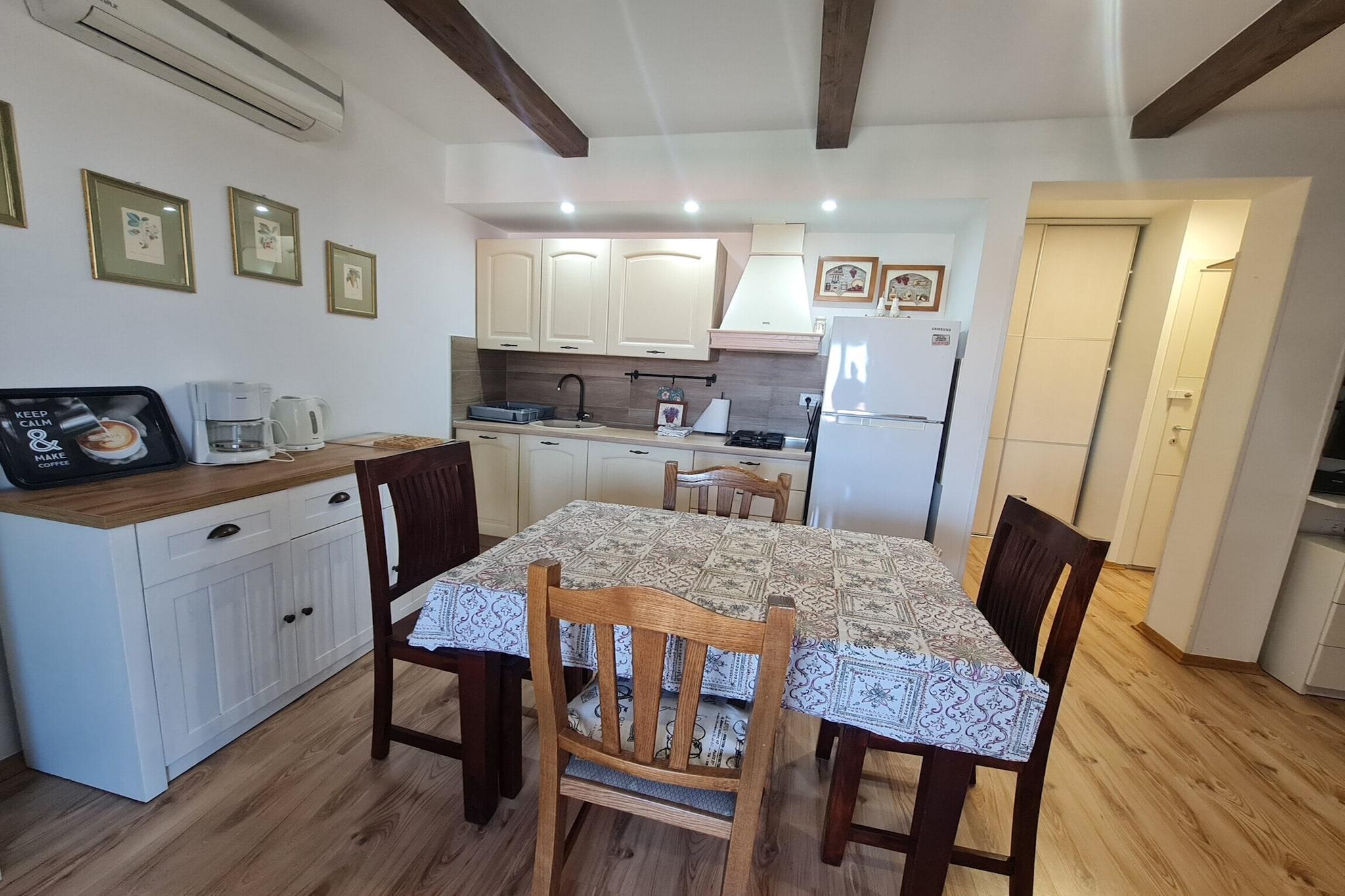 The lejlighed i Porec har 1 soveværelse(r) og kapacitet til 3 person(er). Bolig på 50 m² komfortabel og is very luminous, ligger i første linje til strand, med udsigt til have. Er beliggende 0 m fra golfbanen, 0 m fra floden, 3 m fra vandland "Aquacolors", 200 m from the restaurant "Tri bacve", 250 m fra stranden, 250 m fra stenstranden, 350 m fra supermarkedet, 500 m fra byen, 800 m fra busstationen "Autobusna stanica Porec", 4 km fra forlystelsesparken "Dino park Funtana", 25 km fra de varme bade "Istarske toplice", 50 km fra togstationen "Pula", 50 km fra naturparken "Brioni Pula", 50 km fra lufthavnen "Pula", 110 km fra lufthavnen "Trieste" og er beliggende i en ideel for familier område og tæt ved havet. Tilbyder terrassemøbler, vaskemaskine, internet (wifi), hårtørrer, altan, varmepumpe, aircondition, utildækket parkering til i bygning tæt på, TV, satellit (Sprog: Spansk, Tysk). The amerikanske køkken, på keramiske kogeplader, med service og køleskab, ovn, fryser, tallerkener/bestik, køkkenredskaber, brødrister og kedel.