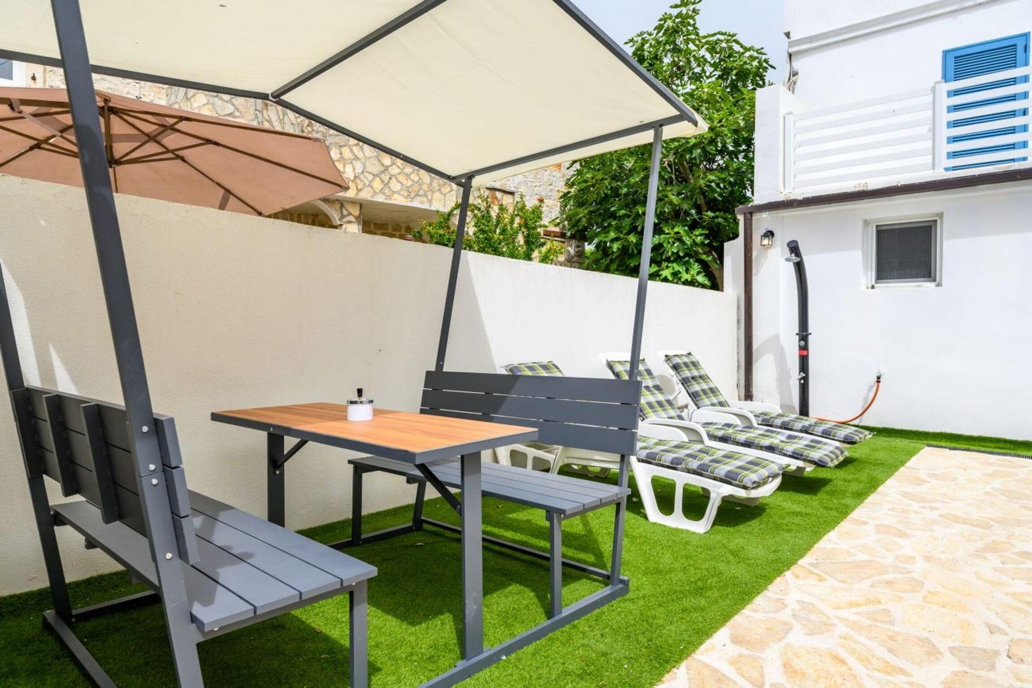 Stue(enkeltsovesofa, Fjernsyn, sofahjørne), åbent køkken(brødrister, kaffemaskine, ovn, opvaskemaskine , køleskab, fryser, elektriske kogeplader, ), soveværelse(dobbeltseng, dobbeltseng), soveværelse(dobbeltseng), soveværelse(dobbeltseng), badeværelse(bruser, håndvask, toilet), badeværelse(bruser, håndvask, toilet), Internetadgang, Havemøbler, vaskemaskine, balkon, klimaanlæg, have, parkering, swimmingpool(privat), strygejern, føntørrer