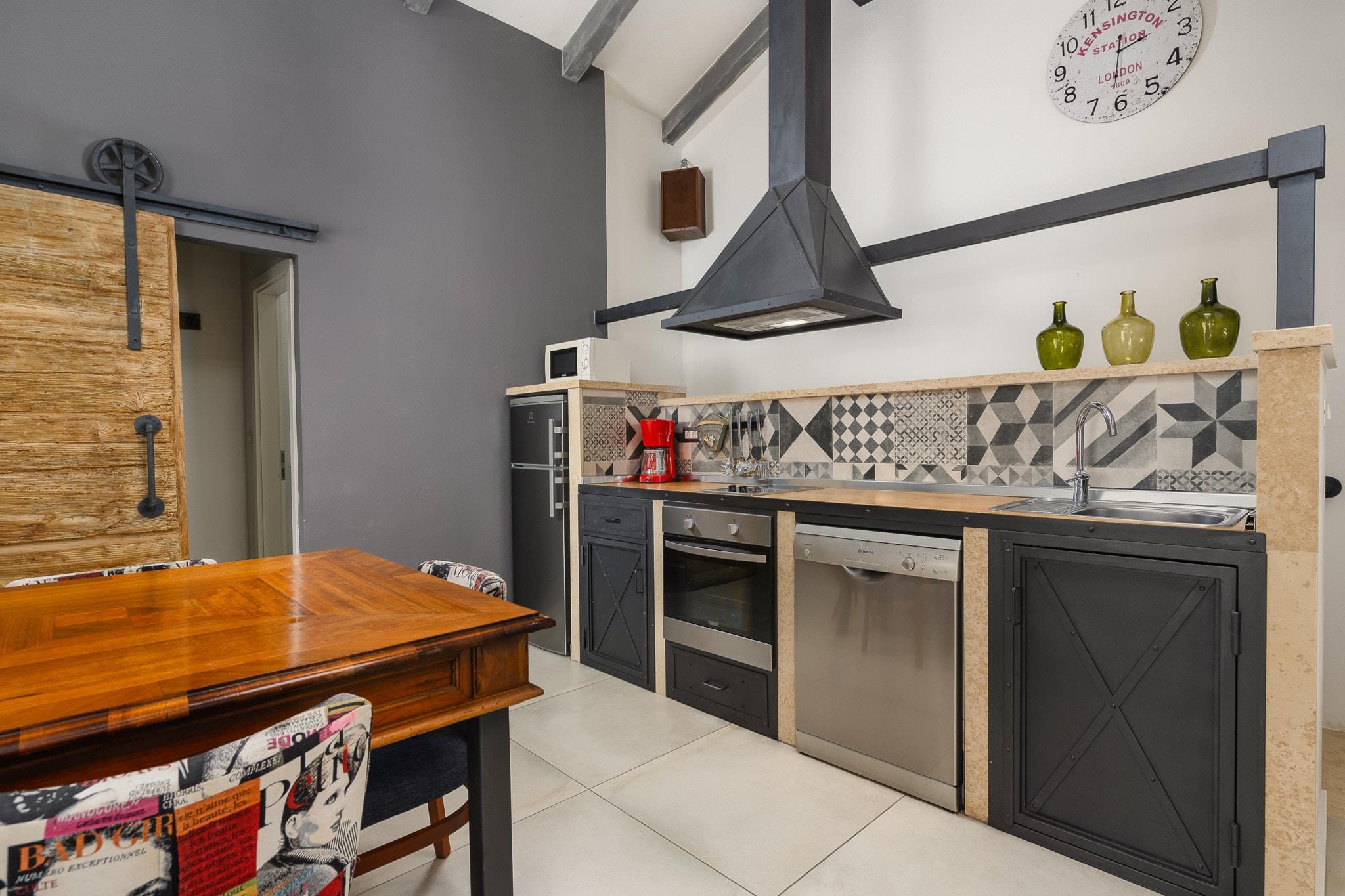 Denne charmerende villa i Porec tilbyder et rummeligt og behageligt ophold for op til 6 personer, med 2 soveværelser og 80 m² veludstyret boligareal. Villaen ligger i et fredeligt landområde og har en privat have, swimmingpool og udendørsmøbler, perfekt til at slappe af og nyde de fredfyldte omgivelser. Ejendommen er beliggende kun 3 meter fra det populære vandland "Aquacolors" og 7 km fra centrum af Porec, hvilket gør det til en god base for både afslapning og udforskning. Bekvemmelighed er nøglen med ejendommen beliggende nær et supermarked (50 meter) og restauranten "Istarska Konoba" (300 meter). Den smukke sandstrand ligger kun 5 km væk, med klippestranden i nærheden. Yderligere attraktioner omfatter de varme kilder "Istarske Toplice", 30 km væk, og lufthavne i Pula (60 km) og Trieste (110 km), hvilket gør det nemt at komme til fra forskellige steder. Indenfor er villaen udstyret med moderne bekvemmeligheder såsom aircondition, Wi-Fi, et fuldt udstyret køkken med moderne apparater og en hyggelig opholdsstue med satellit-tv og en pejs. Villaen har også 4 elektriske anti-myg enheder, en grill og en udendørs parkeringsplads. Uanset om du nyder den private pool, slapper af i haven eller udforsker lokalområdet, tilbyder denne villa en perfekt blanding af komfort og bekvemmelighed for et mindeværdigt ophold.