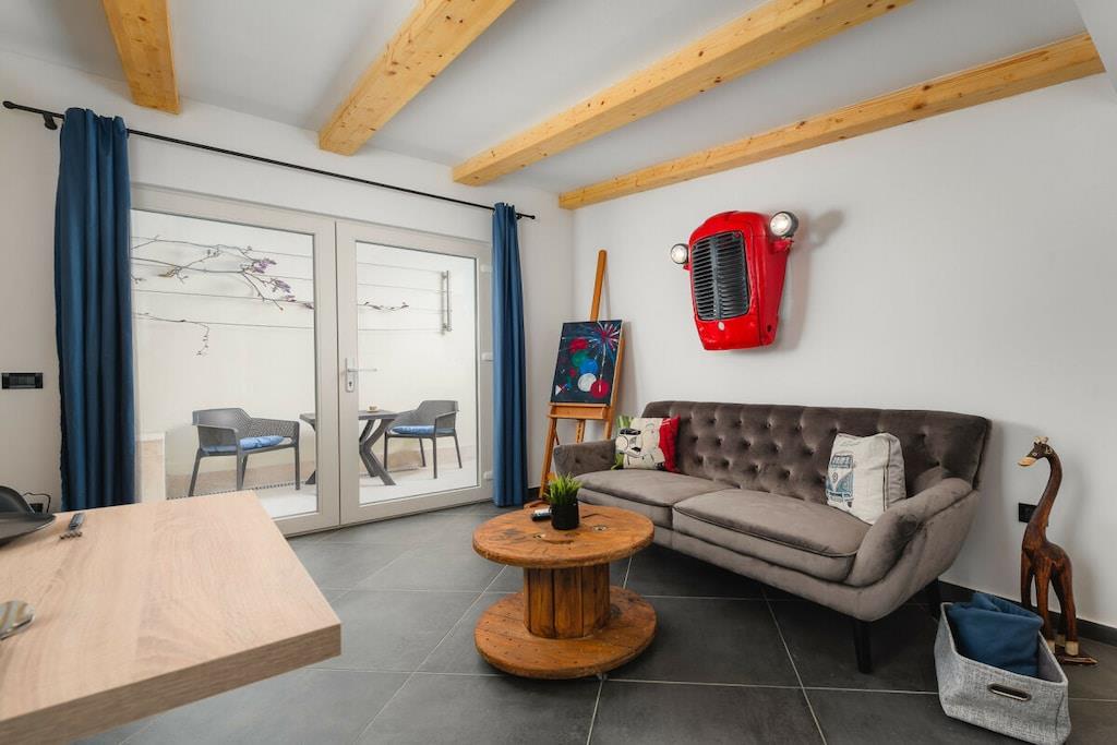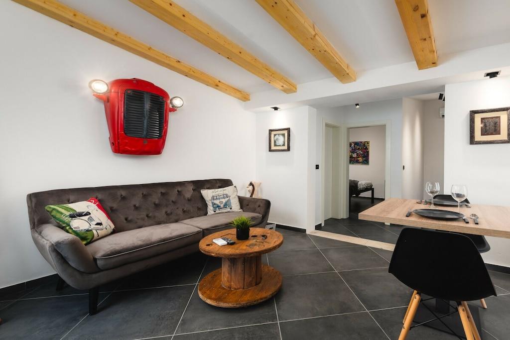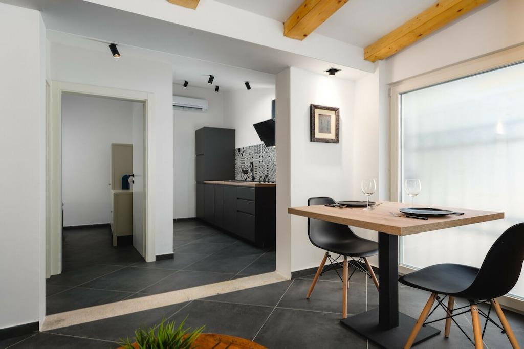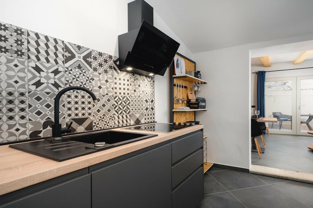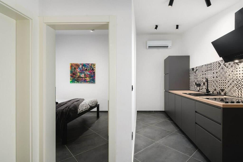 Bygningen har tre lejligheder. Urban Black-lejligheden ligger i stueetagen. Denne 35 m² store, nybyggede og smagfuldt møblerede lejlighed har et soveværelse og plads til to personer.