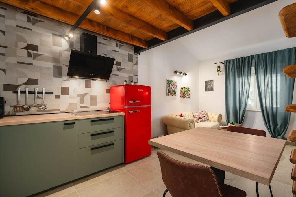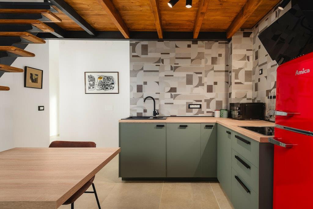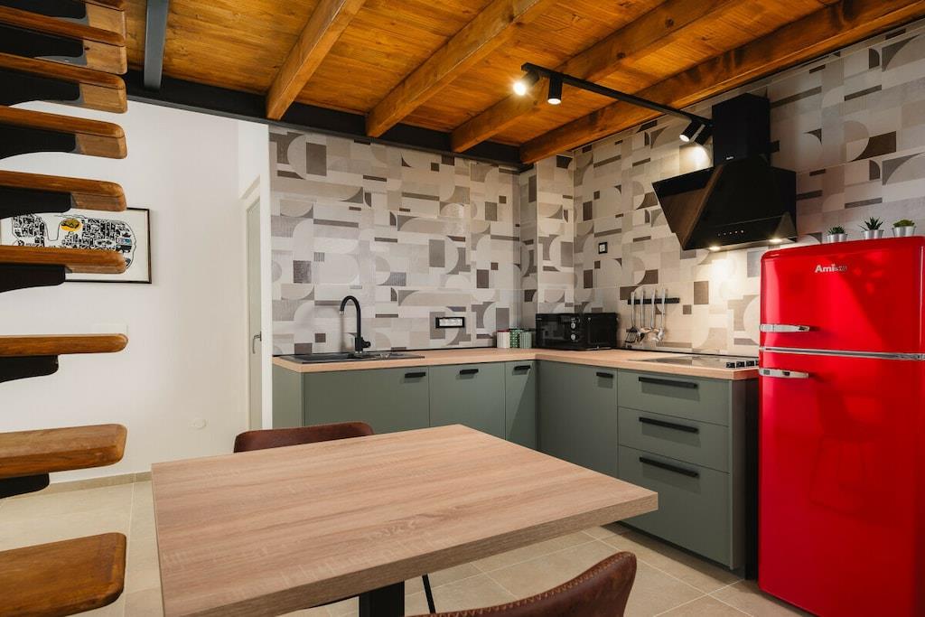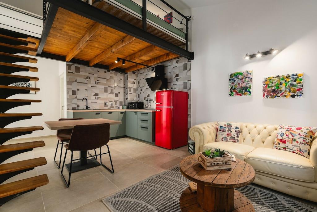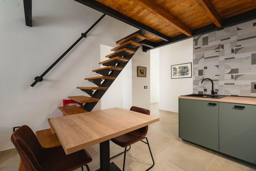 Bygningen har tre lejligheder. Urban Green Apartment ligger på første sal. 48 m², smagfuldt møbleret og nybygget, består af et soveværelse med en dobbeltseng og en hems med to enkeltsenge. Der er plads til fire personer. Den 5 m² store balkon er eksklusivt til dig.