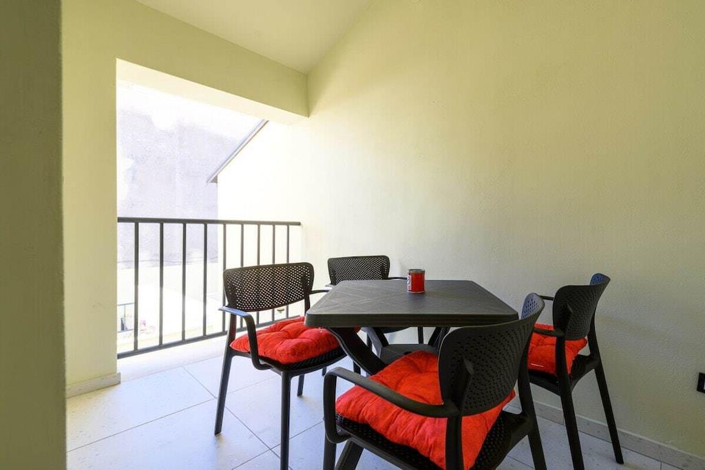 Køkken(elkedel, brødrister, kaffemaskine, mikrobølgeovn, opvaskemaskine , køleskab, Foodprocessor), soveværelse(enkeltseng, dobbeltseng), badeværelse(bruser), tørretumbler, vaskemaskine, balkon(balkon), parkering