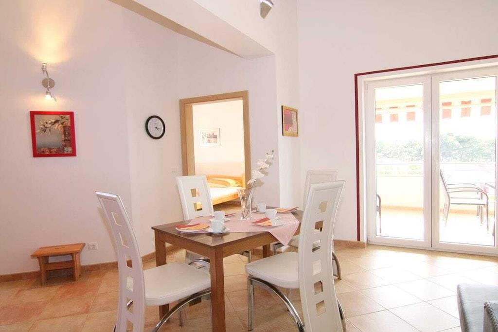 Den nybyggede Villa Symphonie i Porec tilbyder vores gæster en eksklusiv lejlighed med førsteklasses beliggenhed i Porec og moderne møbler. Udover keramiske gulve af høj kvalitet finder du også opvaskemaskine og vaskemaskine, LED-tv og Wi-Fi. Et særligt højdepunkt ved denne lejlighed: Fra alle værelser og fra den store balkon med siddeområde kan du nyde en fantastisk udsigt over Adriaterhavet, Porecs gamle bydel og den nærliggende ø Sankt Nikola. Den store, velholdte have har ekstra siddeområder og en istrisk pejsegrill, hvorfra du også kan nyde havudsigten og de fantastiske solnedgange over Porec.