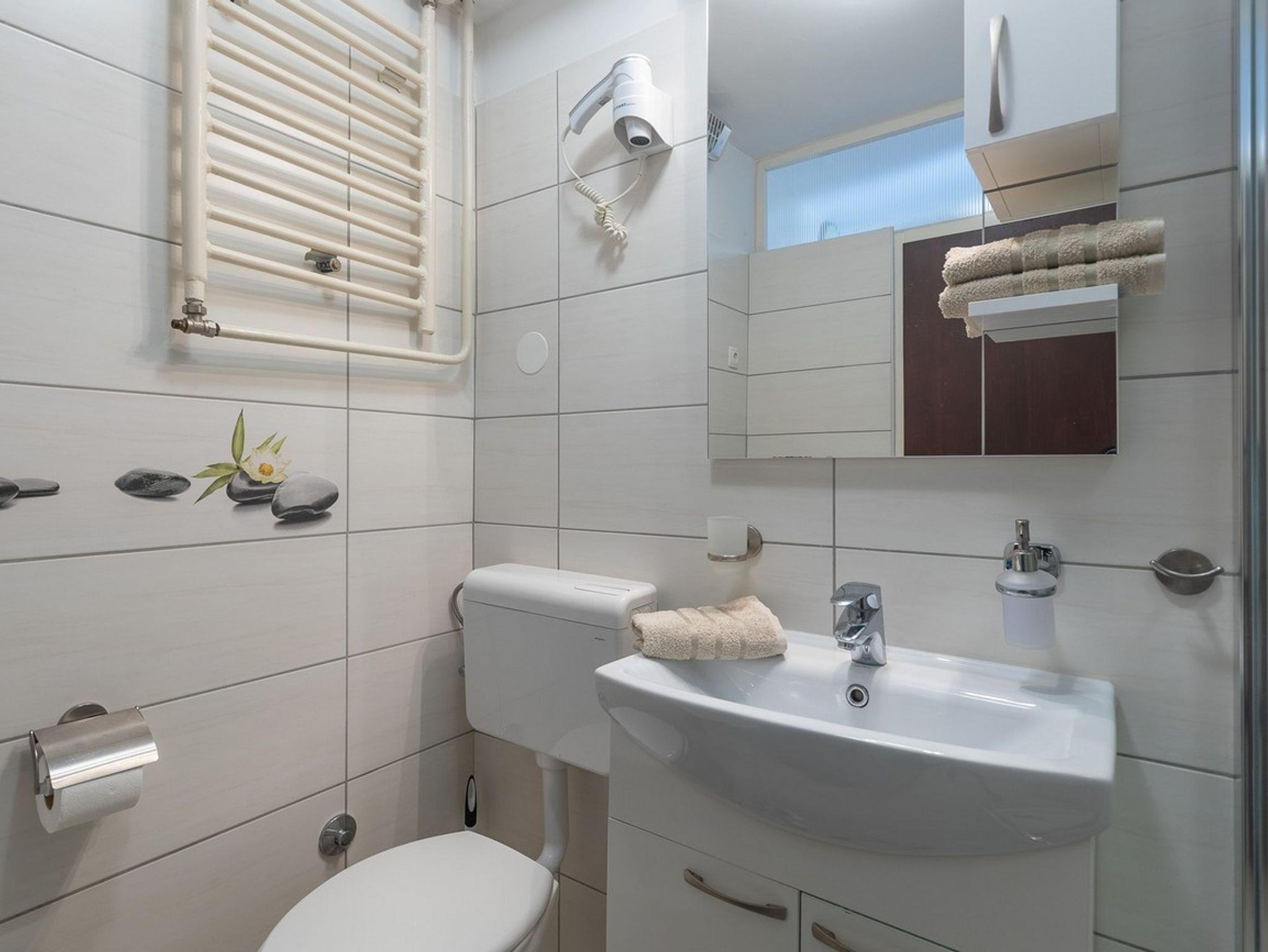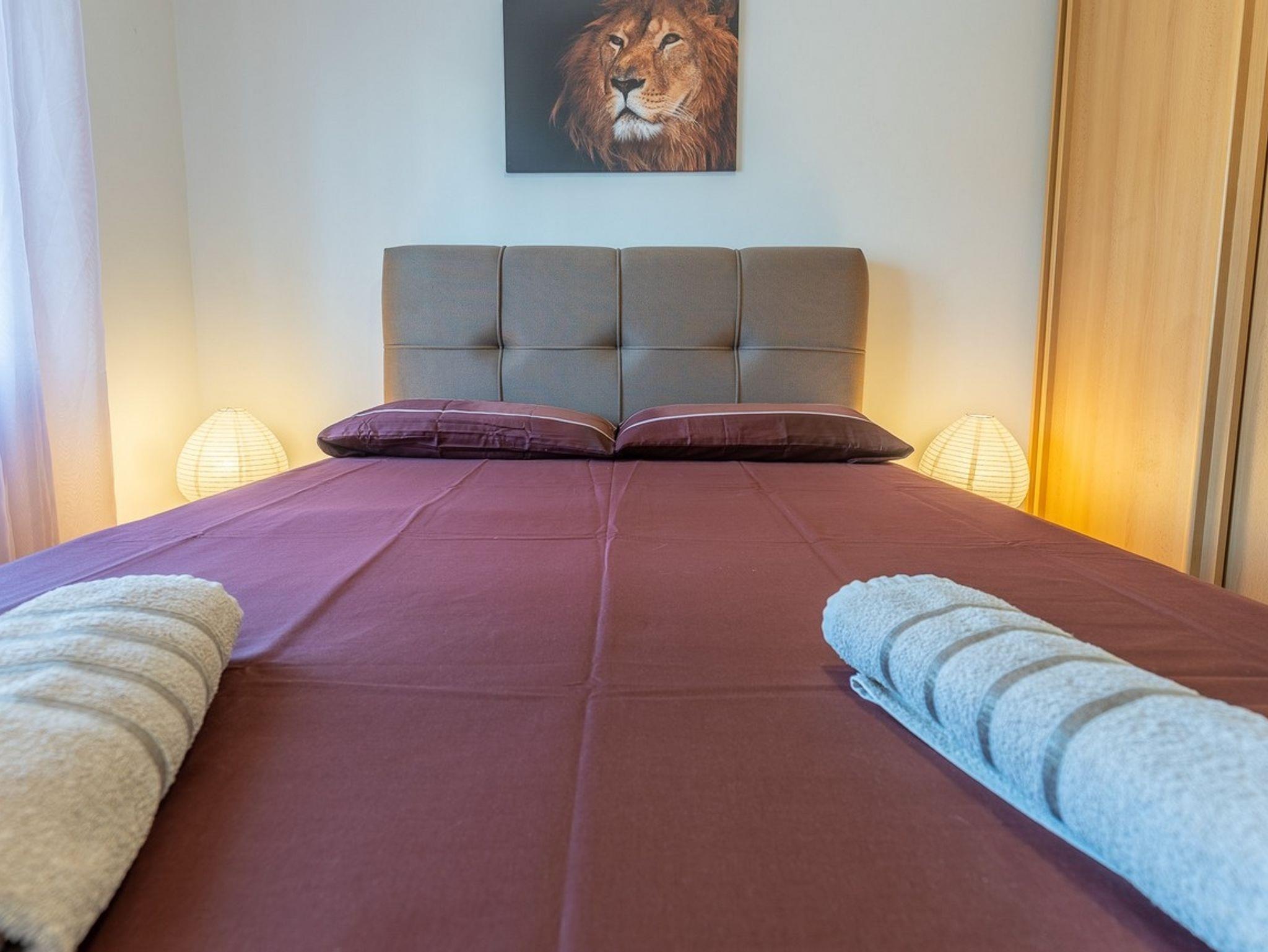 Ferienwohnung bietet Platz für 4 Gäste. Die Betten sind in Schlafzimmern, die es 2 gibt, innerhalb einer Gesamtfläche von 57m2, angeordnet. Die Gäste haben eine eigene Terrasse zur Verfügung, auf der sie in warmen Sommernächten genießen können. Für vollen Genuss und Entspannung gibt es einen privaten Grill für Gäste dieser Unterkunft. IM PREIS INBEGRIFFEN: Kurtaxe, Endreinigung, Klimatisierung, Zentralheizung, Parkplatz, Internet, Wäschewaschen, Kinderbett, Bügeleisen, Bügelbrett, Föhn, tragbarer Grill. Die Verfügbarkeit zusätzlicher Dienstleistungen in Ihrem reservierten Termin und die Preise derselben (falls nicht aufgeführt) müssen im Voraus überprüft werden. Zusätzliche Dienstleistungen die in der Zahlungsaufforderung nicht aufgeführt sind werden direkt beim Vermieter bezahlt, angenommen der Gast nutzt auch diese. Ermäßigung auf den Grundpreis: Gratistag 14=13 (bei einem Aufenthalt von 14 Tagen oder mehr erhalten Sie einen Gratistag für den Aufenthalt bis 31.12.26).