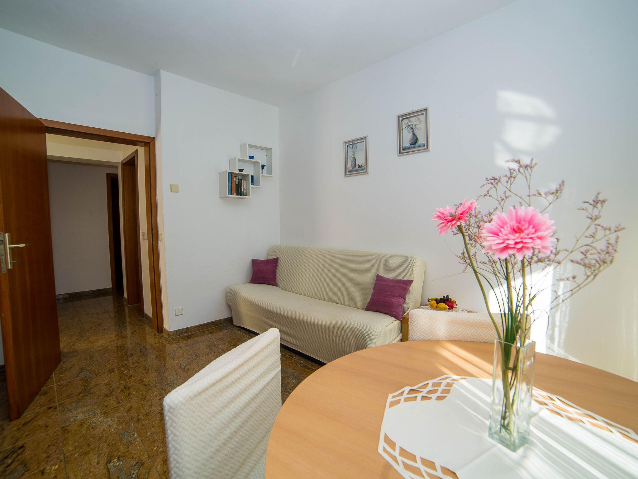 Ferienwohnung bietet Platz für 4 Gäste. Die Betten sind in Schlafzimmern, die es 2 gibt, innerhalb einer Gesamtfläche von 46m2, angeordnet. Die Gäste haben eine eigene Terrasse zur Verfügung, auf der sie in warmen Sommernächten genießen können. Es ist erlaubt, Speisen auf dem Gemeinschafts-Grill vorzubereiten. IM PREIS INBEGRIFFEN: Kurtaxe, Endreinigung, Klimatisierung, Zentralheizung, Parkplatz, Internet, Wäschewaschen, Kinderbett, Bügeleisen, Bügelbrett, Föhn. VERBINDLICHE ZUSÄTZLICHE KOSTEN: Aufzahlung für Kurzaufenthalte (prozentualer Zuschlag pro Nächtigungsanzahl: 30% - 1, 20% - 2, 10% - 3). Die Verfügbarkeit zusätzlicher Dienstleistungen in Ihrem reservierten Termin und die Preise derselben (falls nicht aufgeführt) müssen im Voraus überprüft werden. Zusätzliche Dienstleistungen die in der Zahlungsaufforderung nicht aufgeführt sind werden direkt beim Vermieter bezahlt, angenommen der Gast nutzt auch diese.
